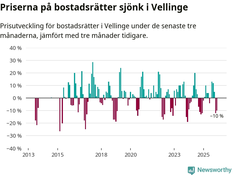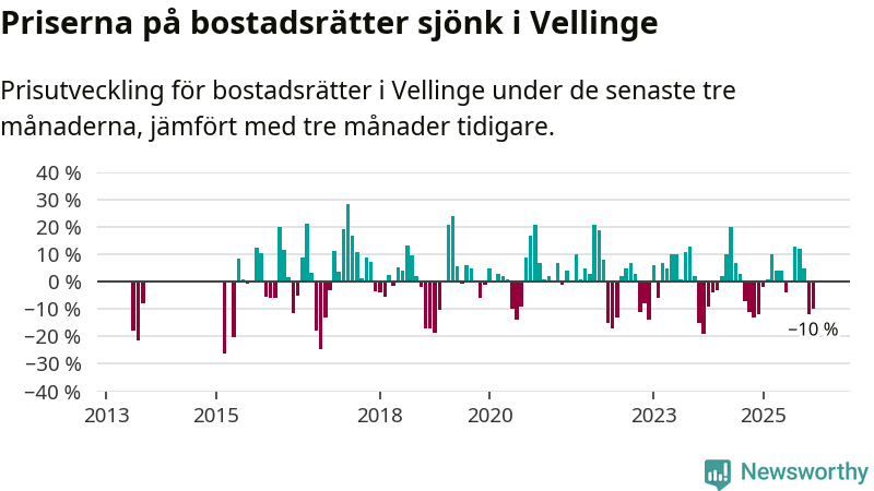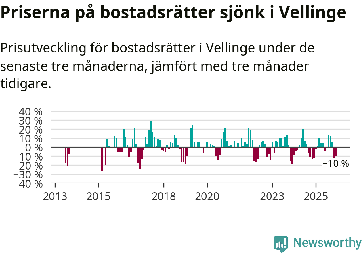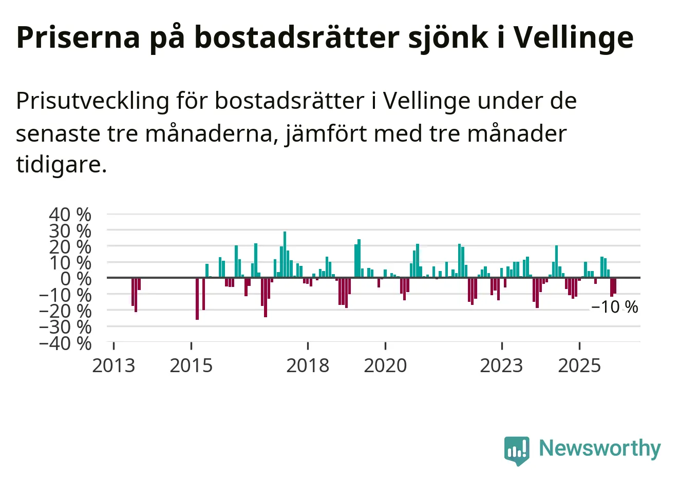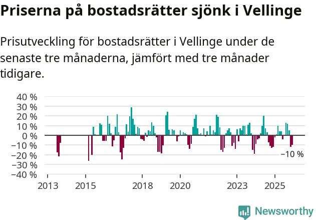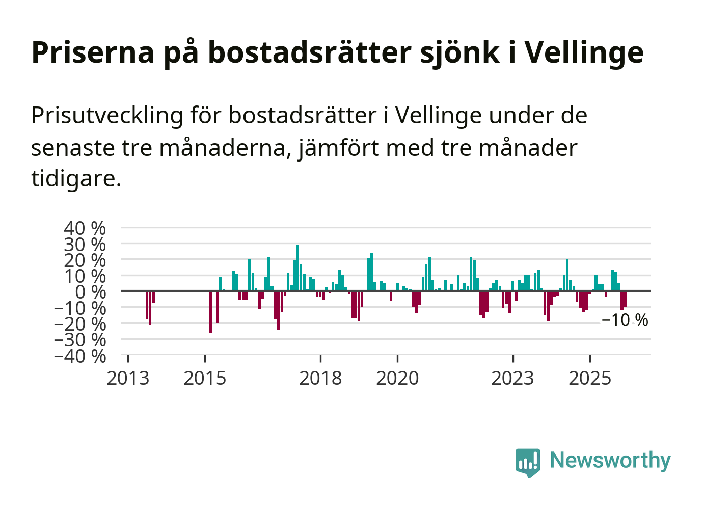 Under oktober till december såldes det 14 färre bostadsrätter i Vellinge än snittet för det senaste året.