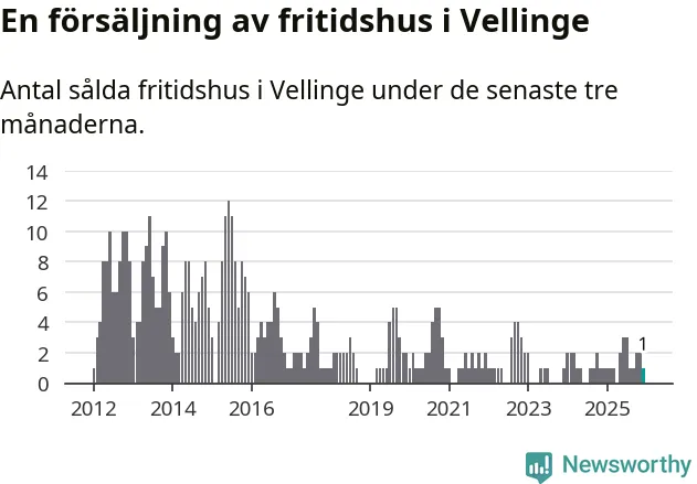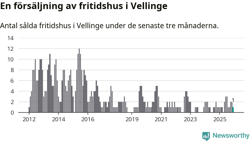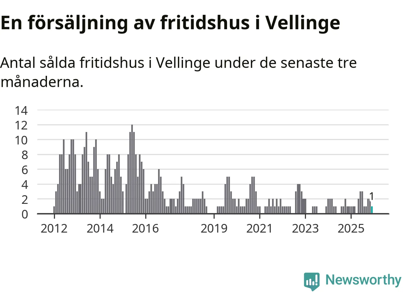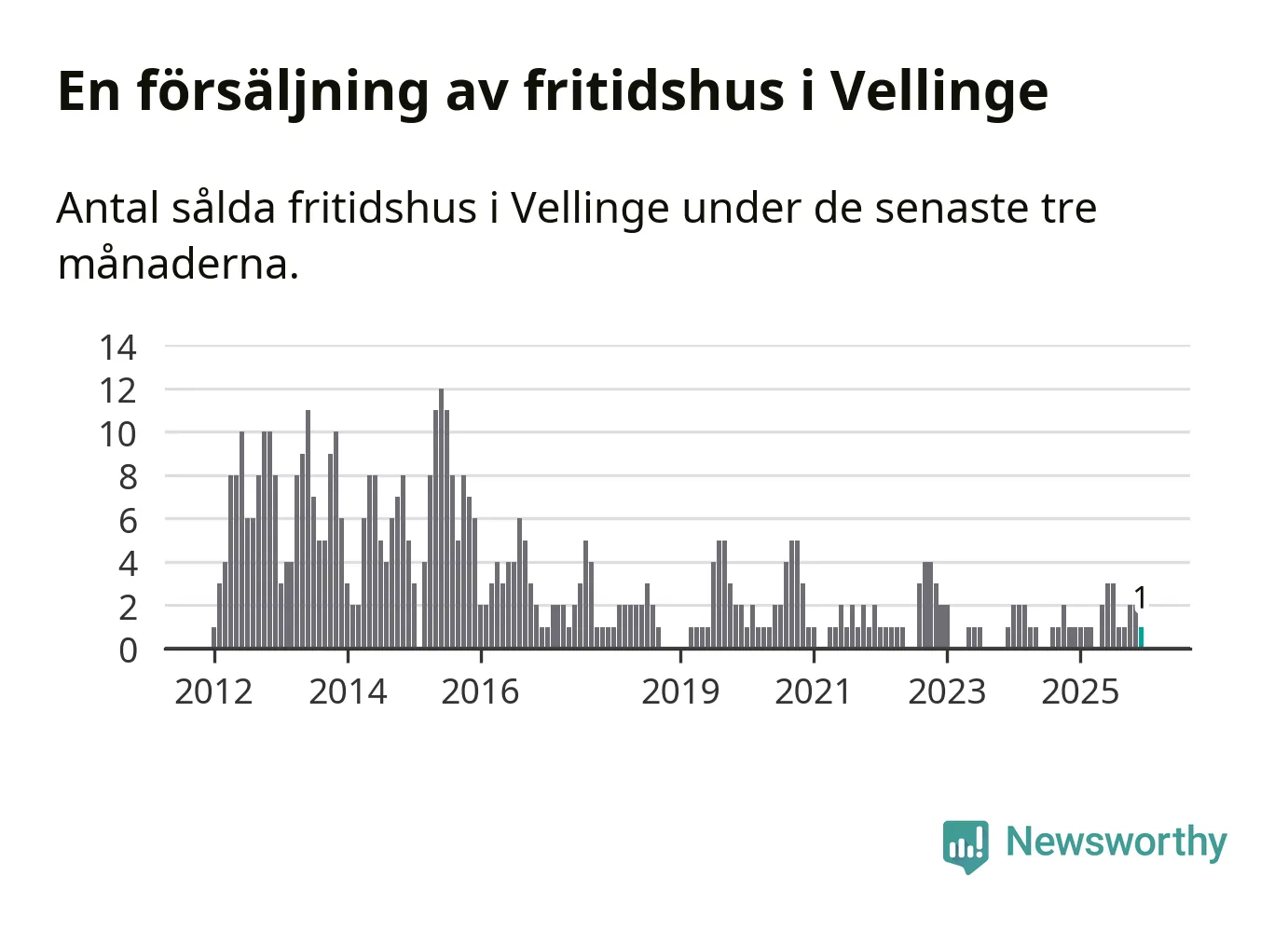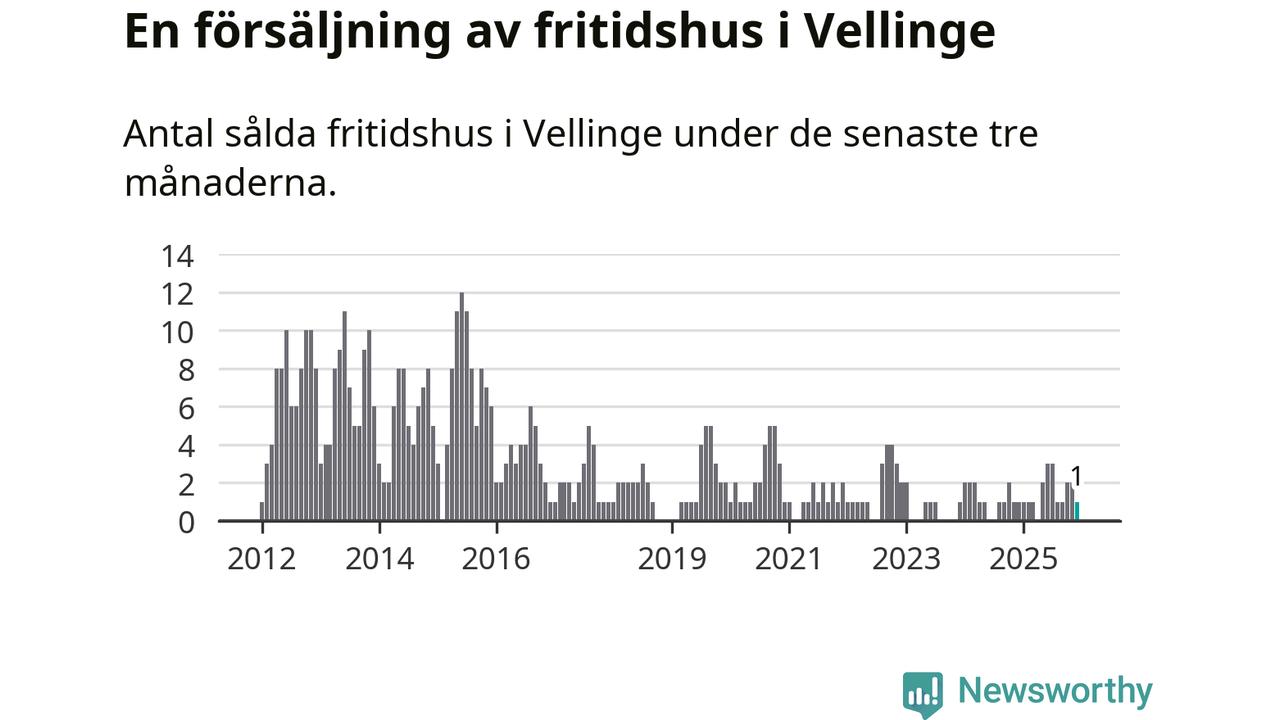 Mellan oktober och december gjordes sammanlagt en affär med fritidshus i Vellinge kommun. Det är lika många affärer som vid motsvarande tid i fjol.
