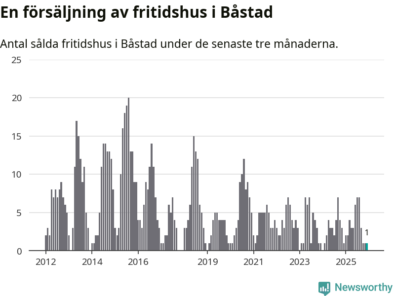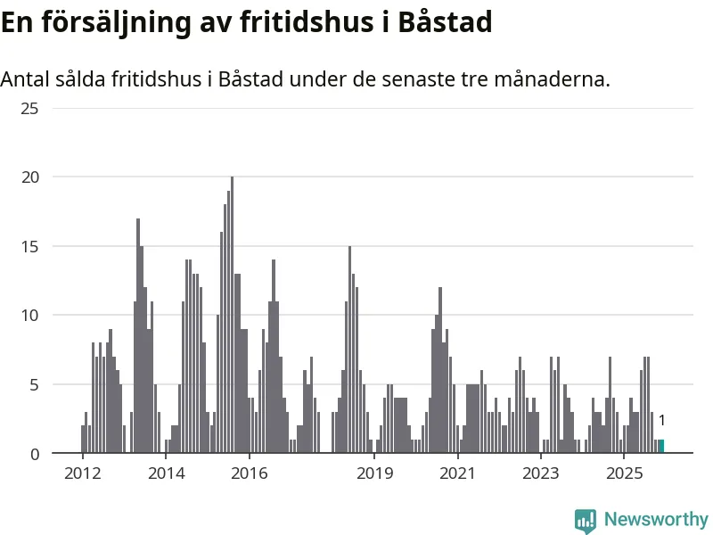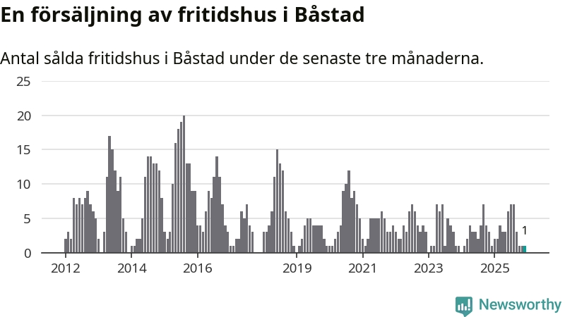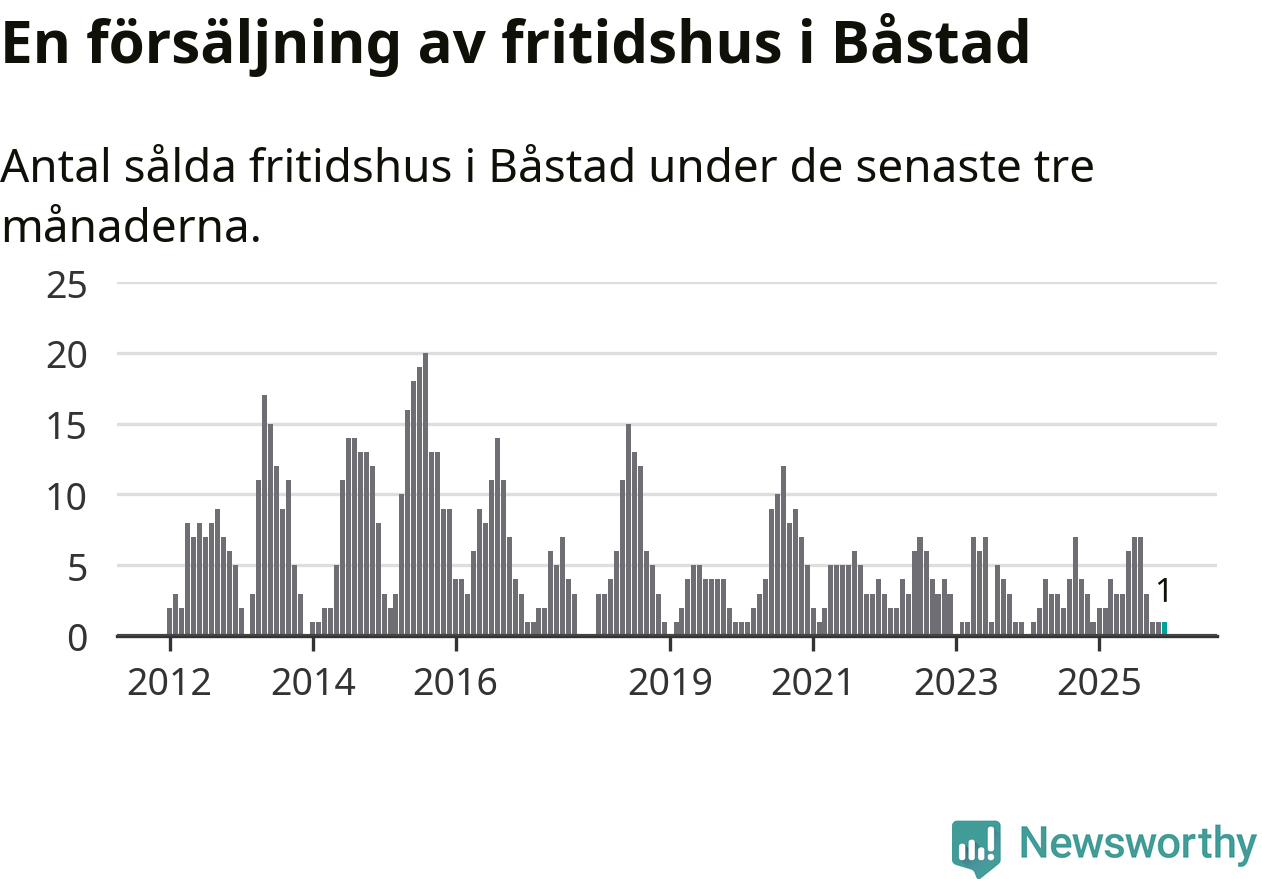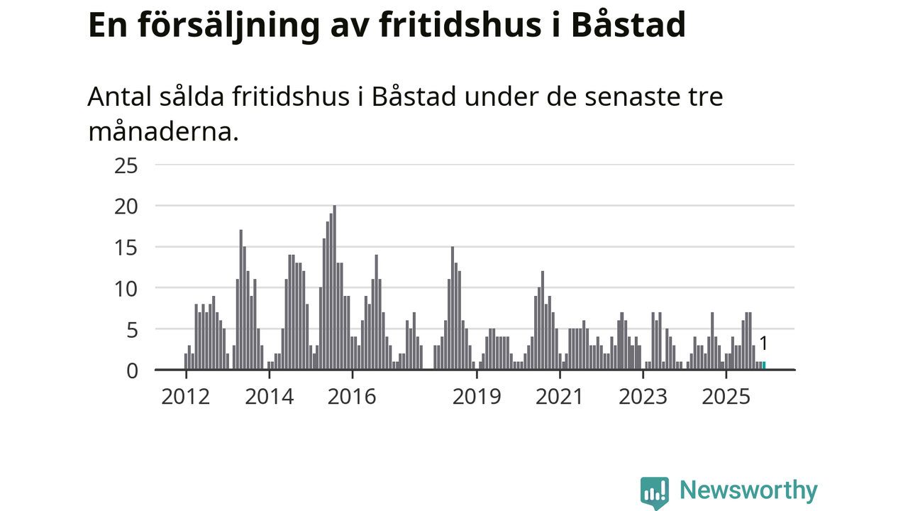 Mellan oktober och december gjordes sammanlagt en affär med fritidshus i Båstads kommun. Det är lika många affärer som vid motsvarande tid i fjol.