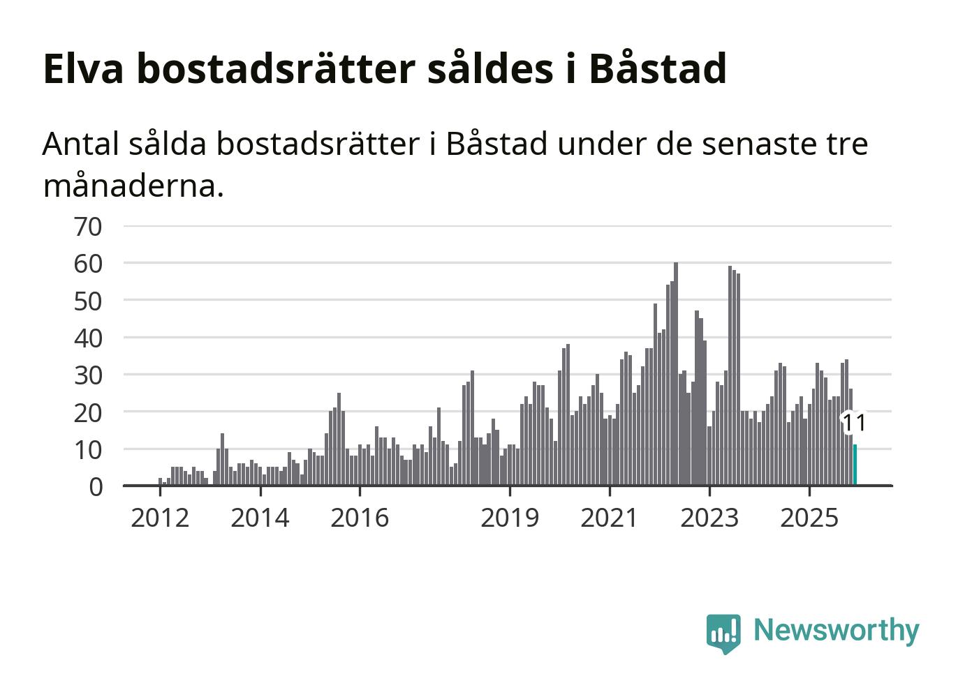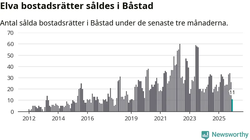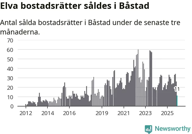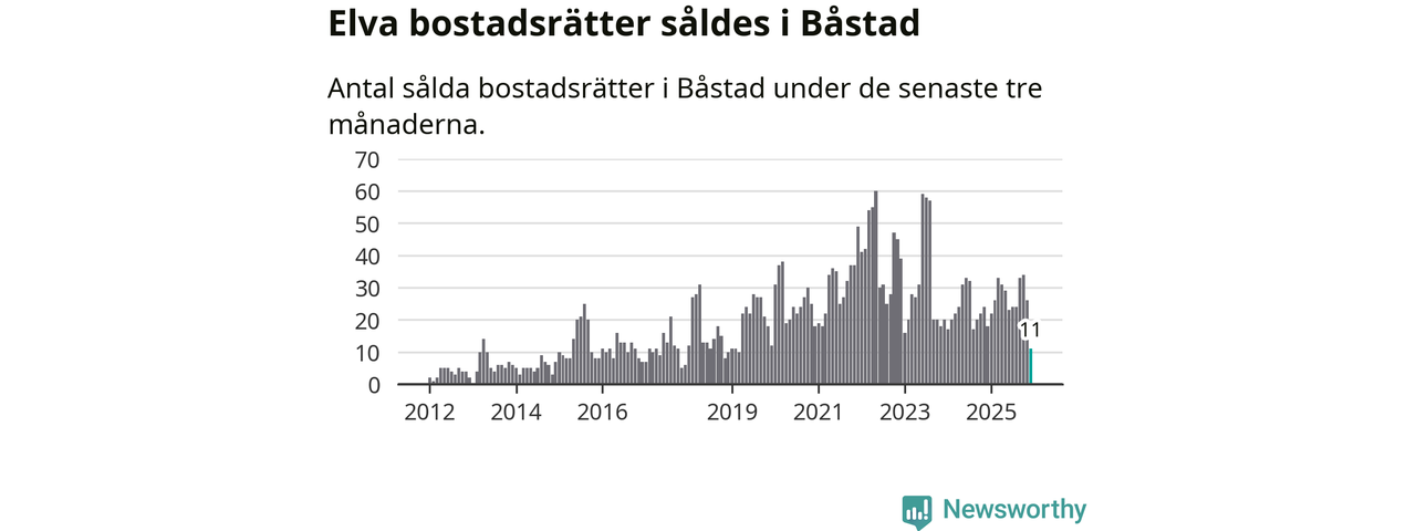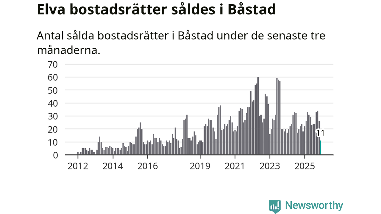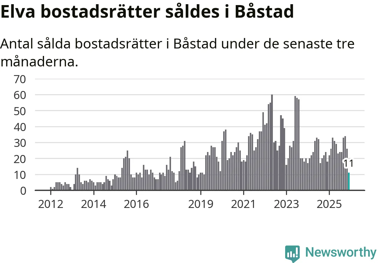 Mellan oktober och december gjordes sammanlagt elva affärer med bostadsrätter i Båstads kommun. Det kan jämföras med 18 vid motsvarande tid i fjol.