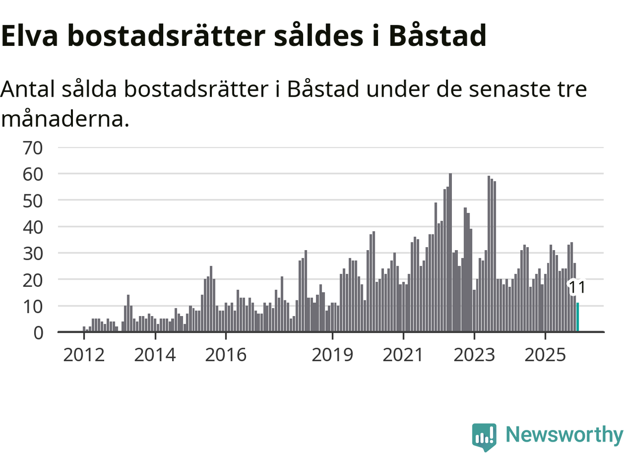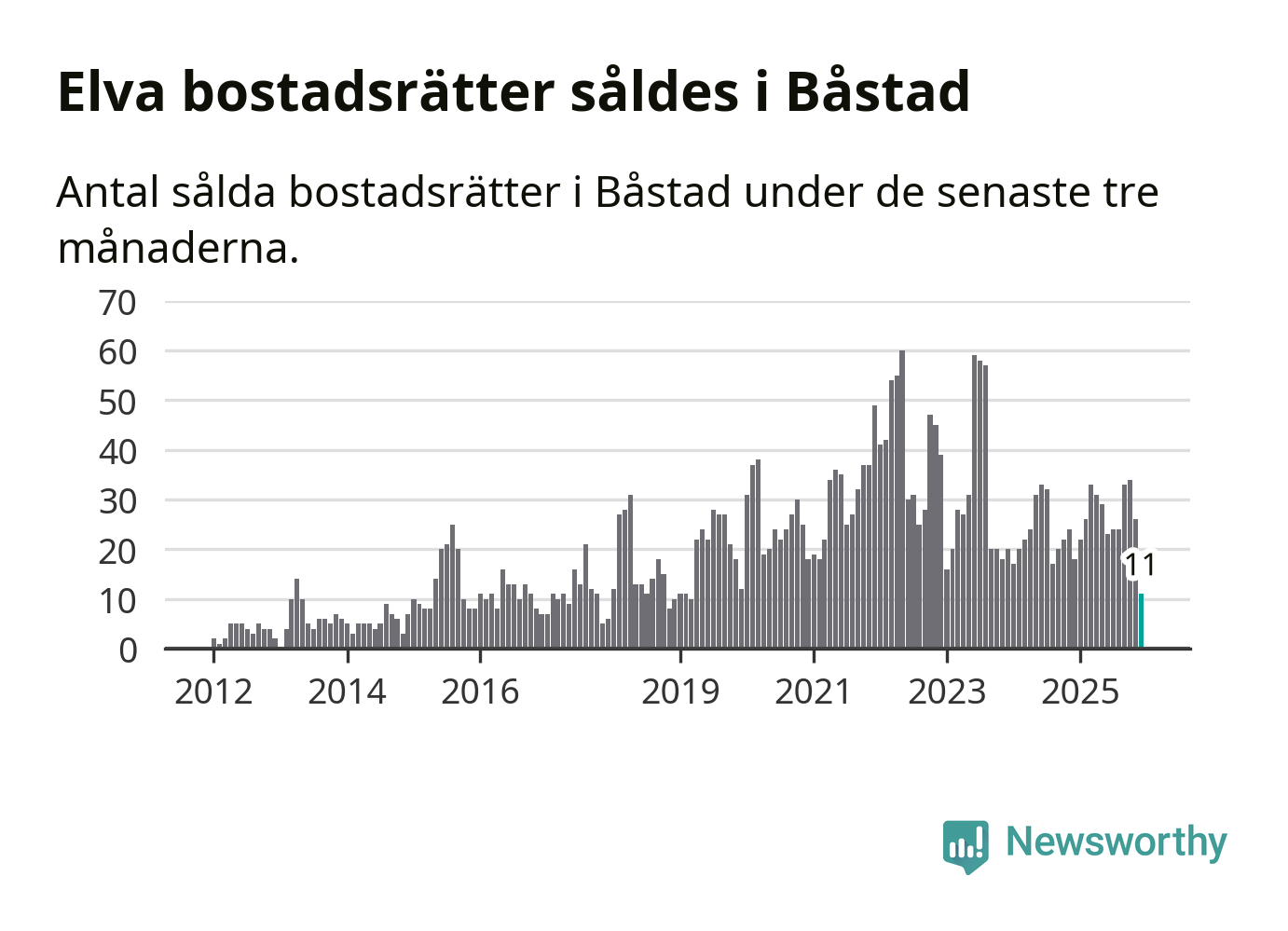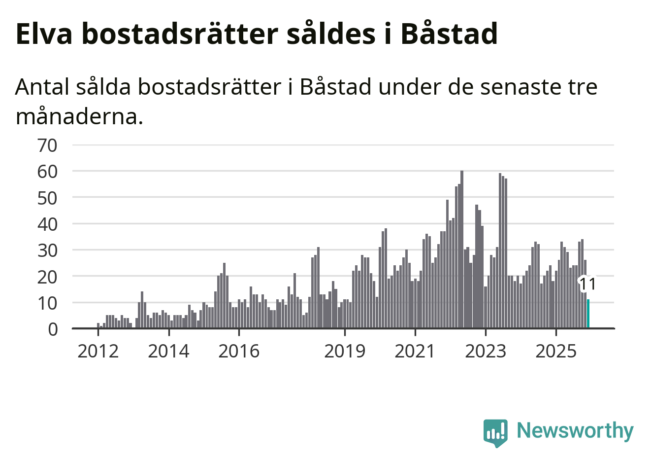 Mellan oktober och december gjordes sammanlagt elva affärer med bostadsrätter i Båstads kommun. Det kan jämföras med 18 vid motsvarande tid i fjol.