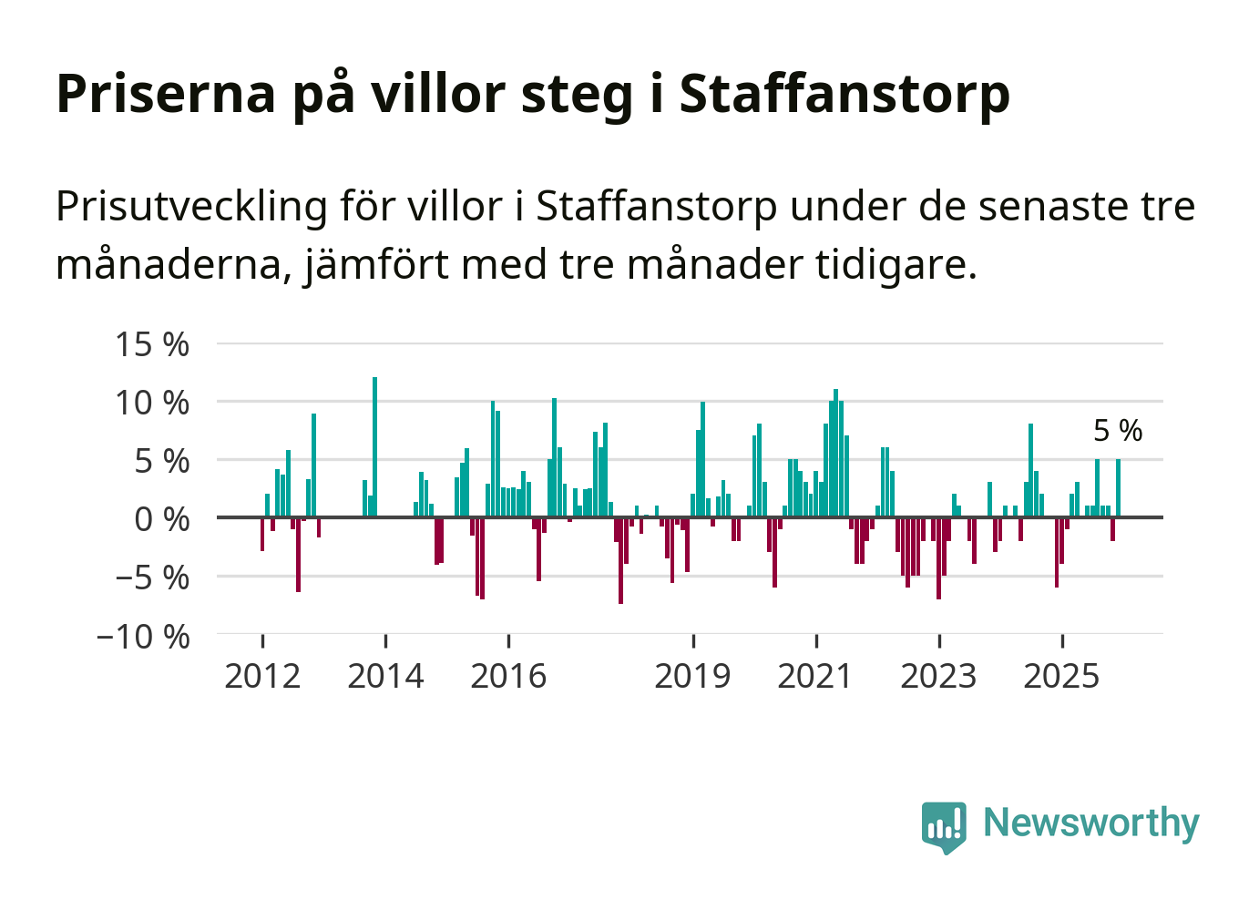 | Staffanstorp | +5 % ▲ | 51 | 4,9 miljoner |