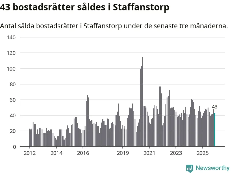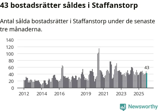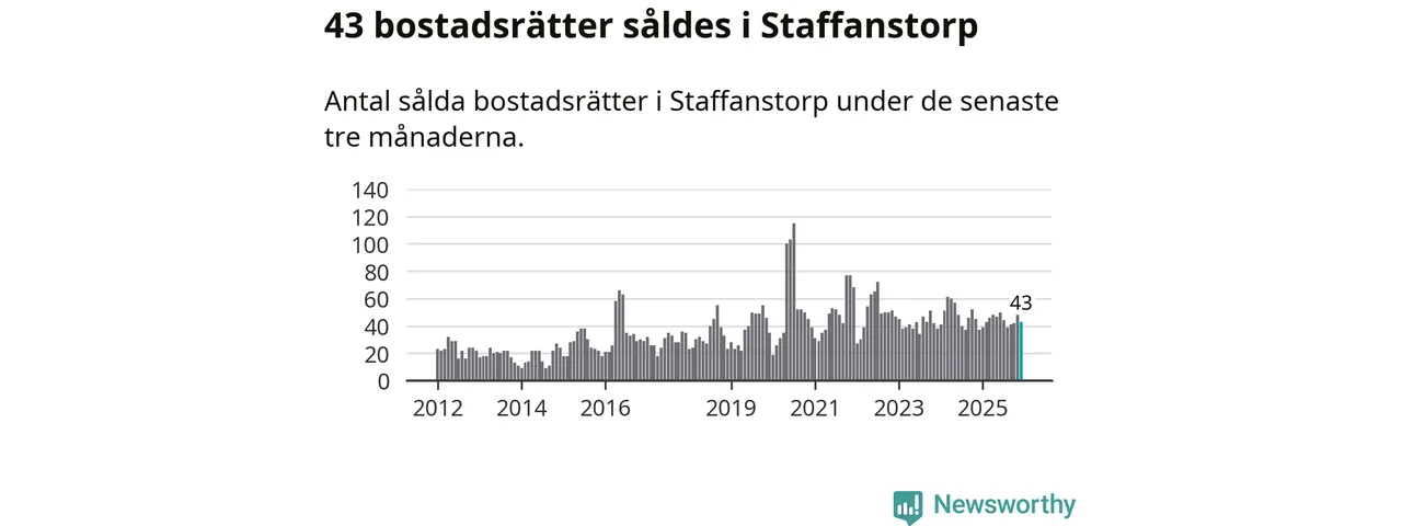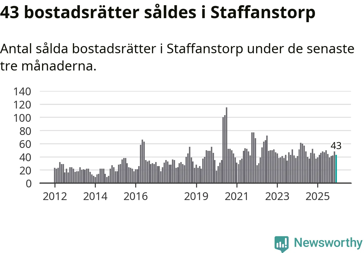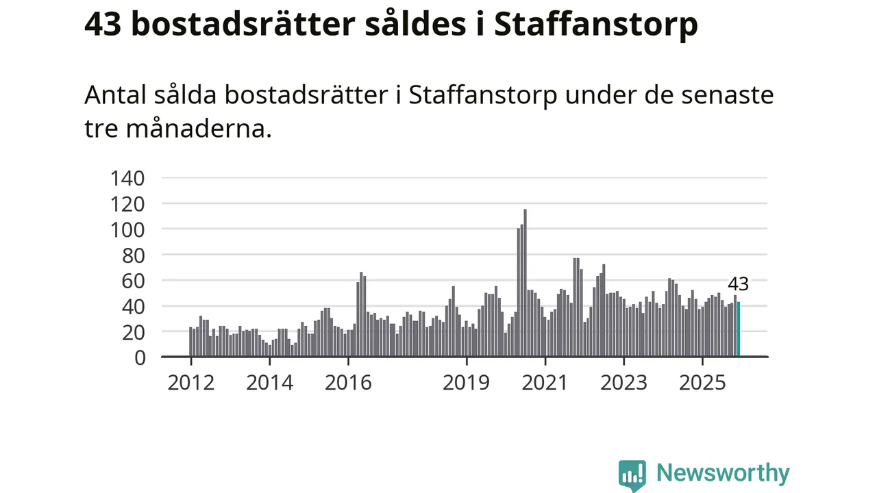 Sammanlagt såldes 43 bostadsrätter i Staffanstorps kommun mellan oktober och december till ett genomsnittligt pris på 2,4 miljoner kronor. I fjol gjordes 37 affärer vid den här tiden på året.