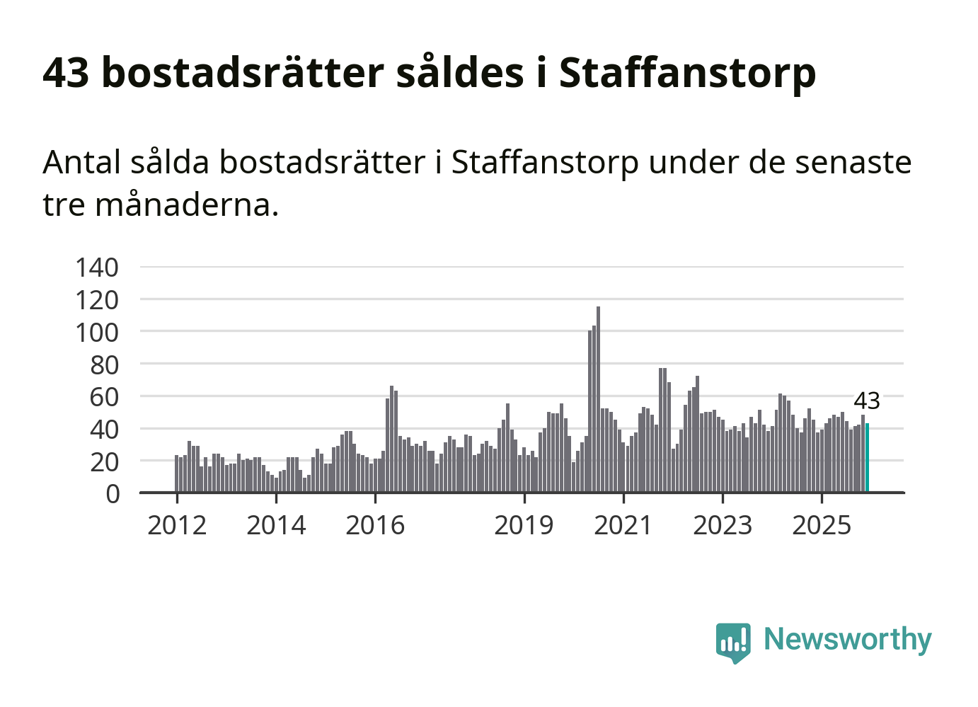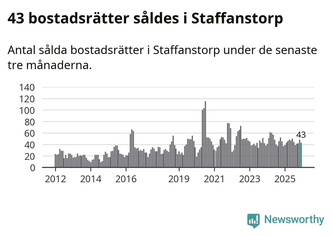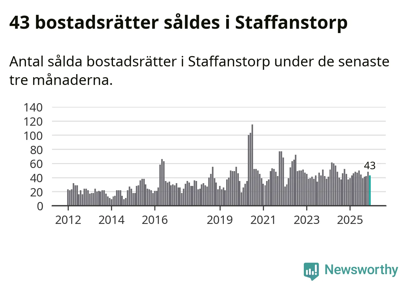 Sammanlagt såldes 43 bostadsrätter i Staffanstorps kommun mellan oktober och december till ett genomsnittligt pris på 2,4 miljoner kronor. I fjol gjordes 37 affärer vid den här tiden på året.