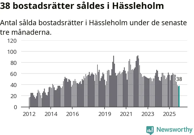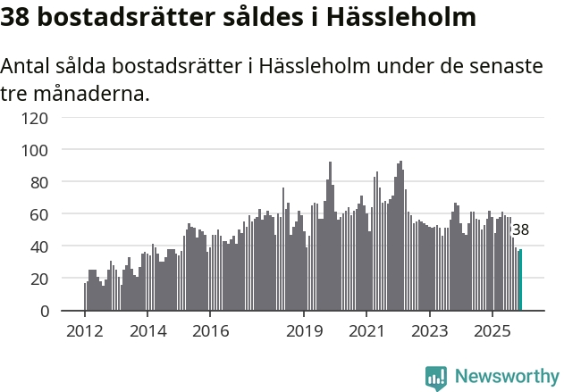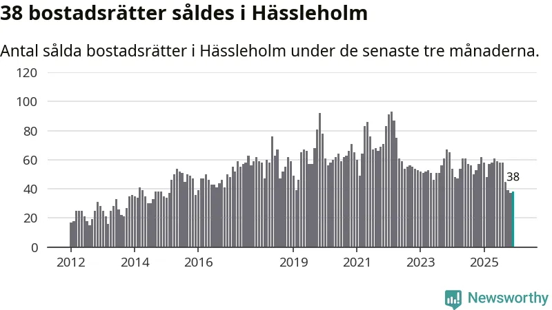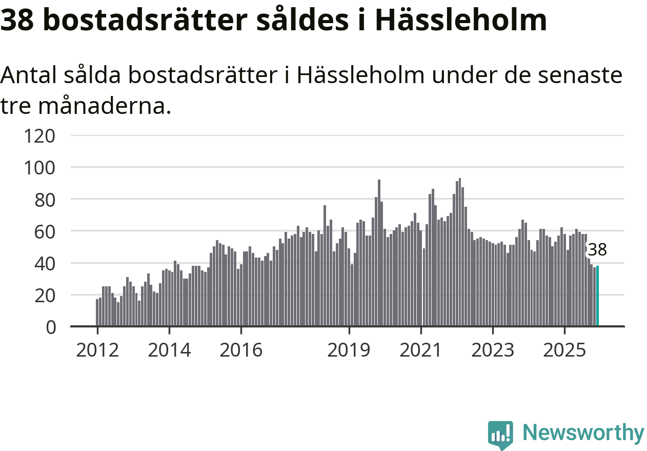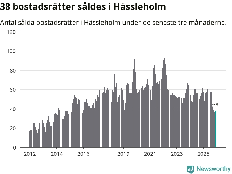 Mellan oktober och december såldes 38 bostadsrätter i Hässleholms kommun. Det är relativt få sett till aktiviteten på bostadsmarknaden i kommunen under de senaste tolv månaderna, samt det historiska snittet för den här tiden på året.
