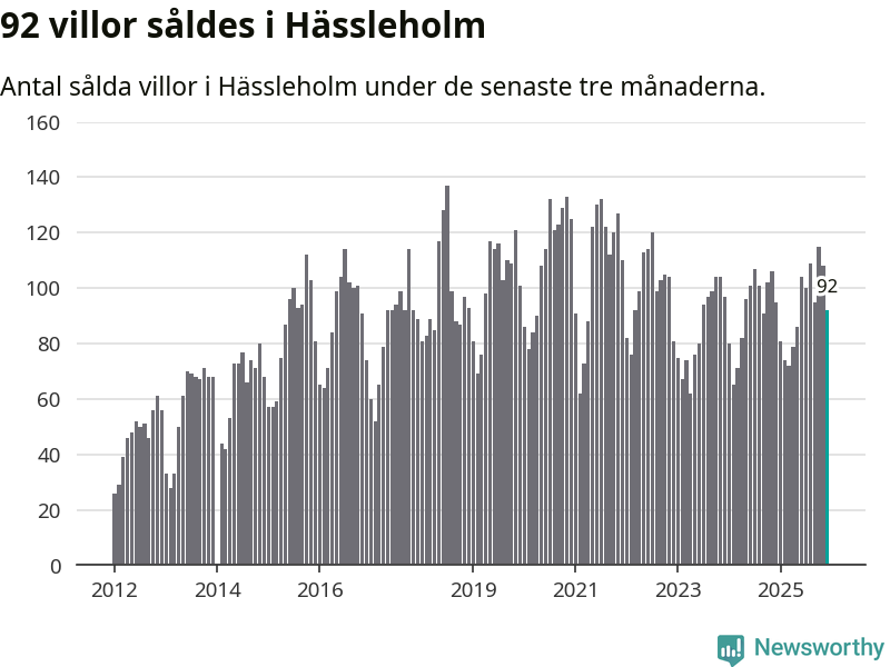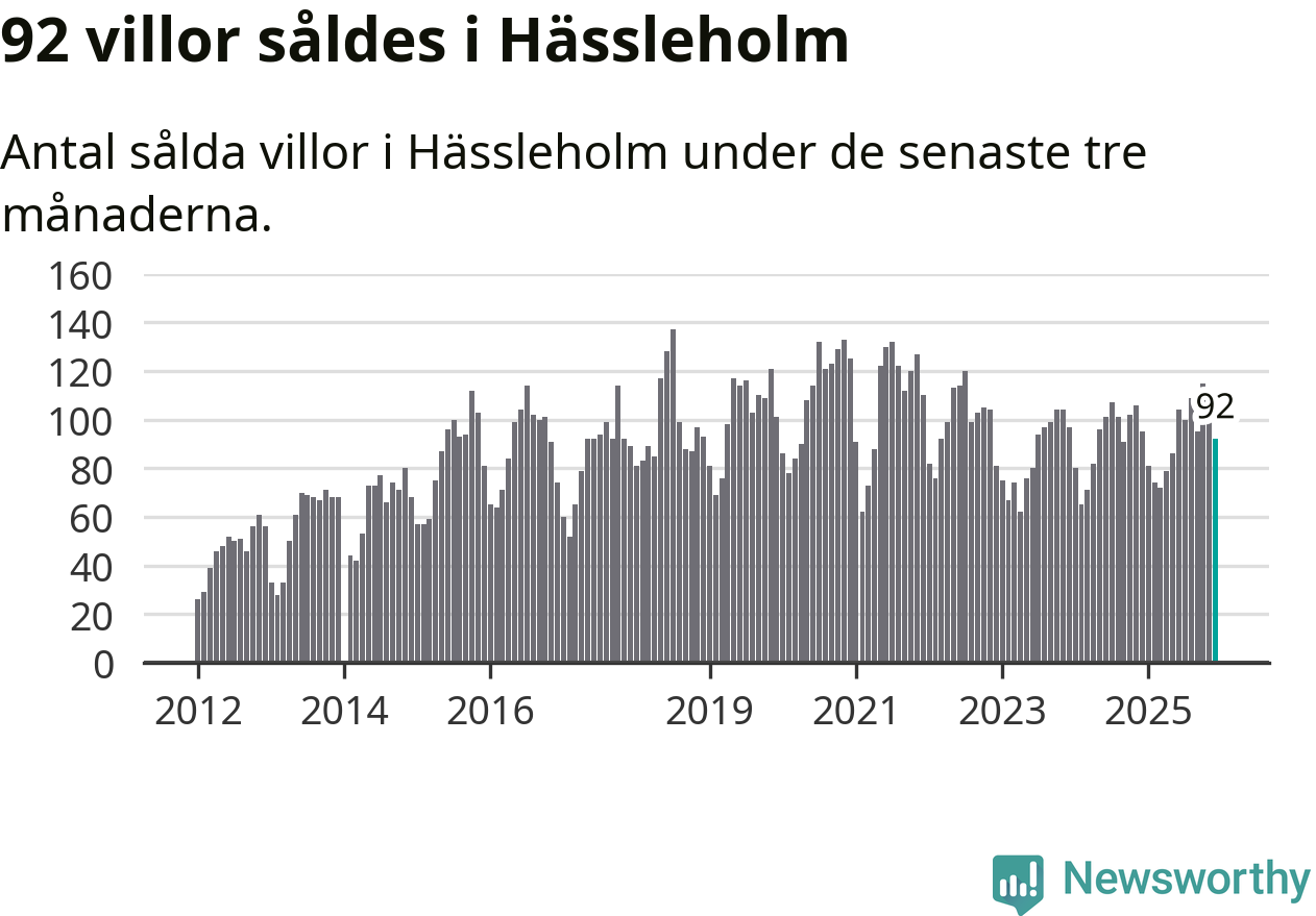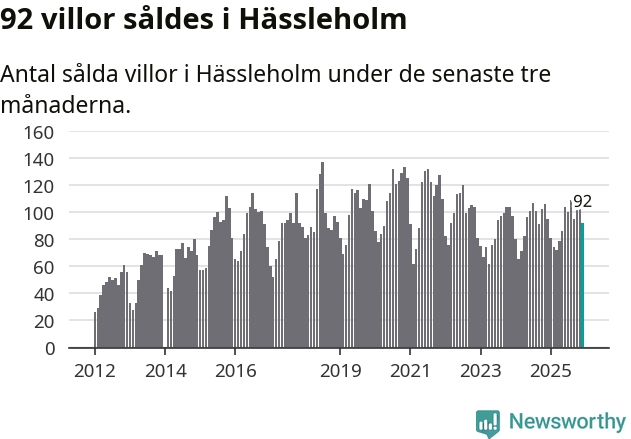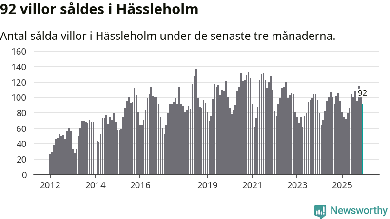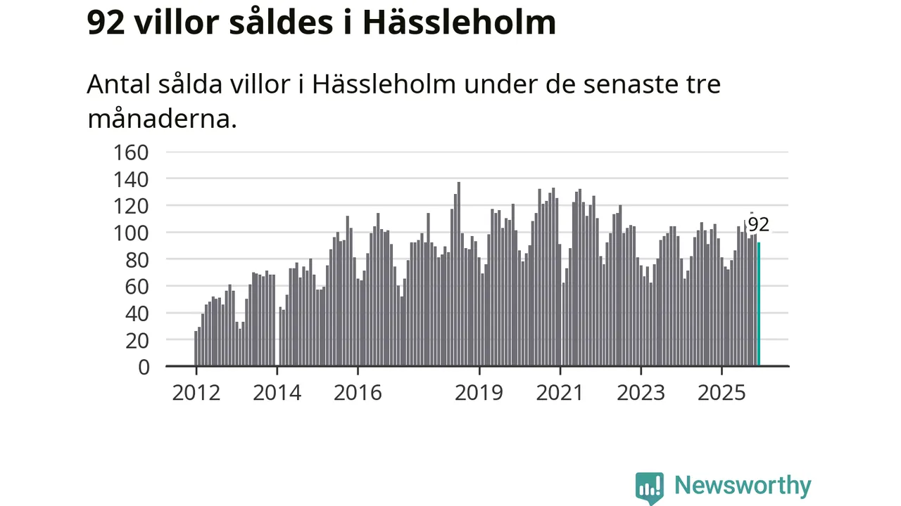 Sammanlagt såldes 92 villor i Hässleholms kommun mellan oktober och december till ett genomsnittligt pris på 1,8 miljoner kronor. I fjol gjordes 95 affärer vid den här tiden på året.