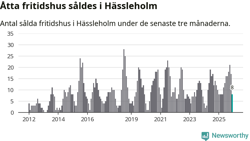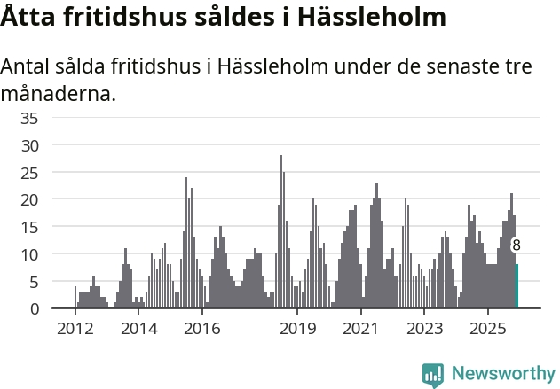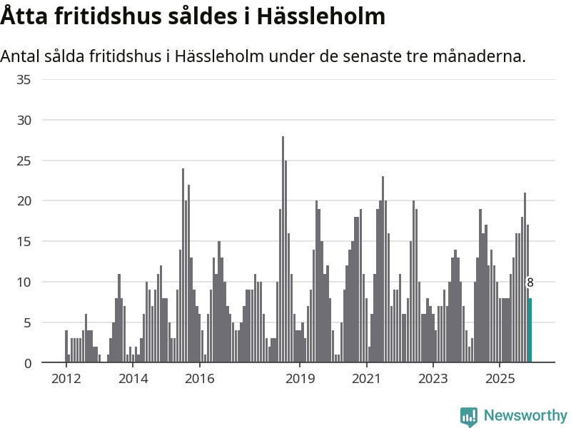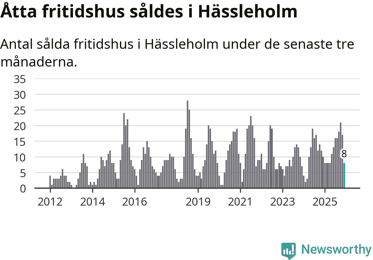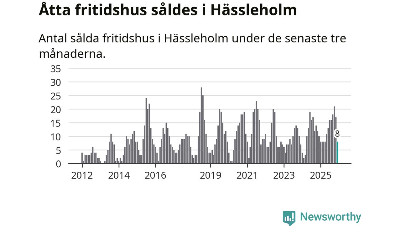 Sammanlagt såldes åtta fritidshus i Hässleholms kommun mellan oktober 2025 och december 2025 till ett genomsnittligt pris på 1,4 miljoner kronor. I fjol gjordes tio affärer vid den här tiden på året.