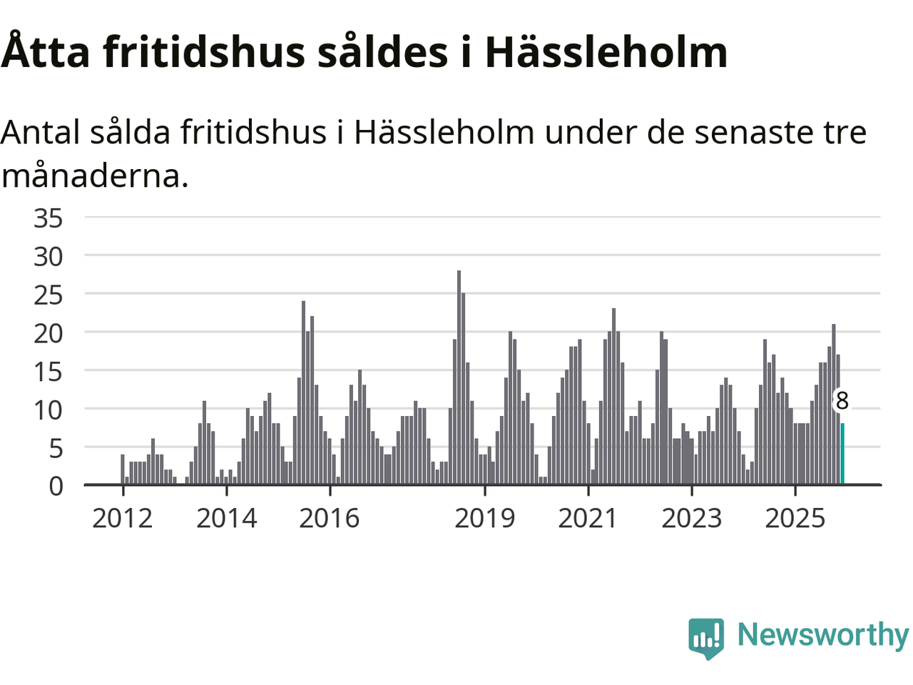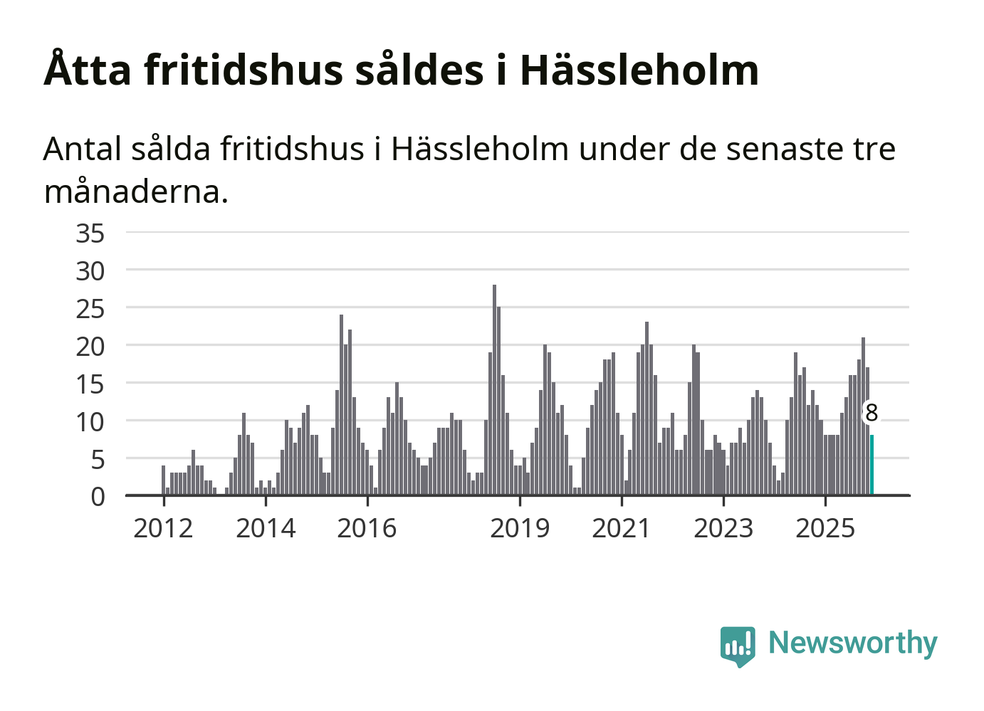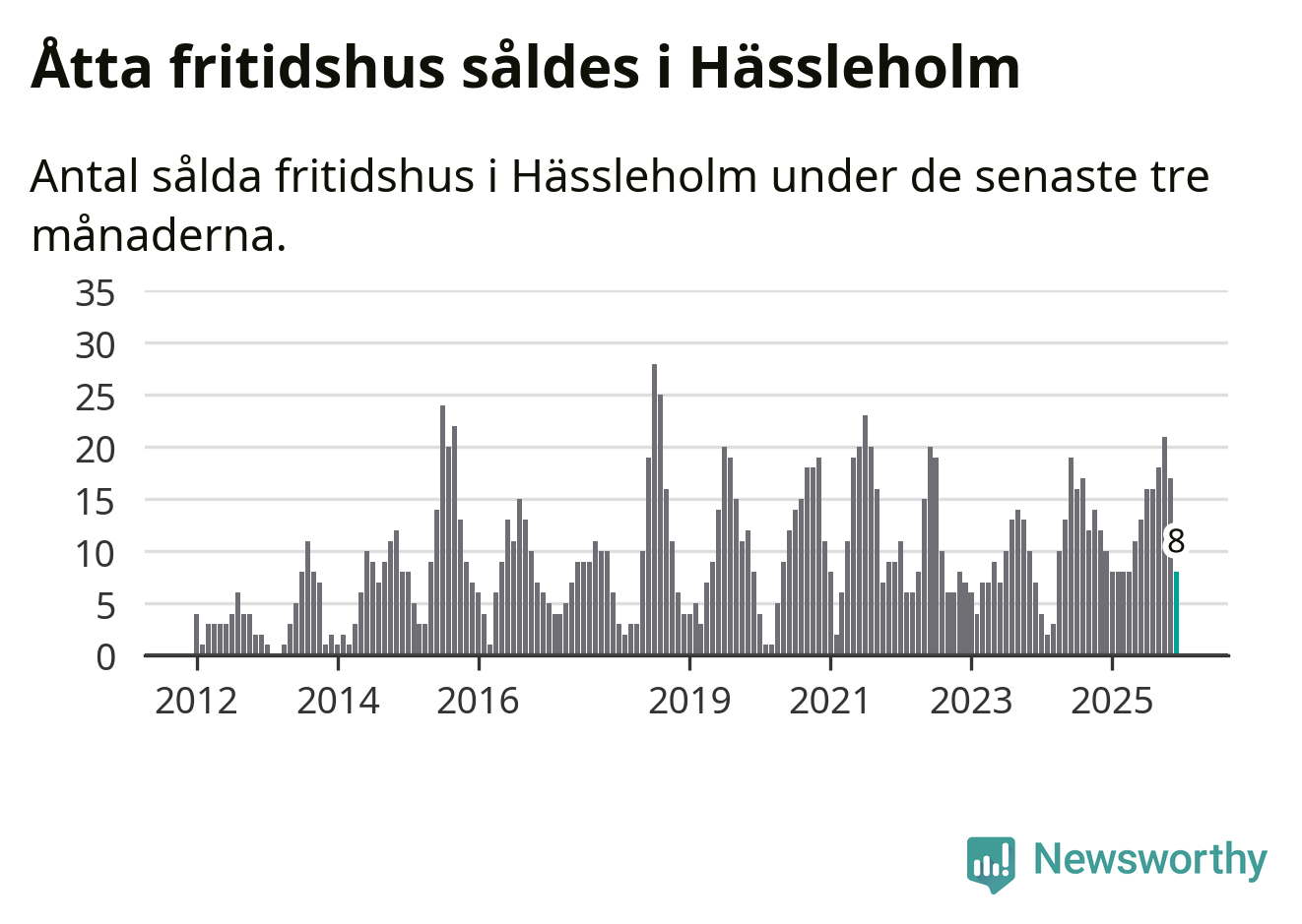 Sammanlagt såldes åtta fritidshus i Hässleholms kommun mellan oktober 2025 och december 2025 till ett genomsnittligt pris på 1,4 miljoner kronor. I fjol gjordes tio affärer vid den här tiden på året.