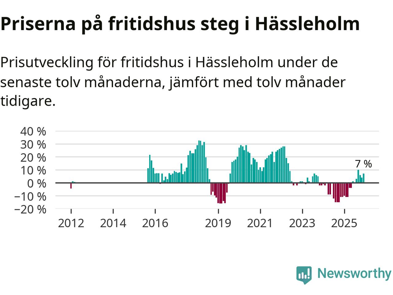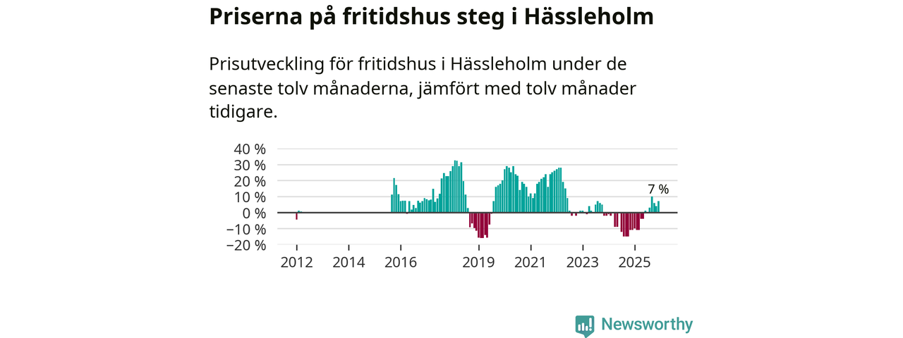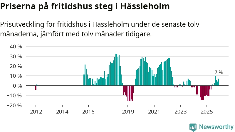 Priserna på fritidshus har gått upp i Hässleholms kommun. Medelpriset på försäljningarna under de senaste tolv månaderna visar på en uppgång med 7 procent.