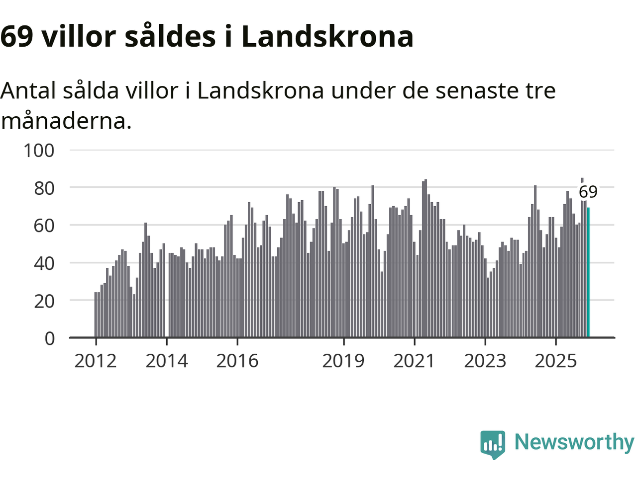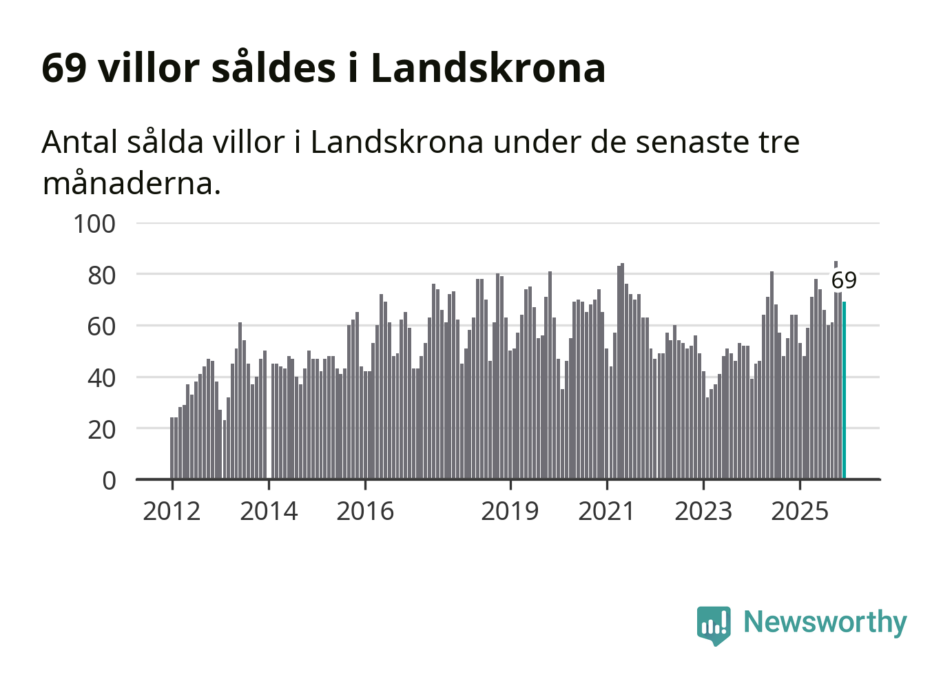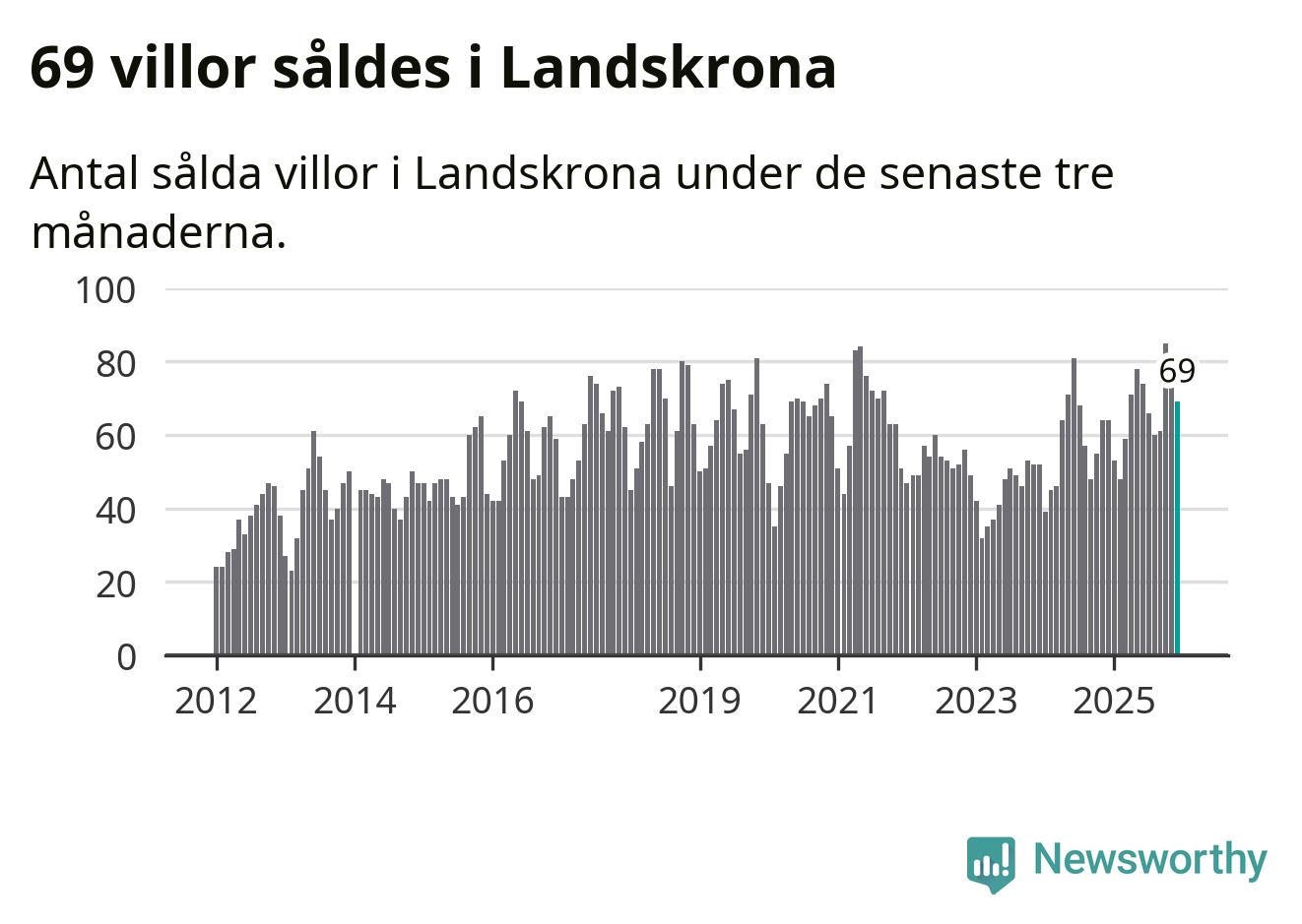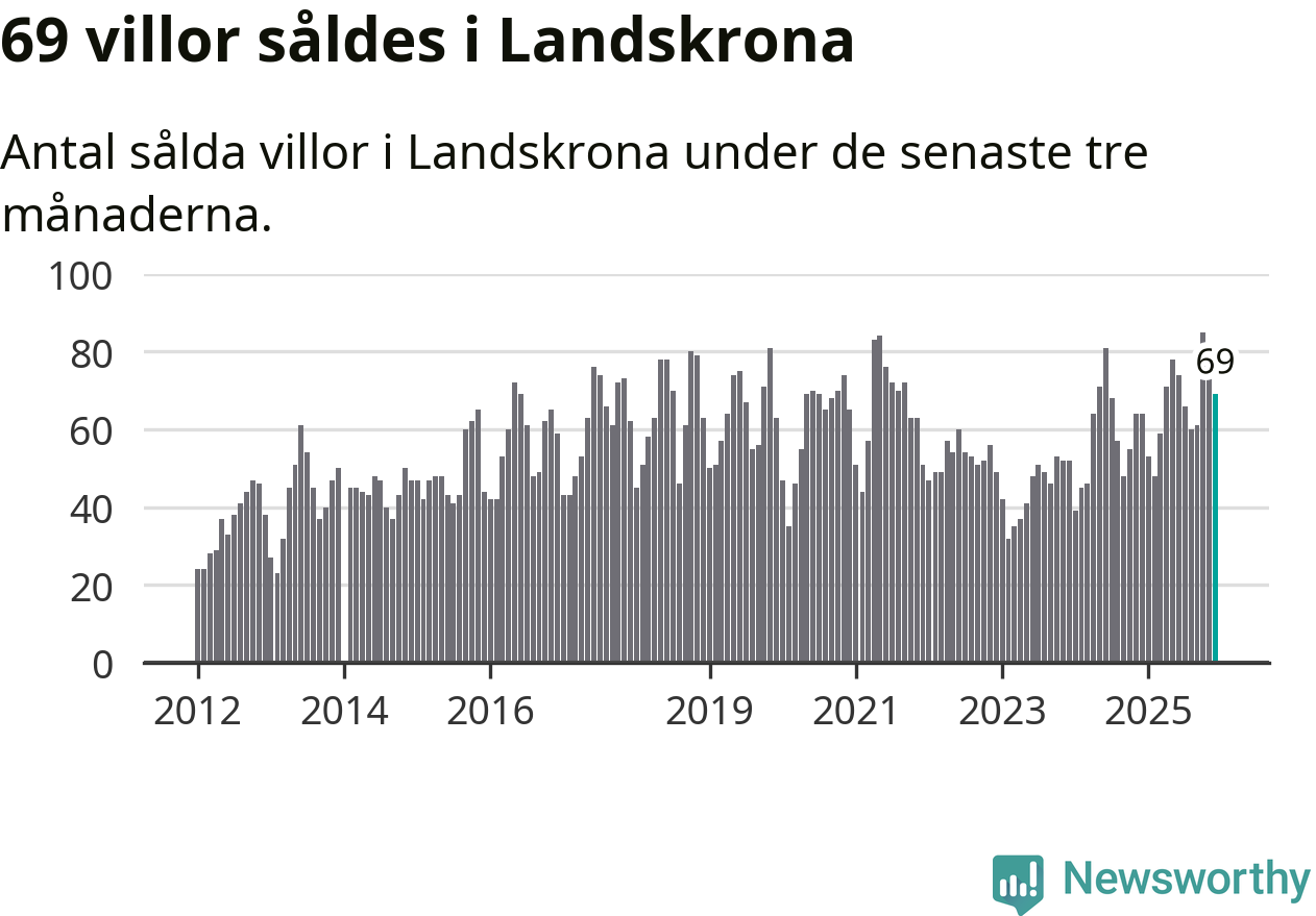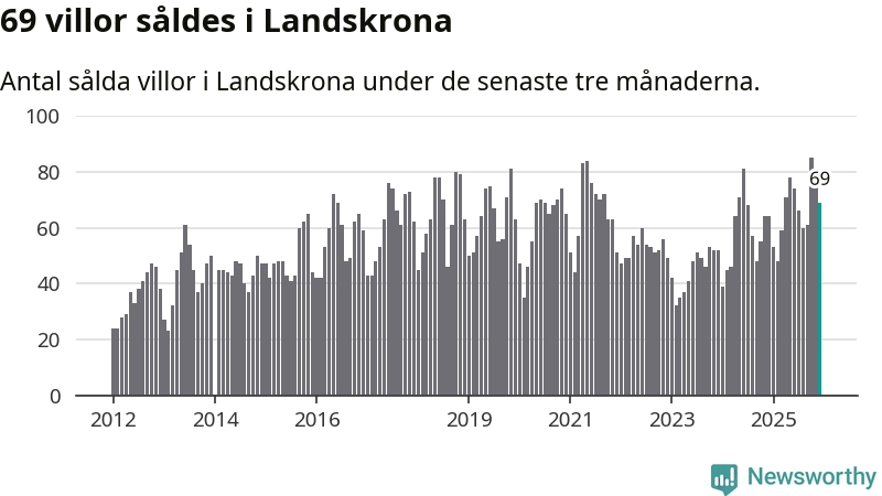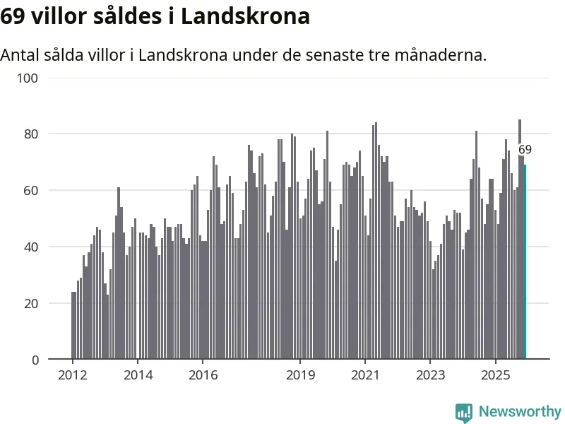 Sammanlagt såldes 69 villor i Landskrona kommun mellan oktober och december till ett genomsnittligt pris på 3,7 miljoner kronor. I fjol gjordes 64 affärer vid den här tiden på året.