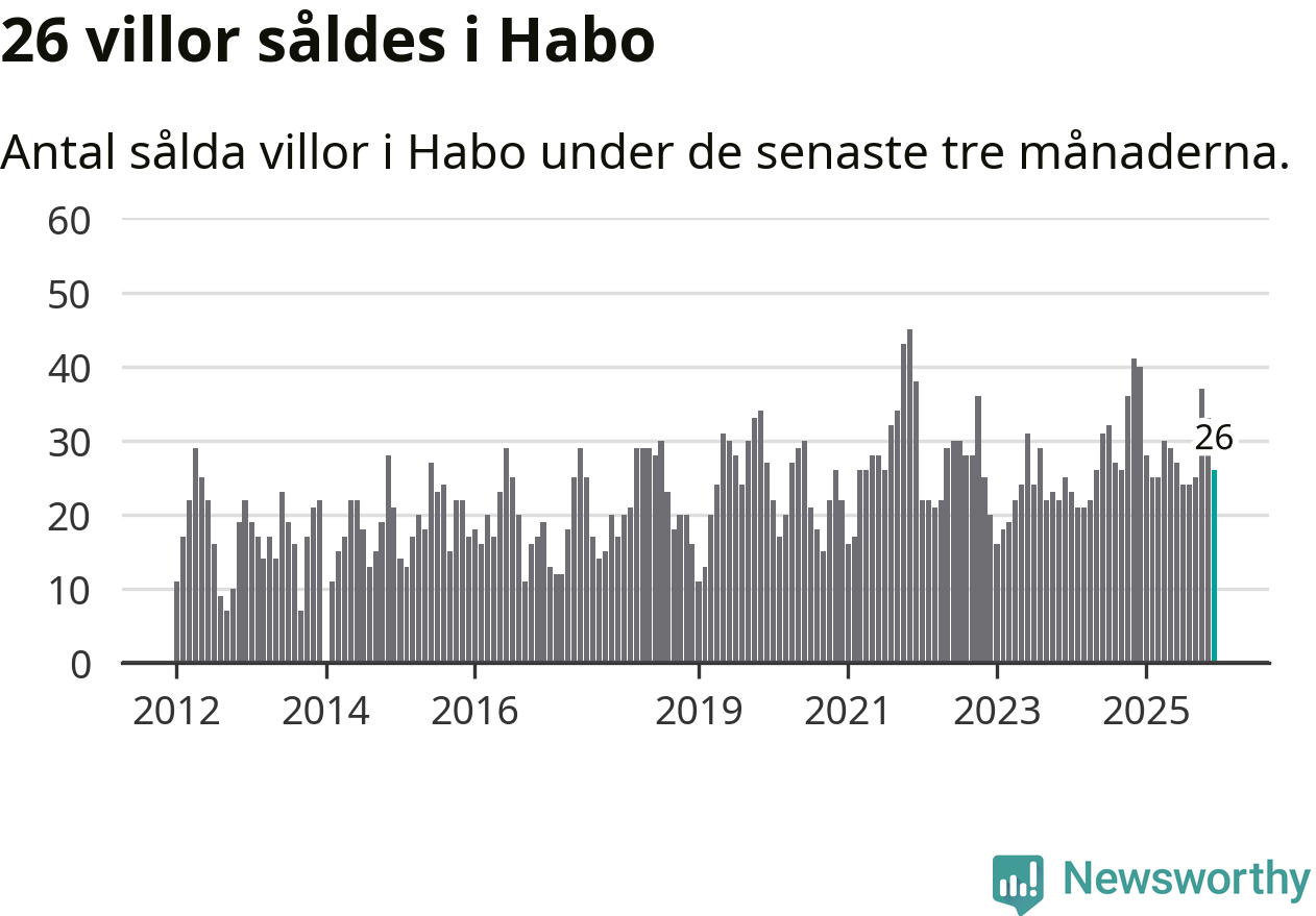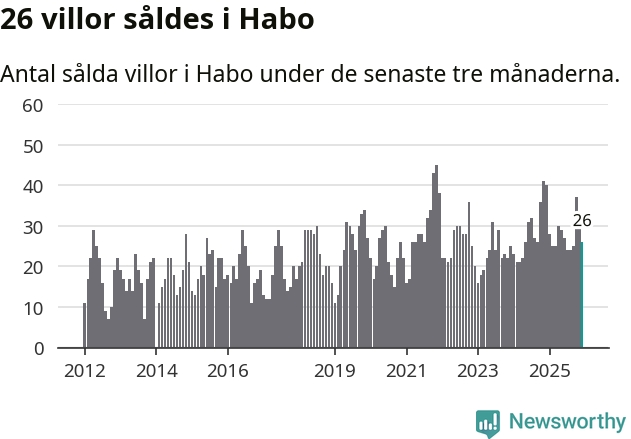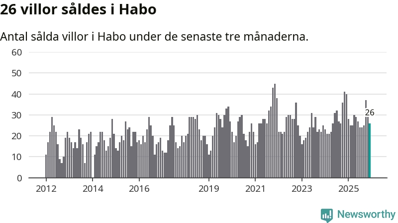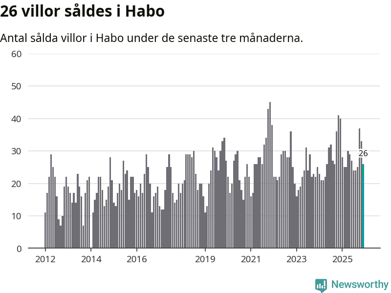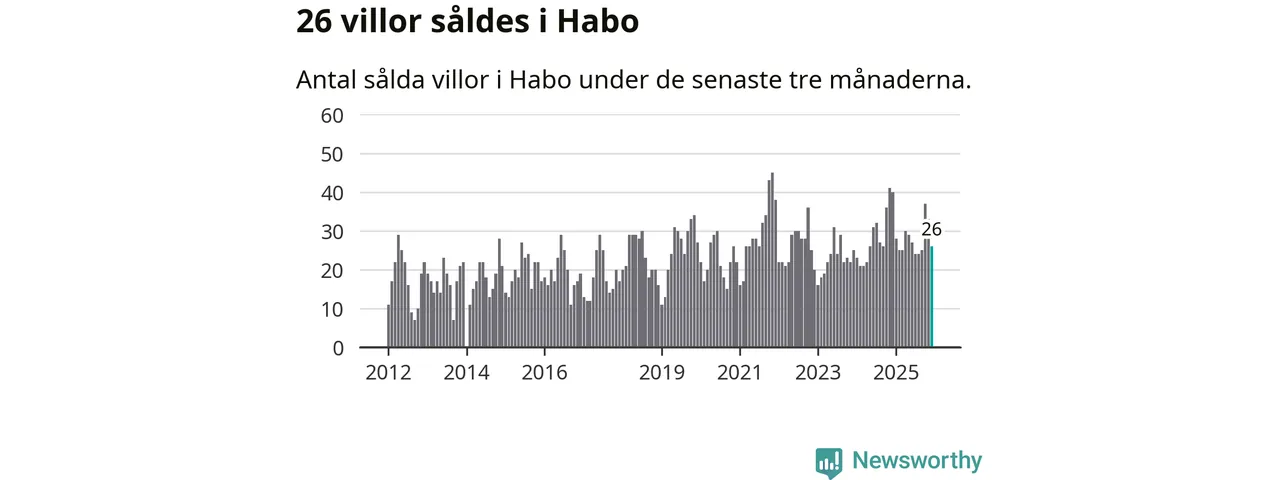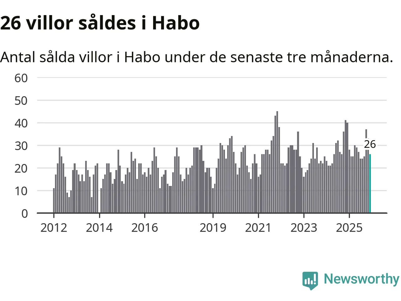 Mellan oktober och december gjordes sammanlagt 26 affärer med villor i Habo kommun. Det kan jämföras med 40 vid motsvarande tid i fjol.