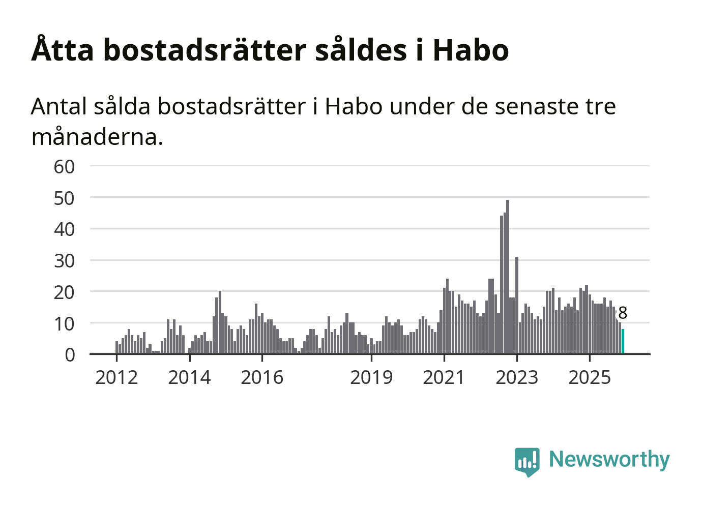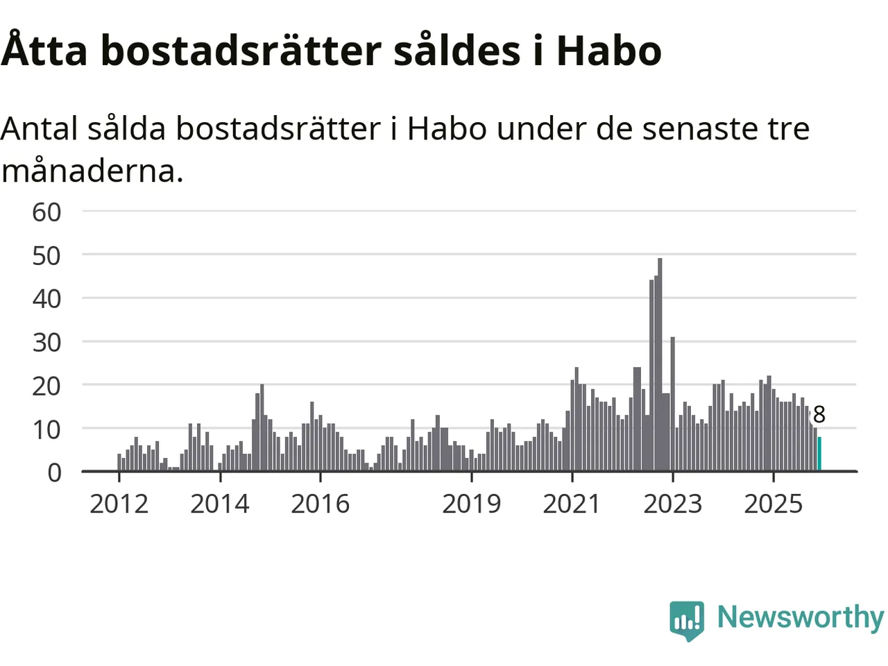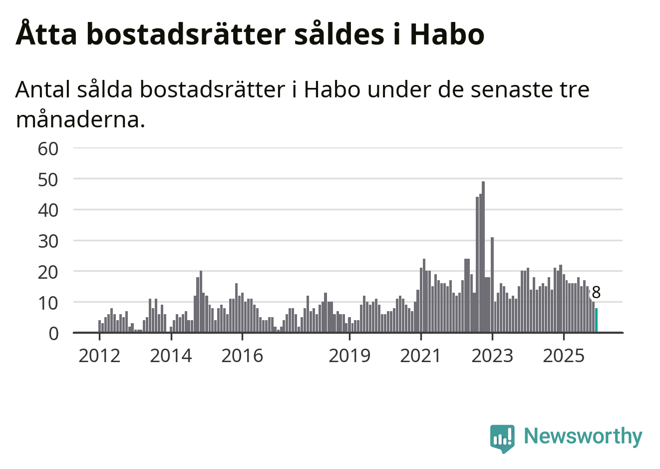Mellan oktober och december gjordes sammanlagt åtta affärer med bostadsrätter i Habo kommun. Det kan jämföras med 22 vid motsvarande tid i fjol.