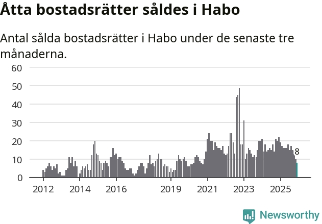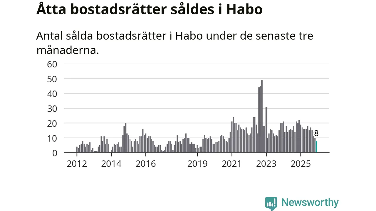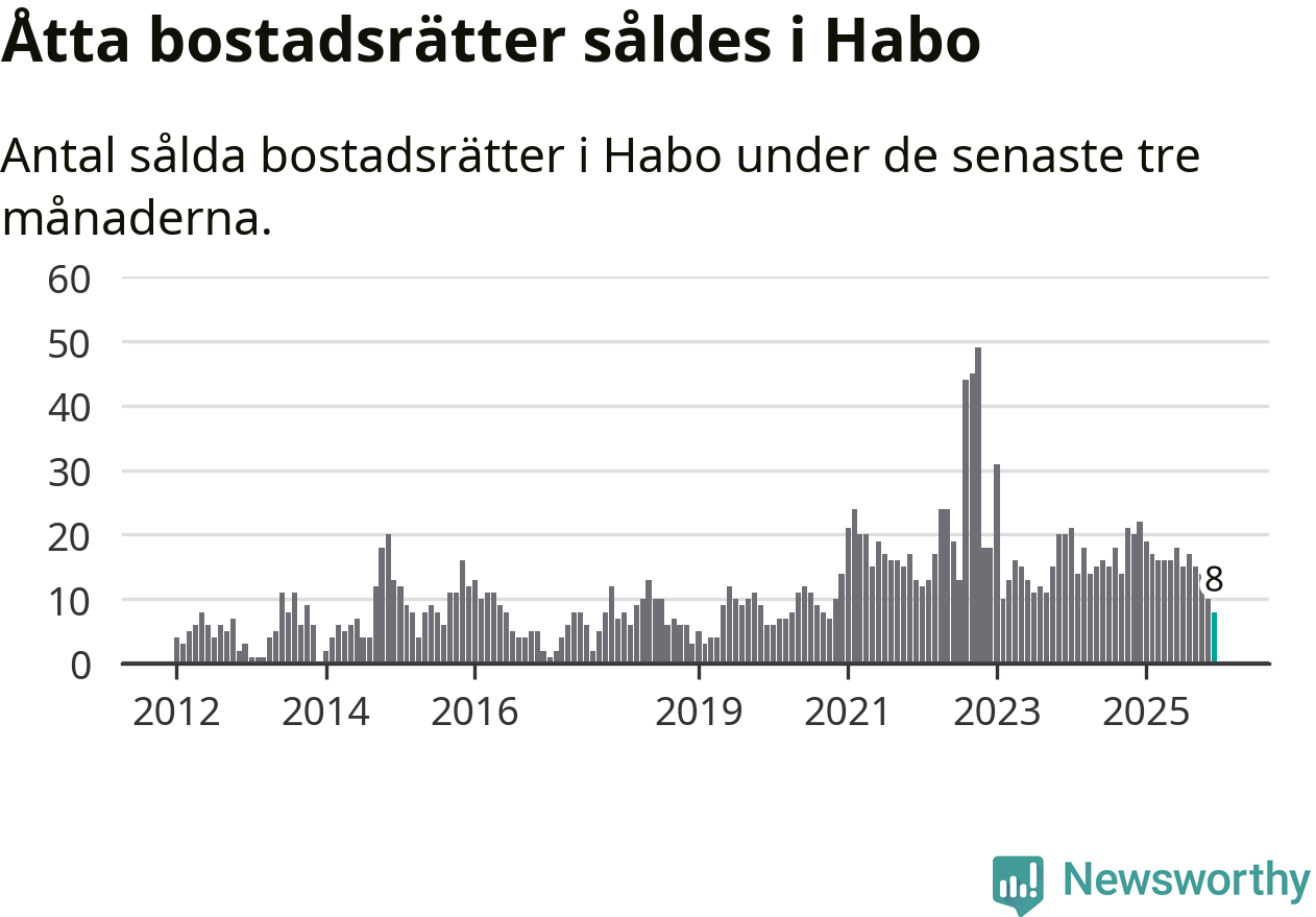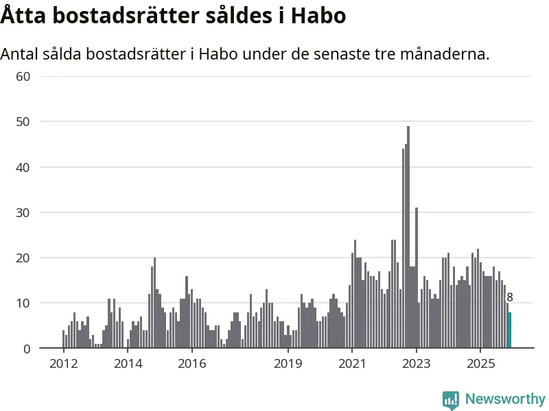 Mellan oktober och december gjordes sammanlagt åtta affärer med bostadsrätter i Habo kommun. Det kan jämföras med 22 vid motsvarande tid i fjol.