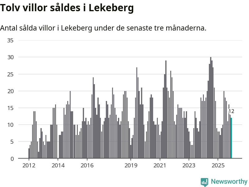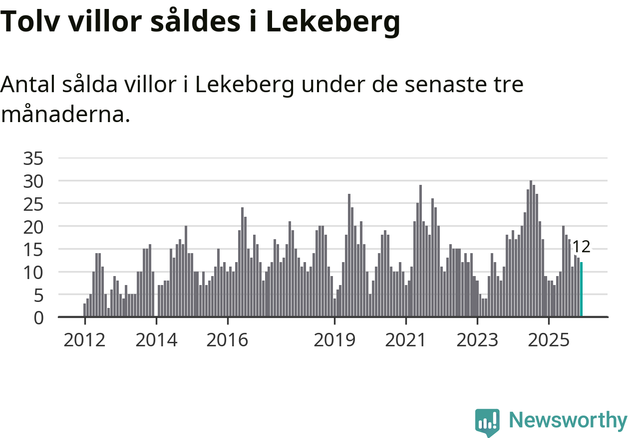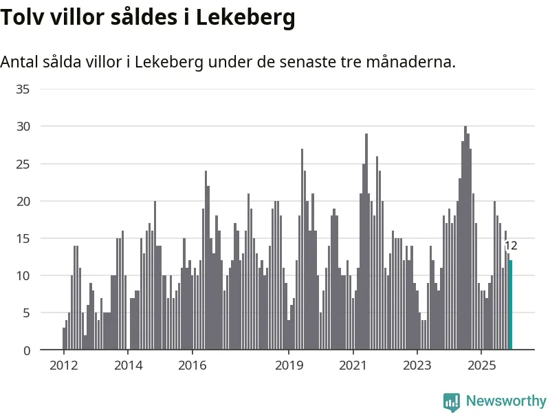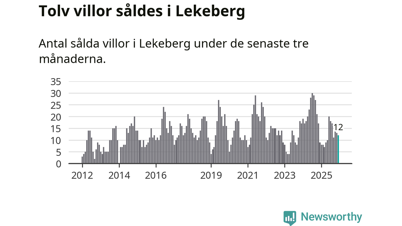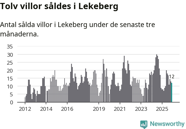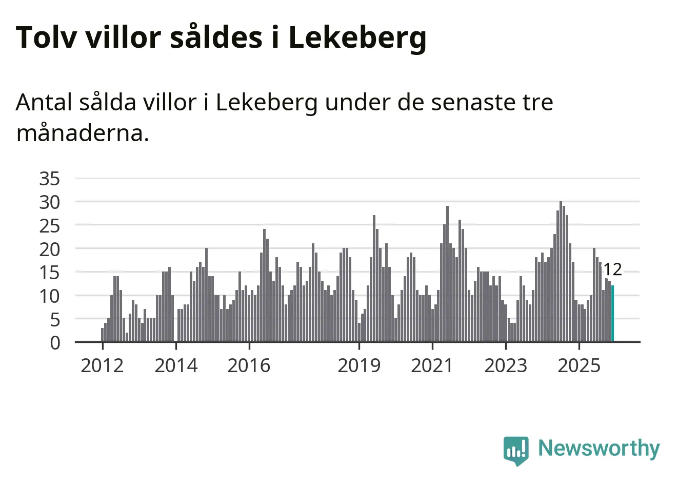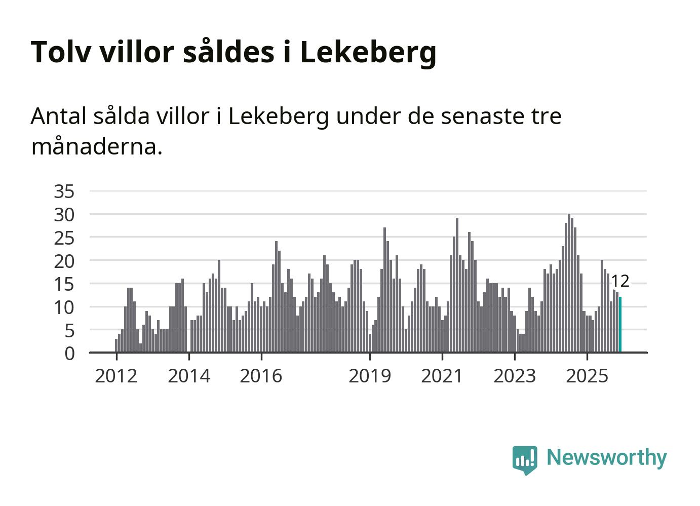 Mellan oktober och december gjordes sammanlagt tolv affärer med villor i Lekebergs kommun. Det kan jämföras med nio vid motsvarande tid i fjol.