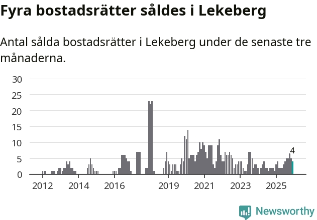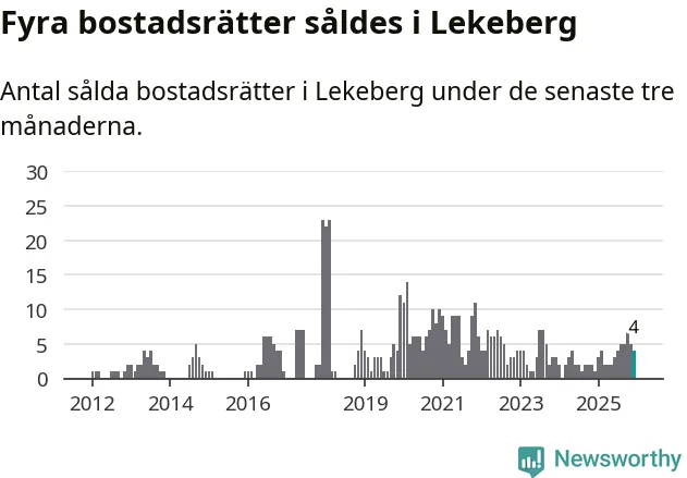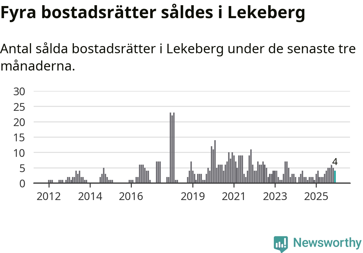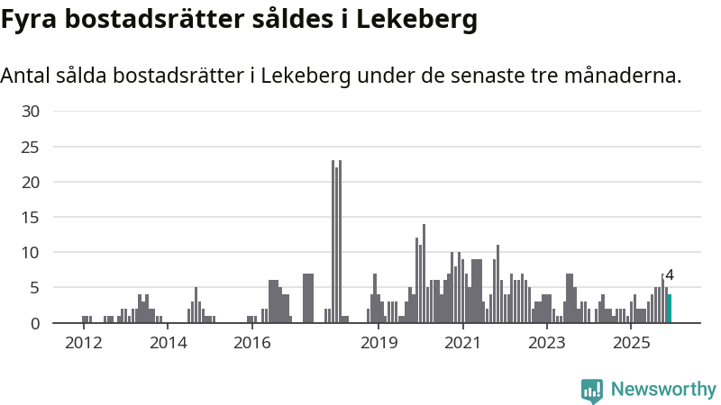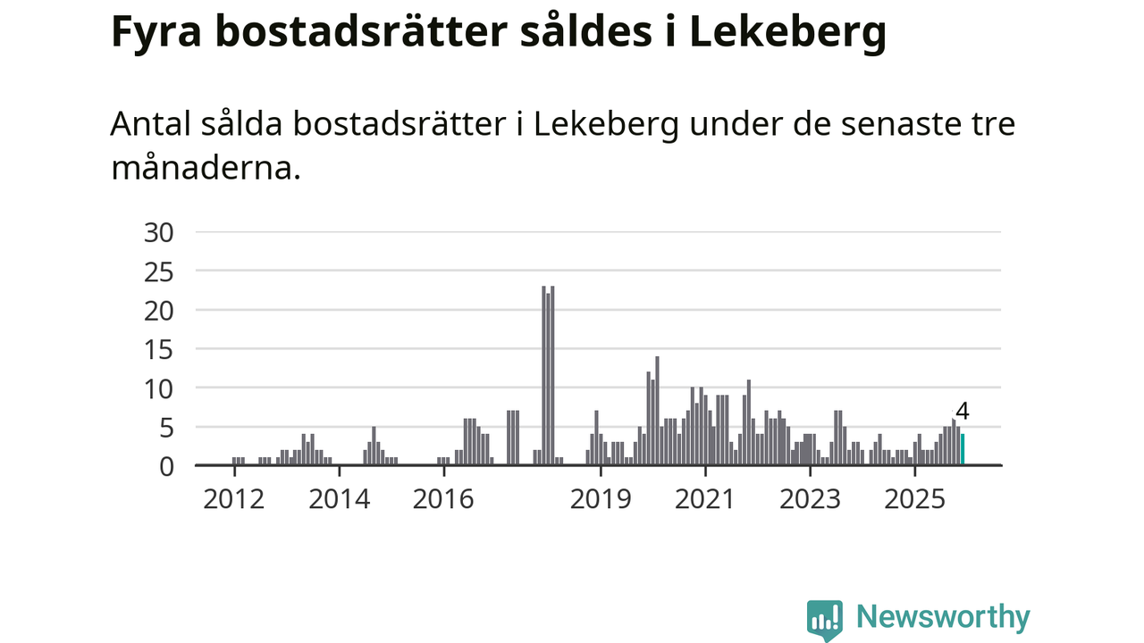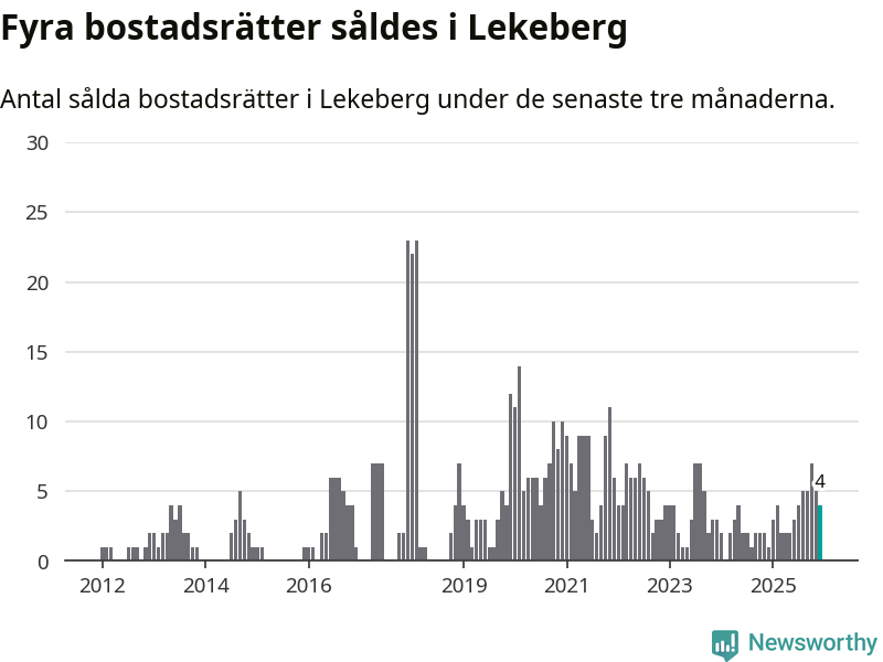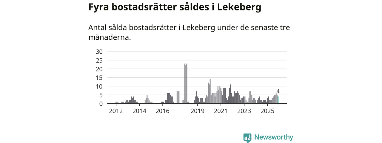 Mellan oktober och december gjordes sammanlagt fyra affärer med bostadsrätter i Lekebergs kommun. Det kan jämföras med ett vid motsvarande tid i fjol.