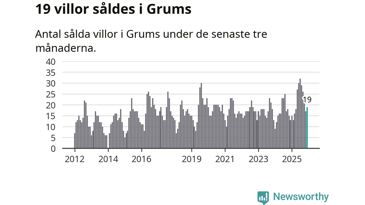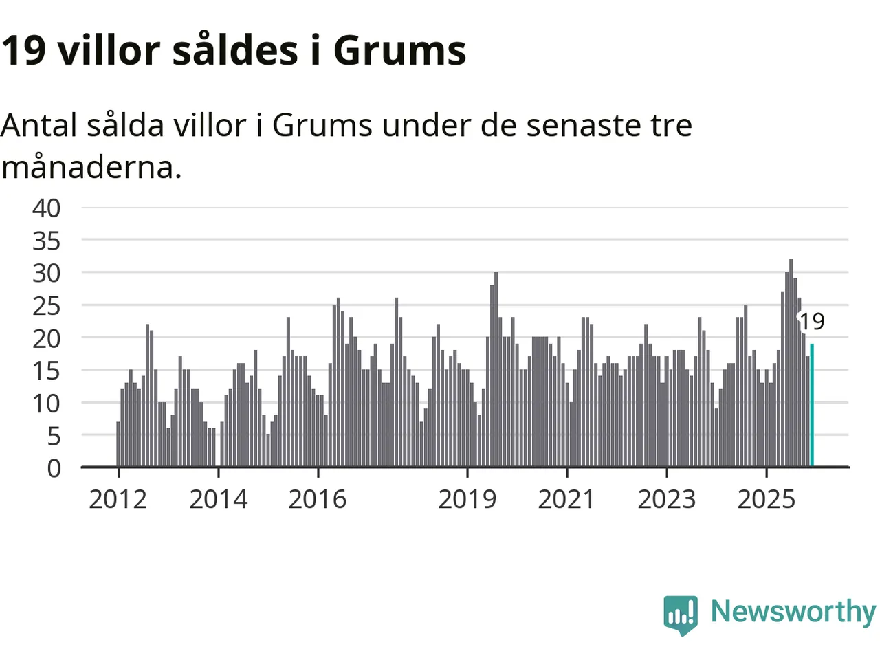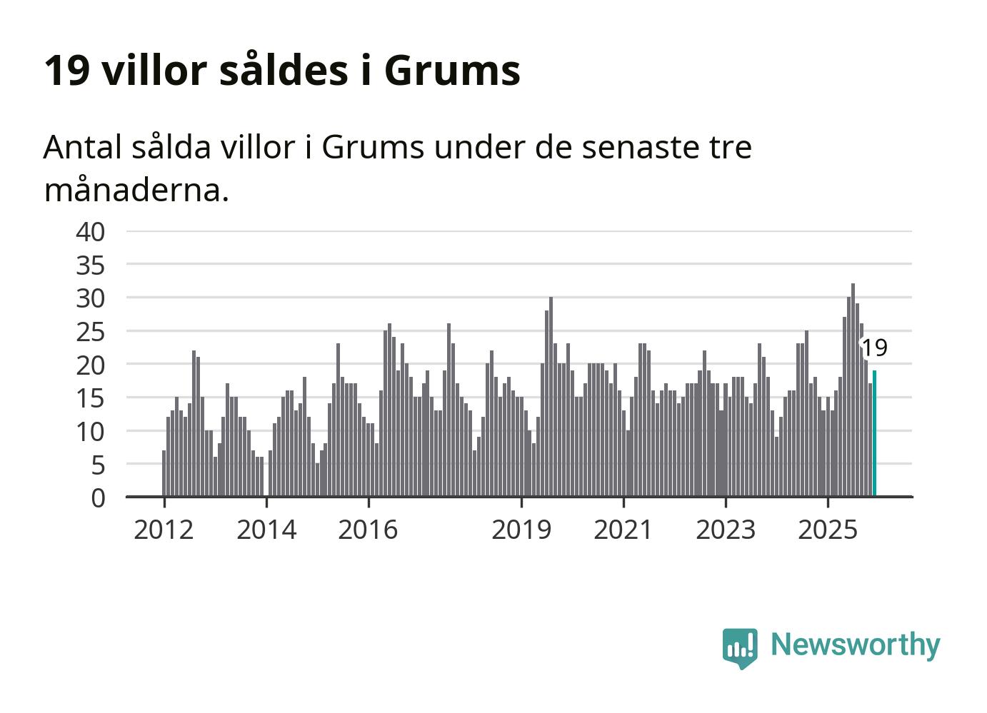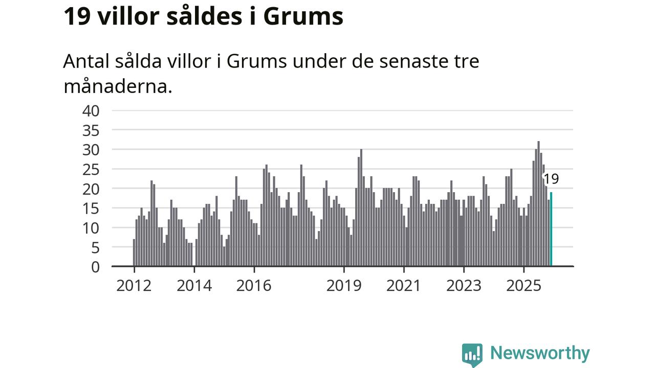 Mellan oktober och december gjordes sammanlagt 19 affärer med villor i Grums kommun. Det kan jämföras med 13 vid motsvarande tid i fjol.