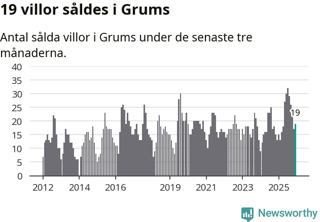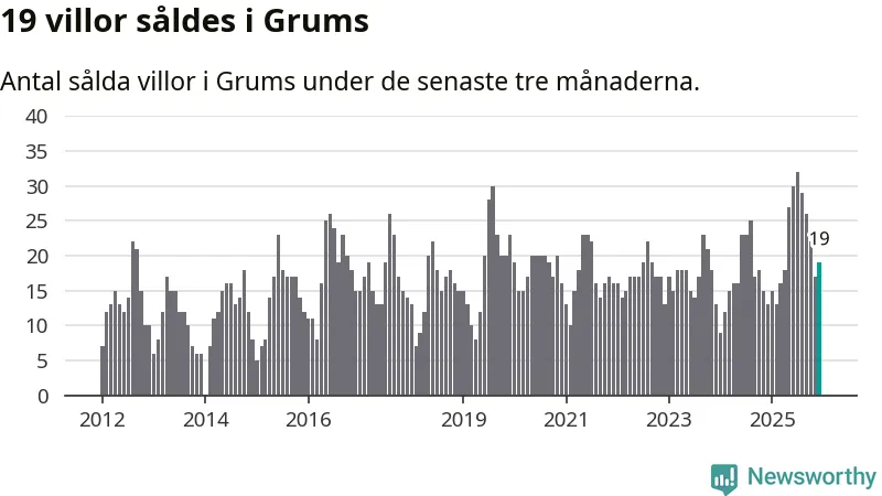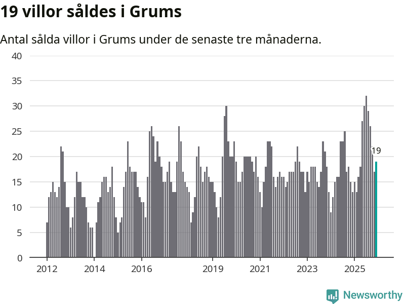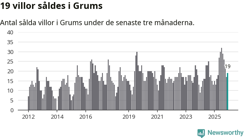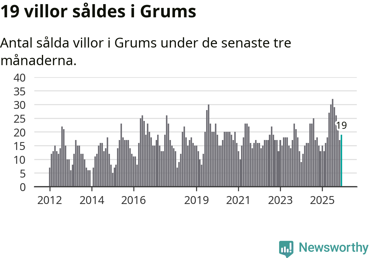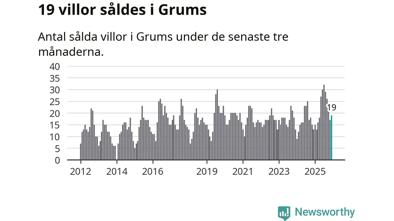 Mellan oktober och december gjordes sammanlagt 19 affärer med villor i Grums kommun. Det kan jämföras med 13 vid motsvarande tid i fjol.