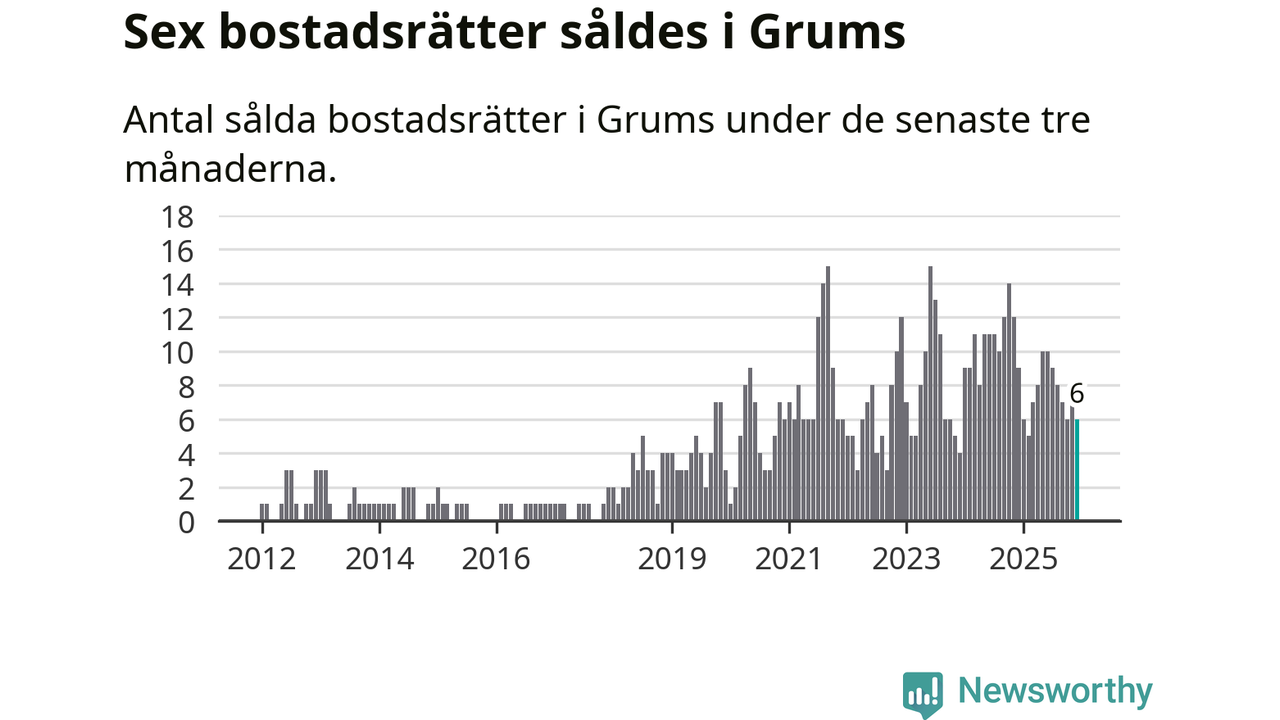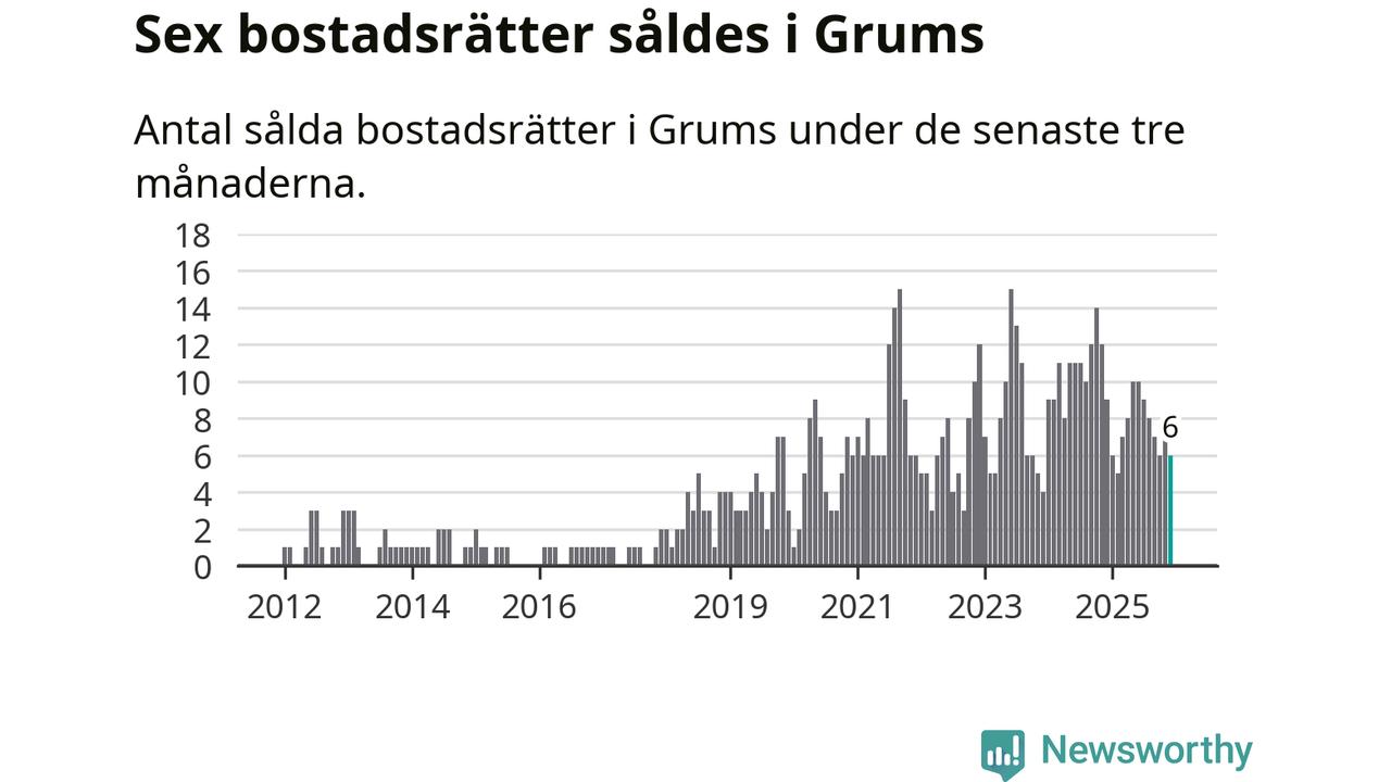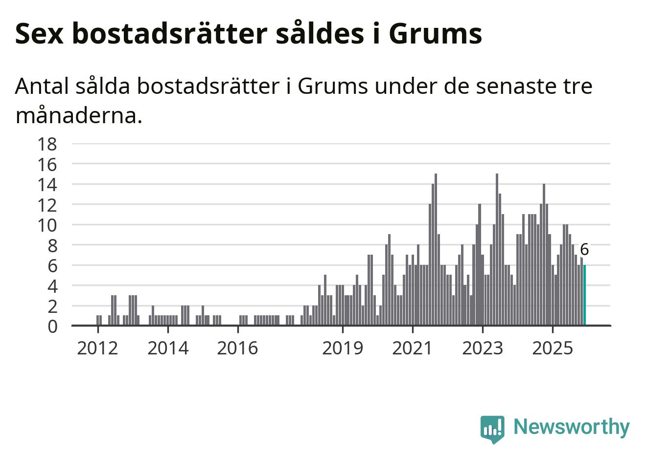 Mellan oktober och december gjordes sammanlagt sex affärer med bostadsrätter i Grums kommun. Det kan jämföras med nio vid motsvarande tid i fjol.