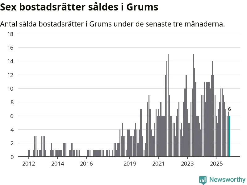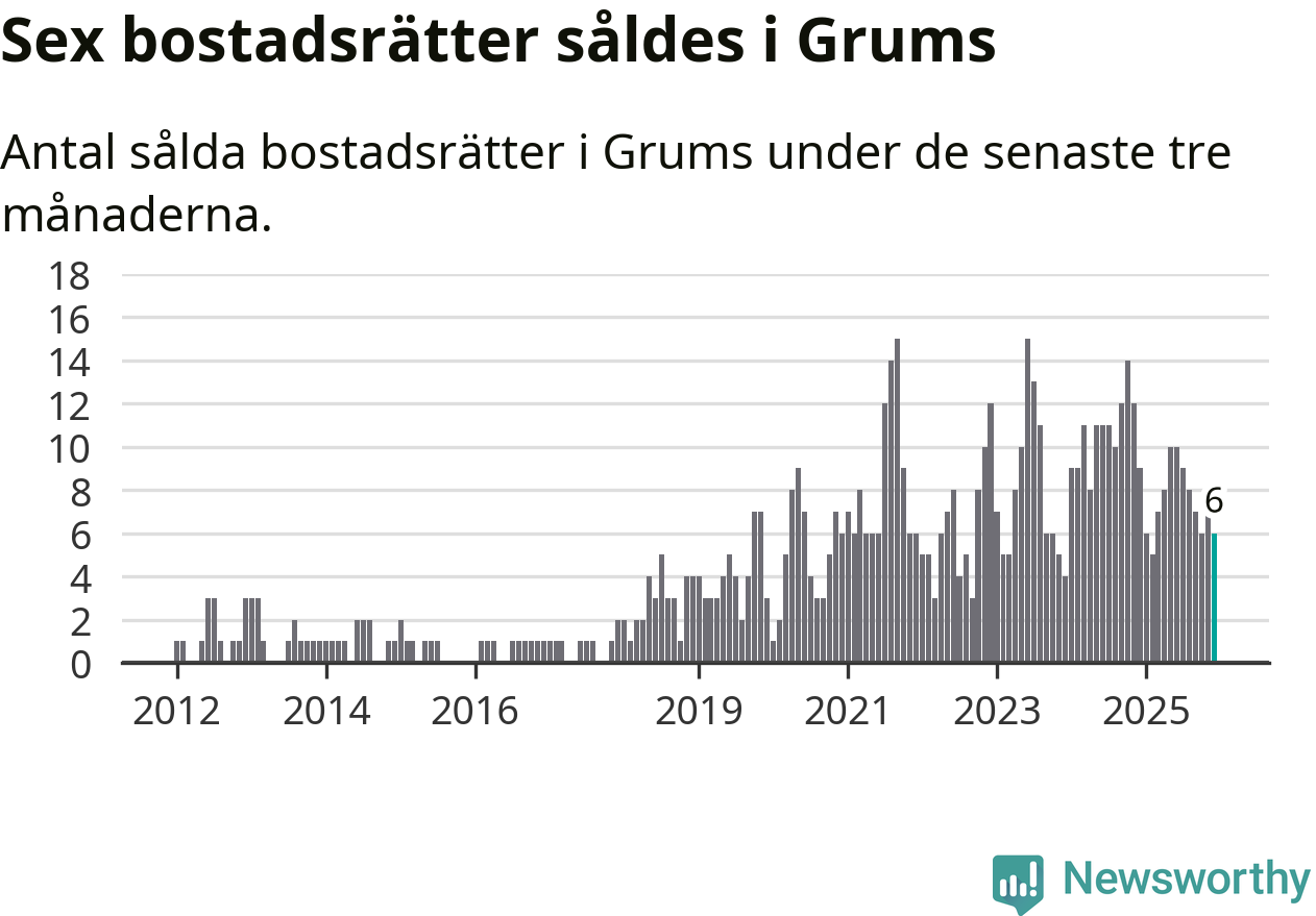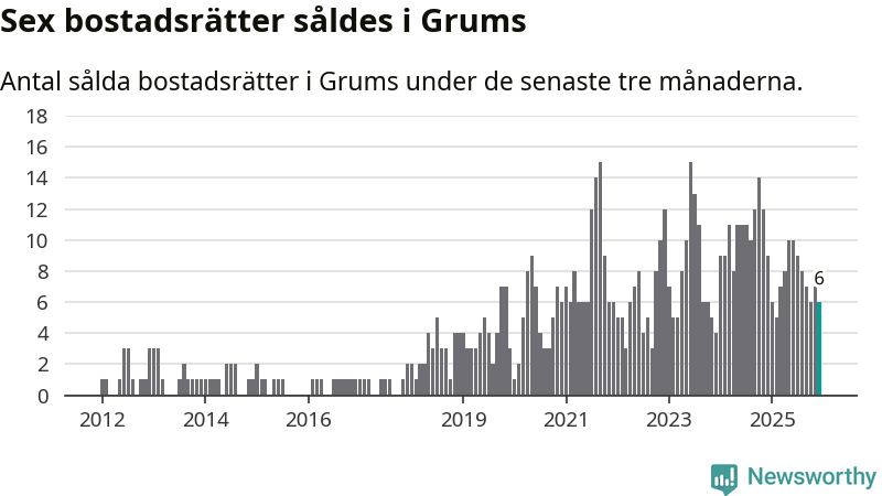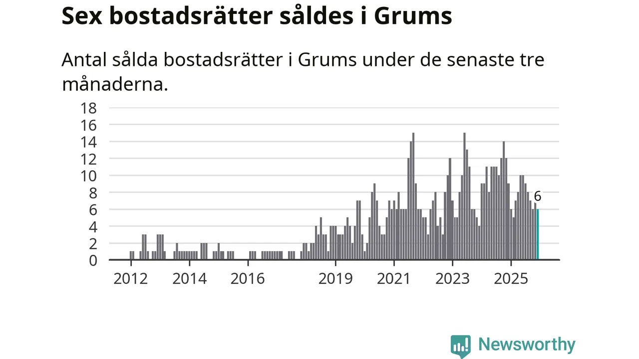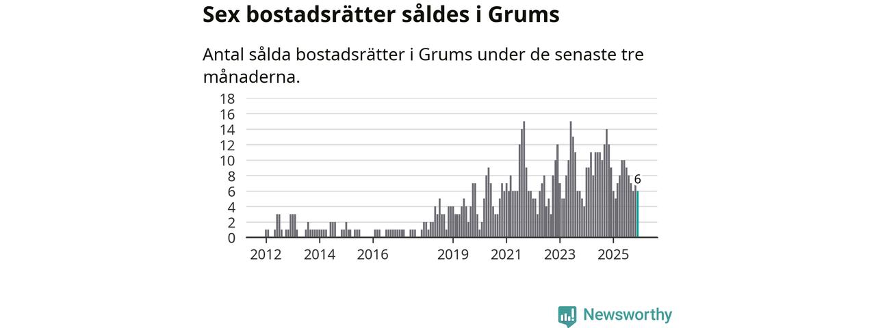Mellan oktober och december gjordes sammanlagt sex affärer med bostadsrätter i Grums kommun. Det kan jämföras med nio vid motsvarande tid i fjol.