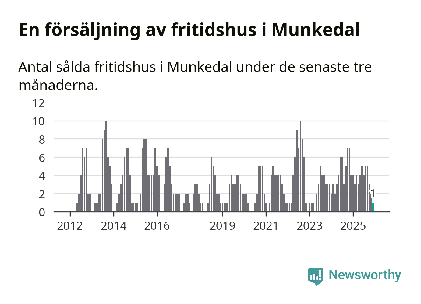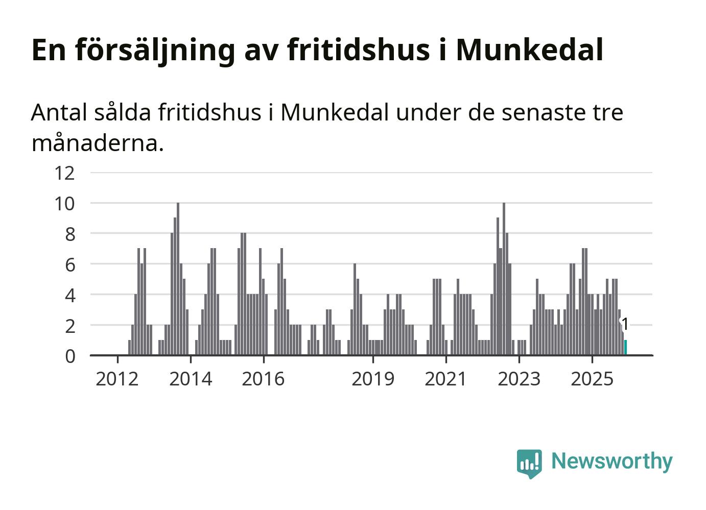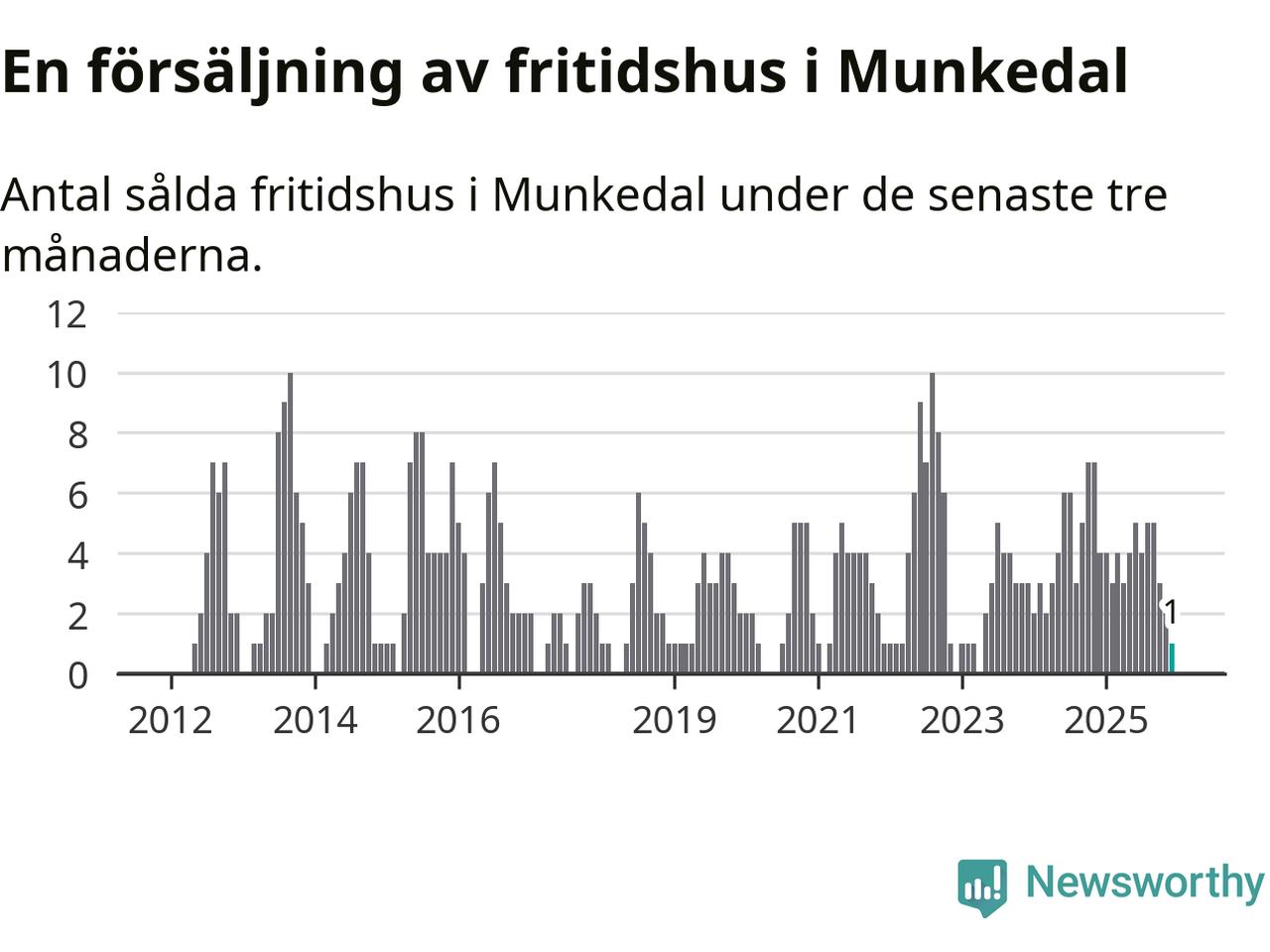 Mellan oktober och december gjordes sammanlagt en affär med fritidshus i Munkedals kommun. Det kan jämföras med fyra vid motsvarande tid i fjol.
