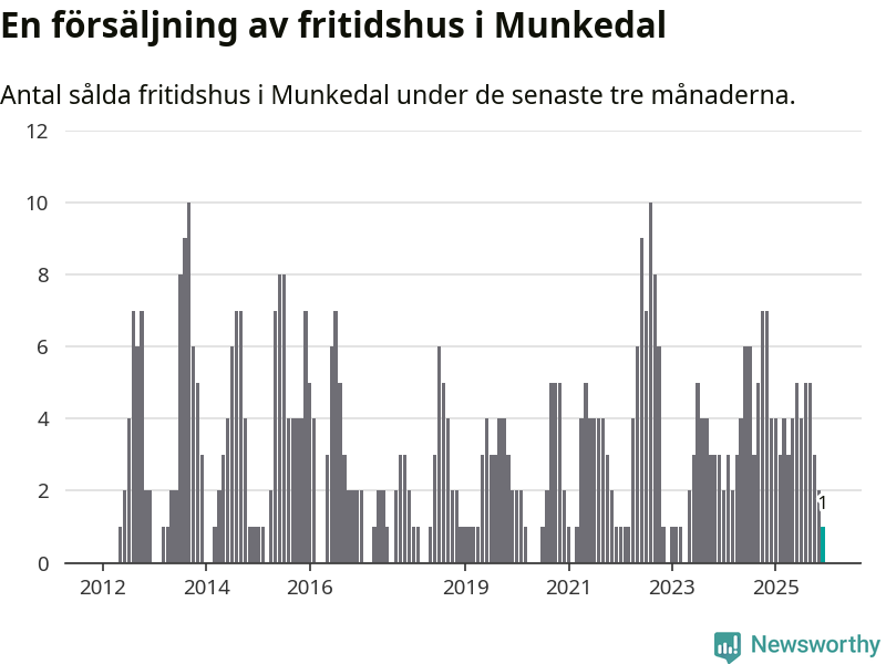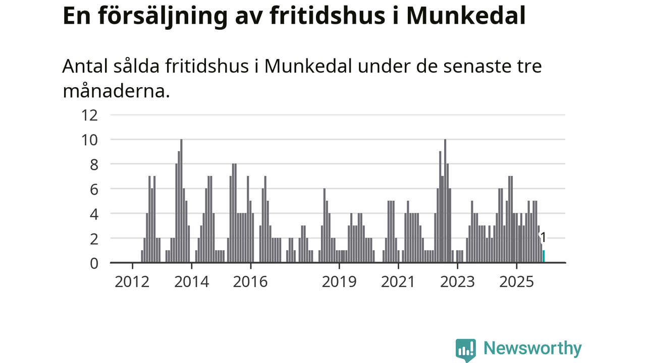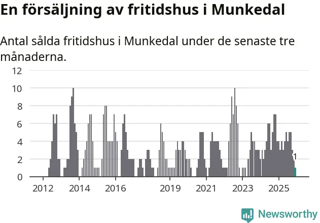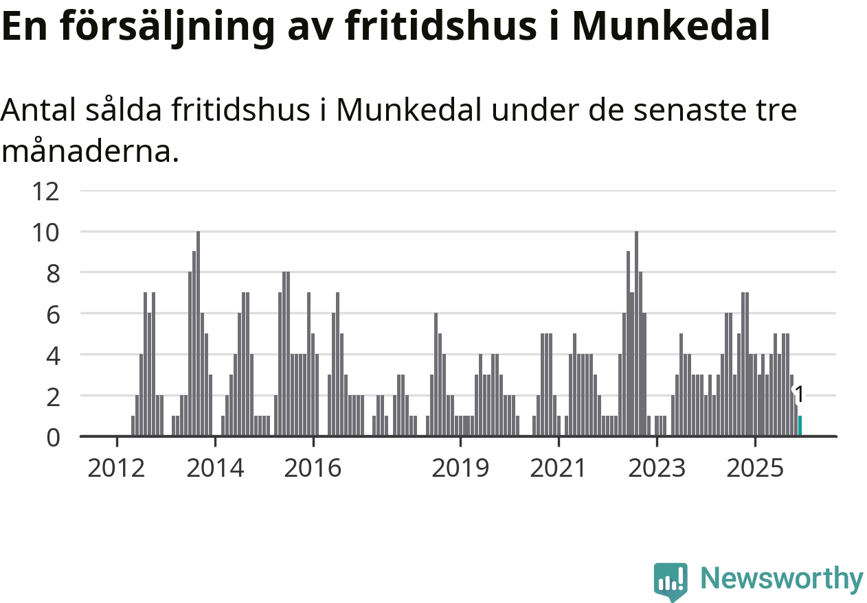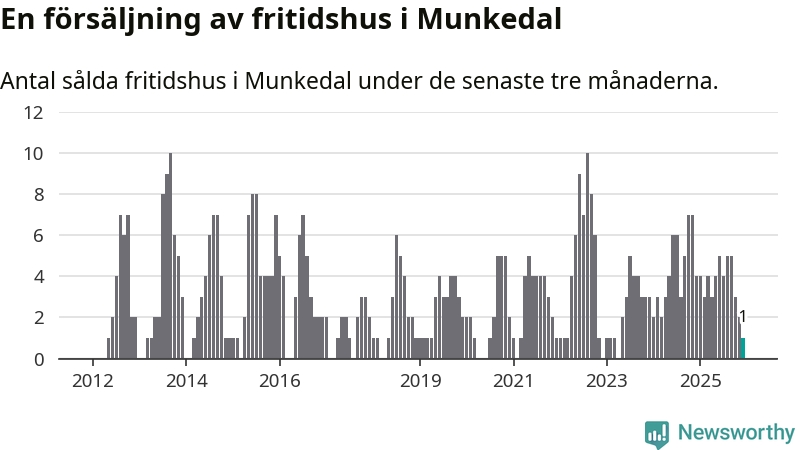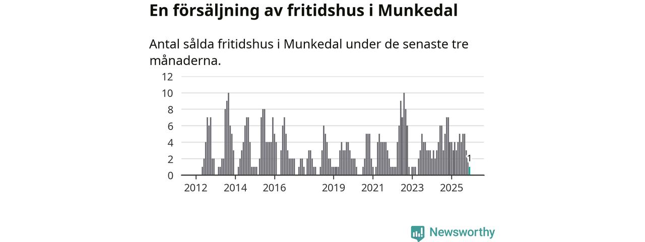Mellan oktober och december gjordes sammanlagt en affär med fritidshus i Munkedals kommun. Det kan jämföras med fyra vid motsvarande tid i fjol.