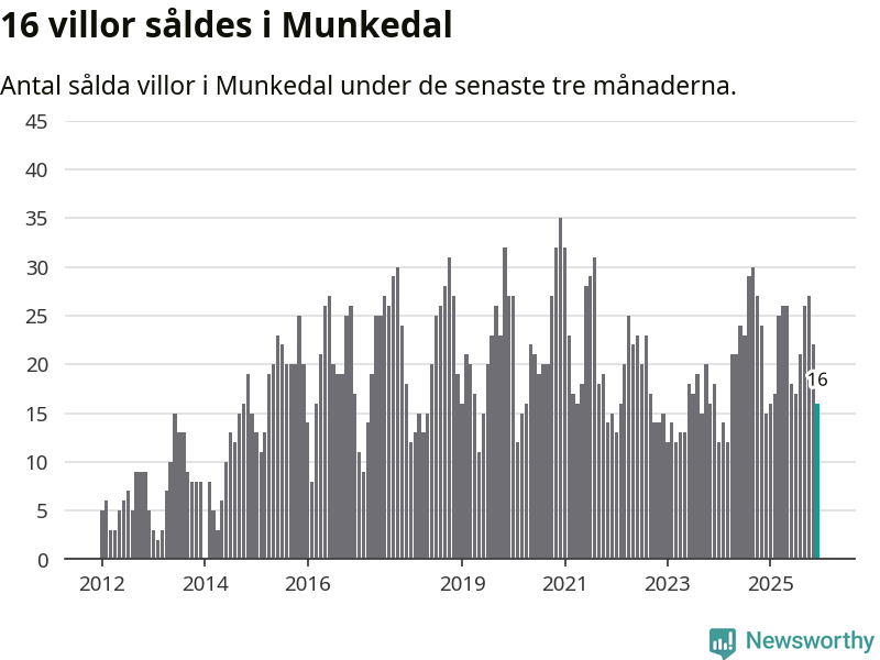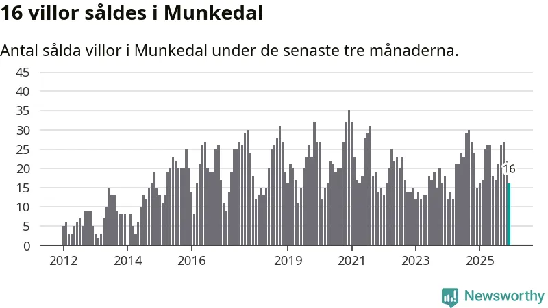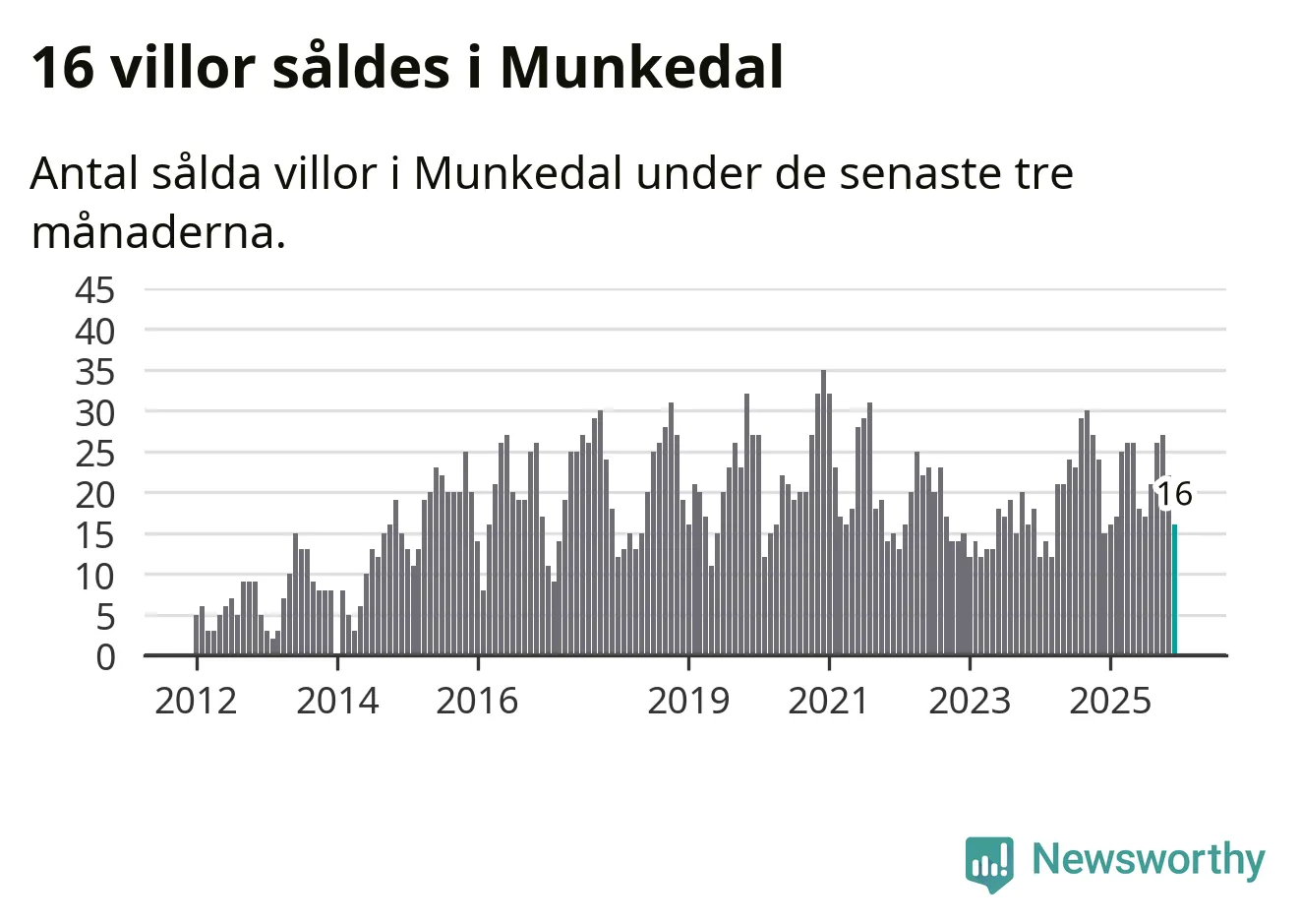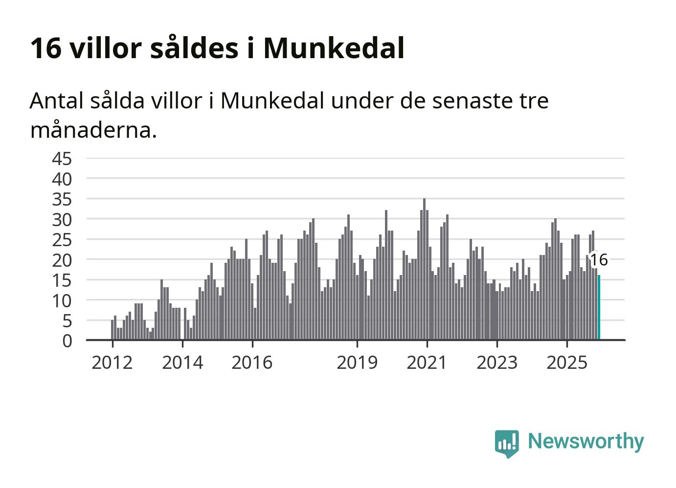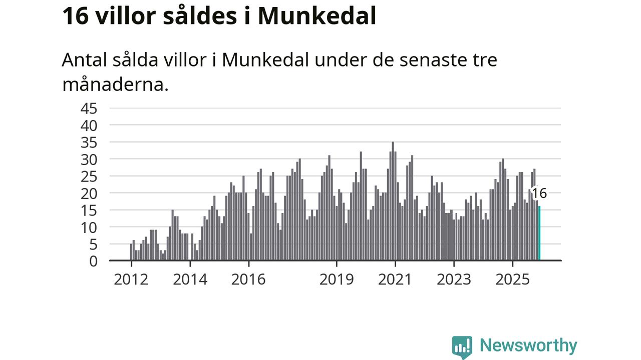 Mellan oktober och december gjordes sammanlagt 16 affärer med villor i Munkedals kommun. Det kan jämföras med 15 vid motsvarande tid i fjol.