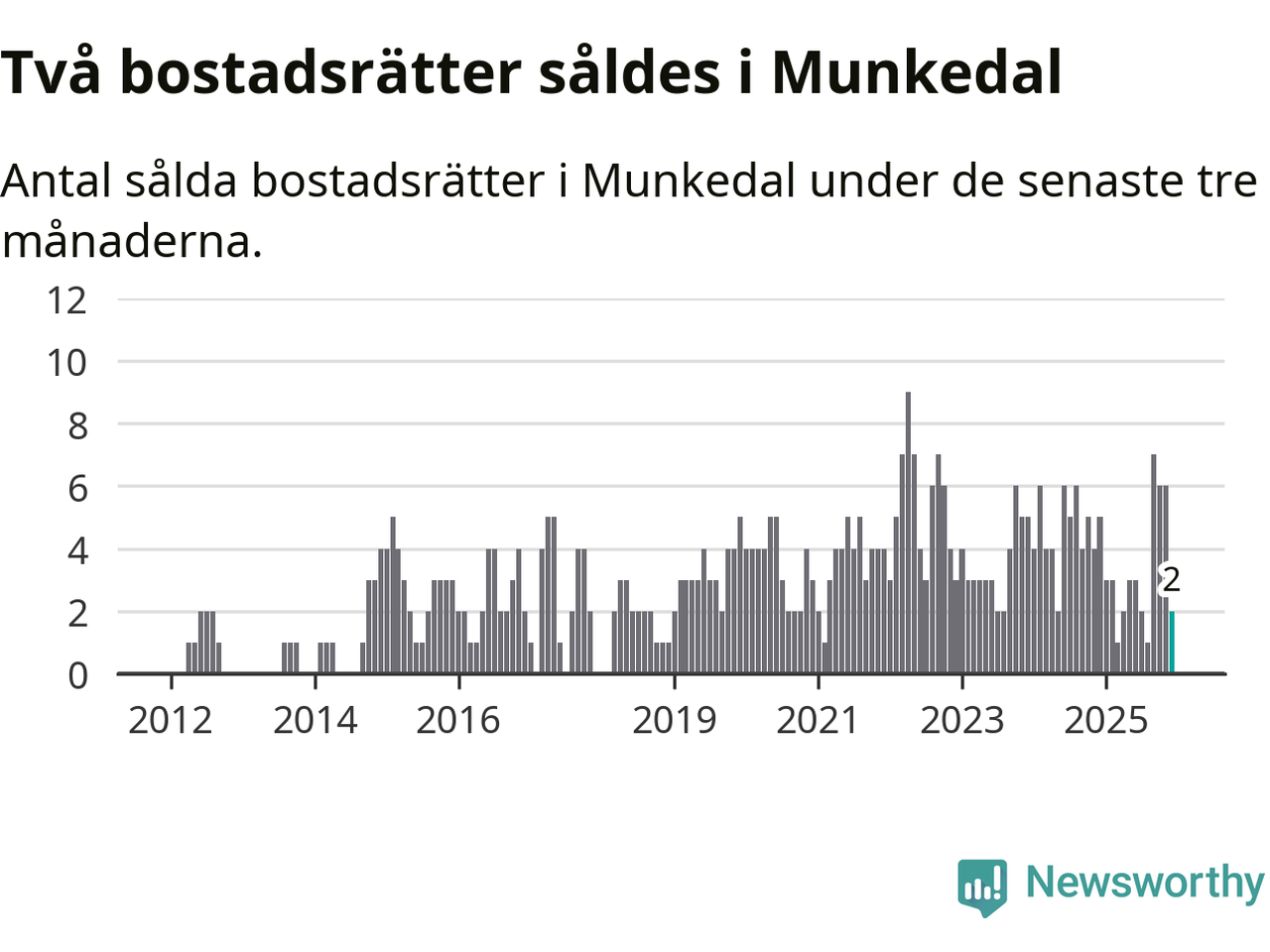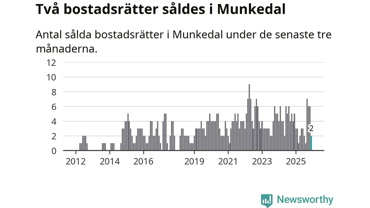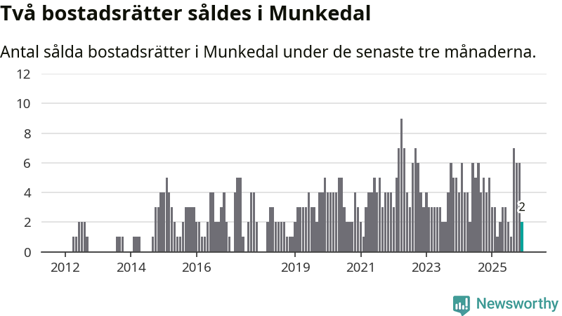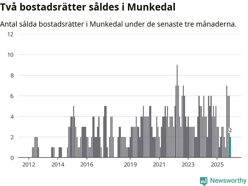 Mellan oktober och december gjordes sammanlagt två affärer med bostadsrätter i Munkedals kommun. Det kan jämföras med fem vid motsvarande tid i fjol.