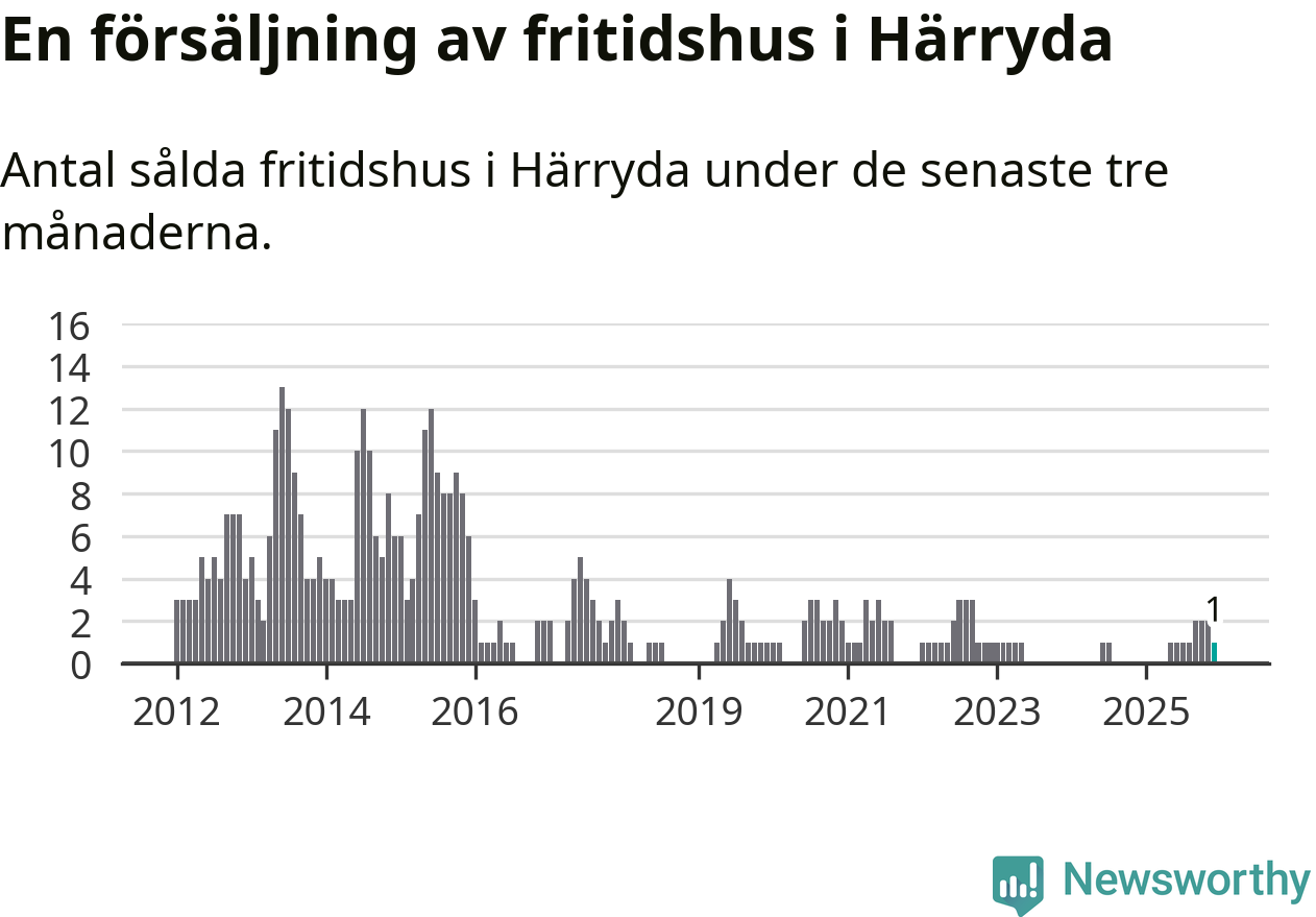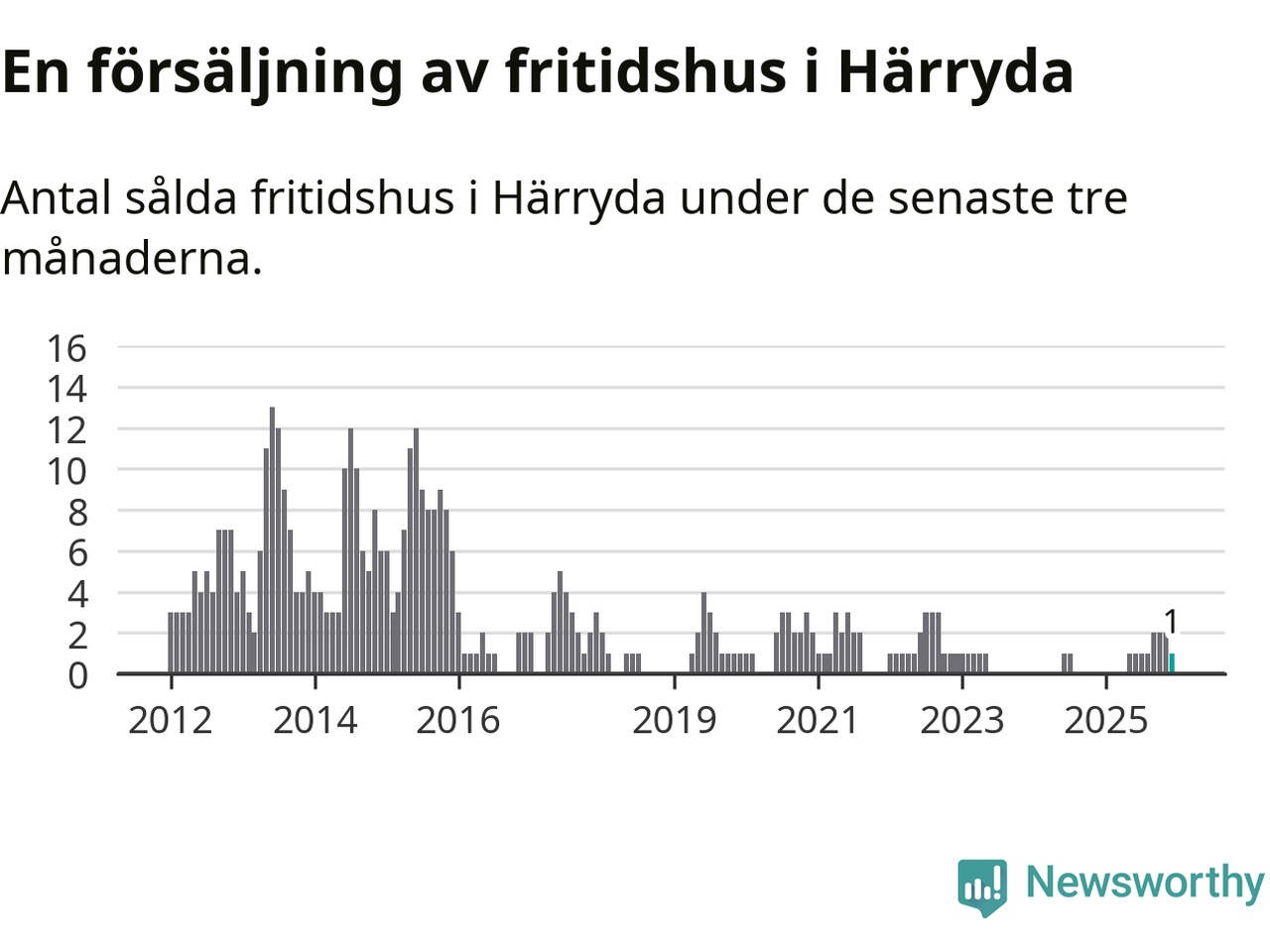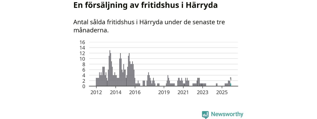 Mellan oktober och december gjordes sammanlagt en affär med fritidshus i Härryda kommun.