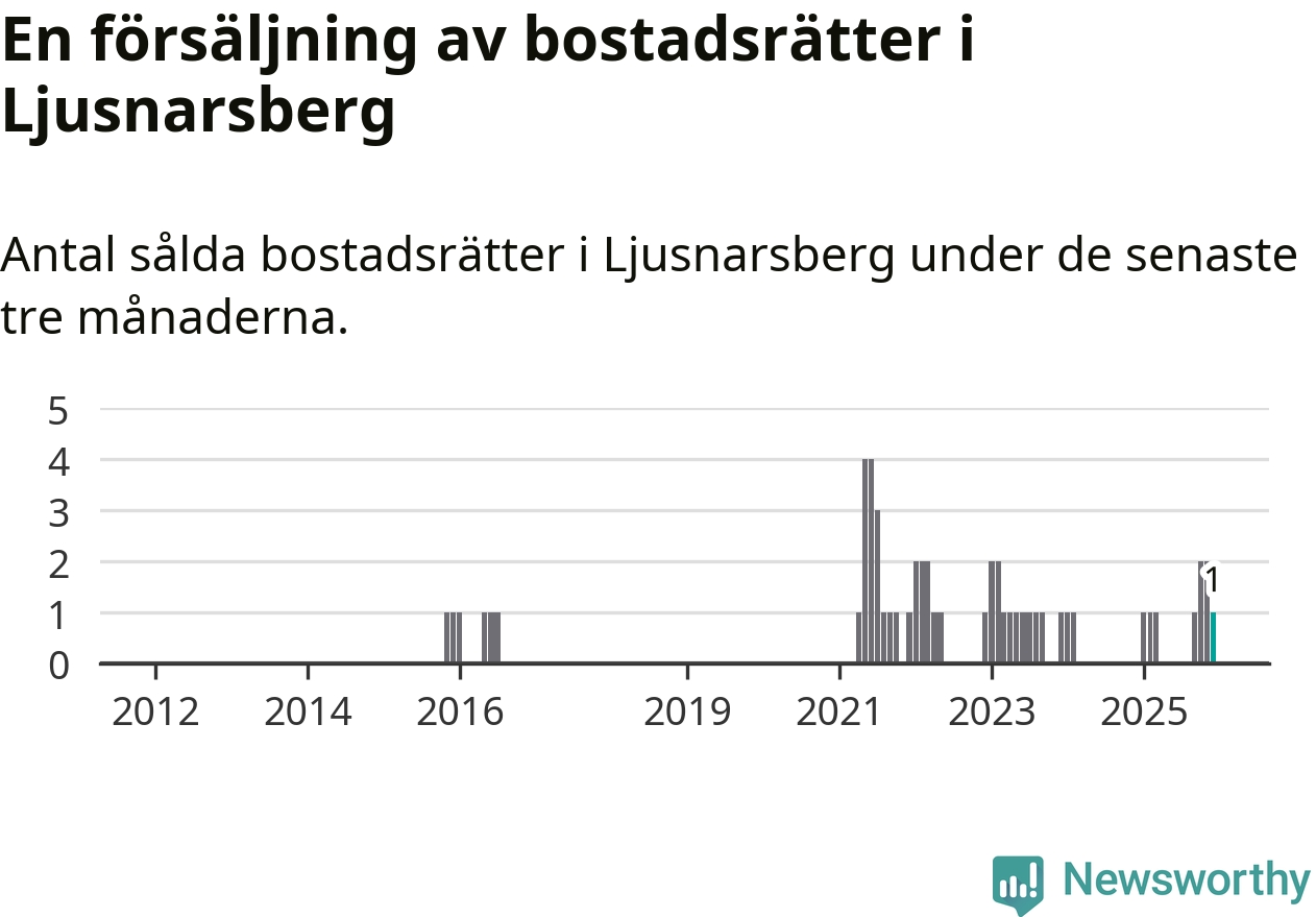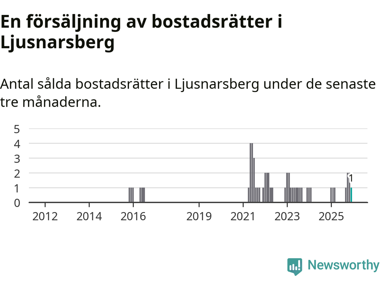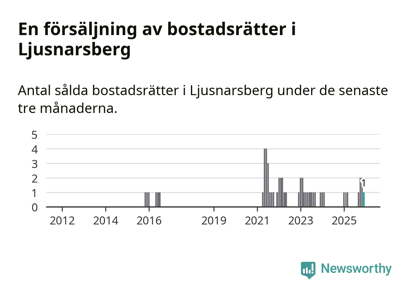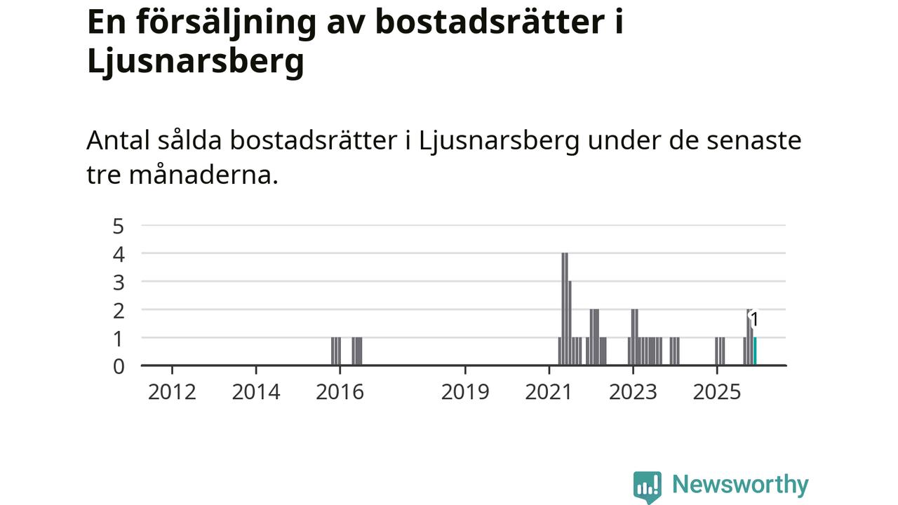 Mellan oktober och december gjordes sammanlagt en affär med bostadsrätter i Ljusnarsbergs kommun.