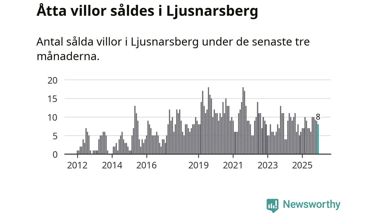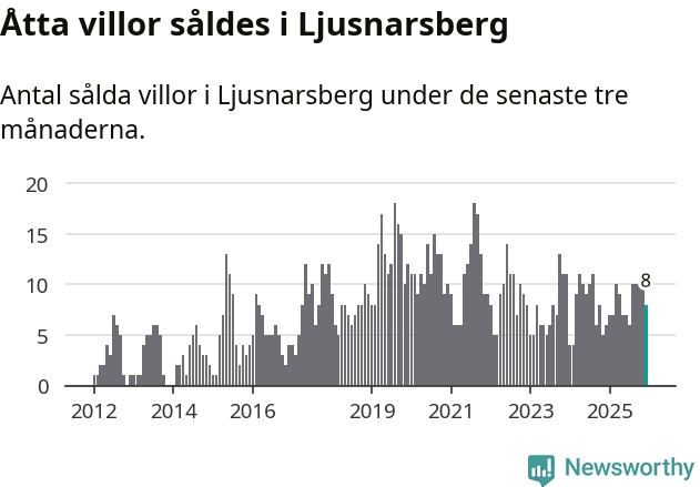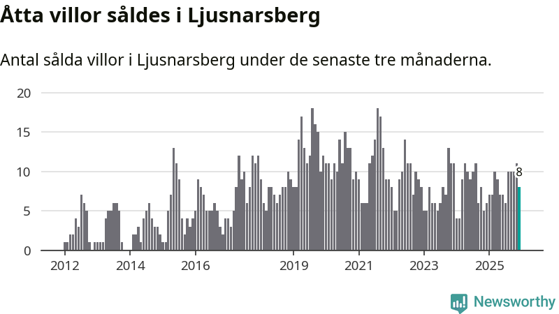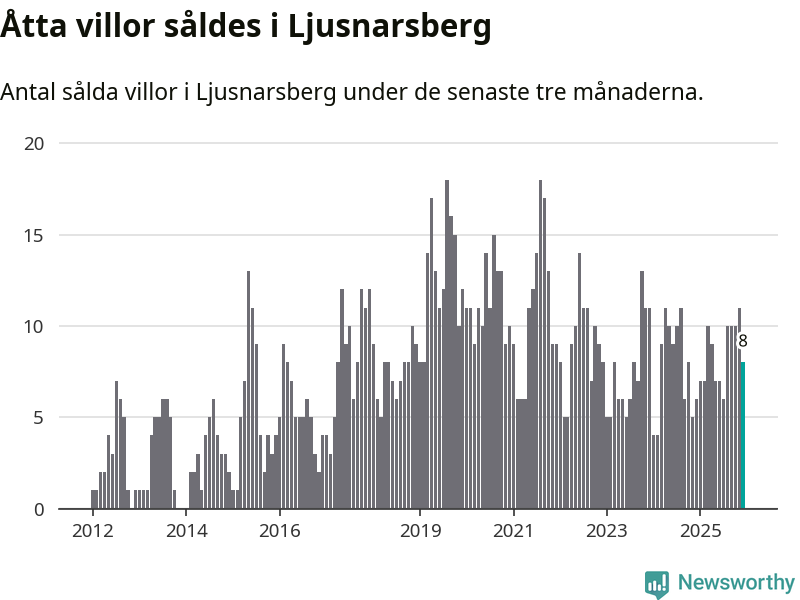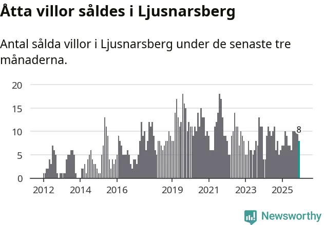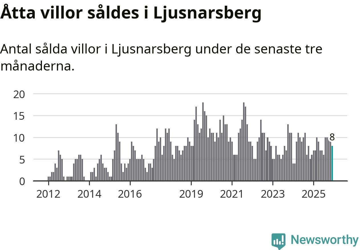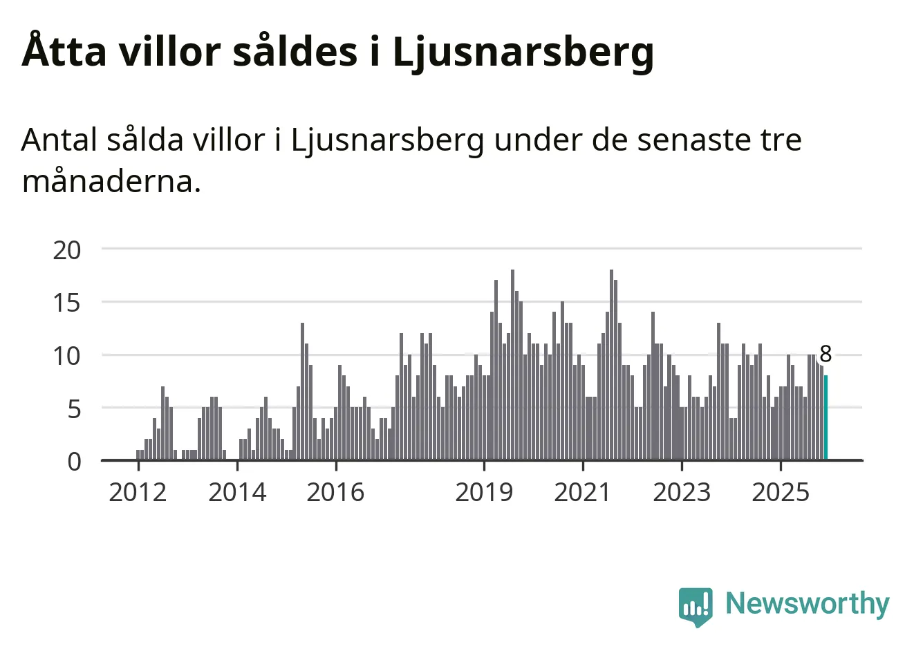 Mellan oktober och december gjordes sammanlagt åtta affärer med villor i Ljusnarsbergs kommun. Det kan jämföras med sex vid motsvarande tid i fjol.