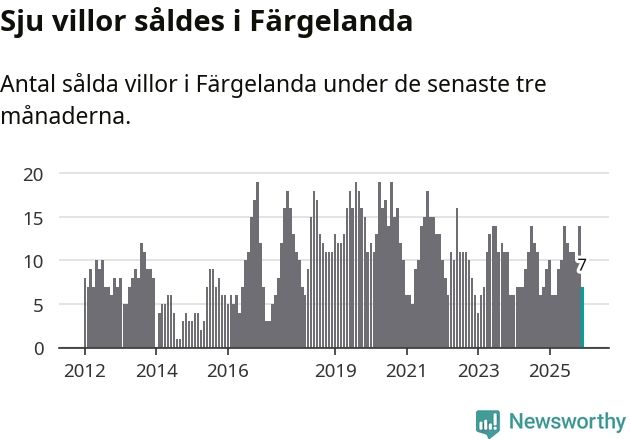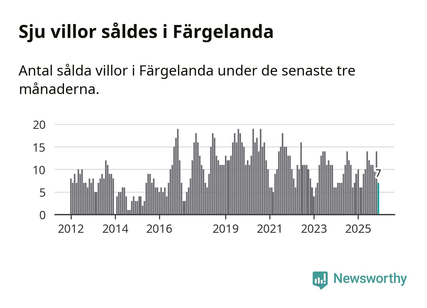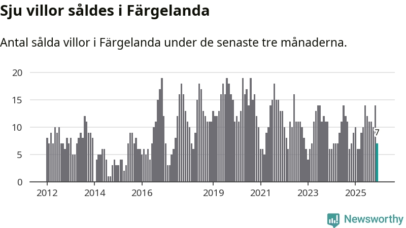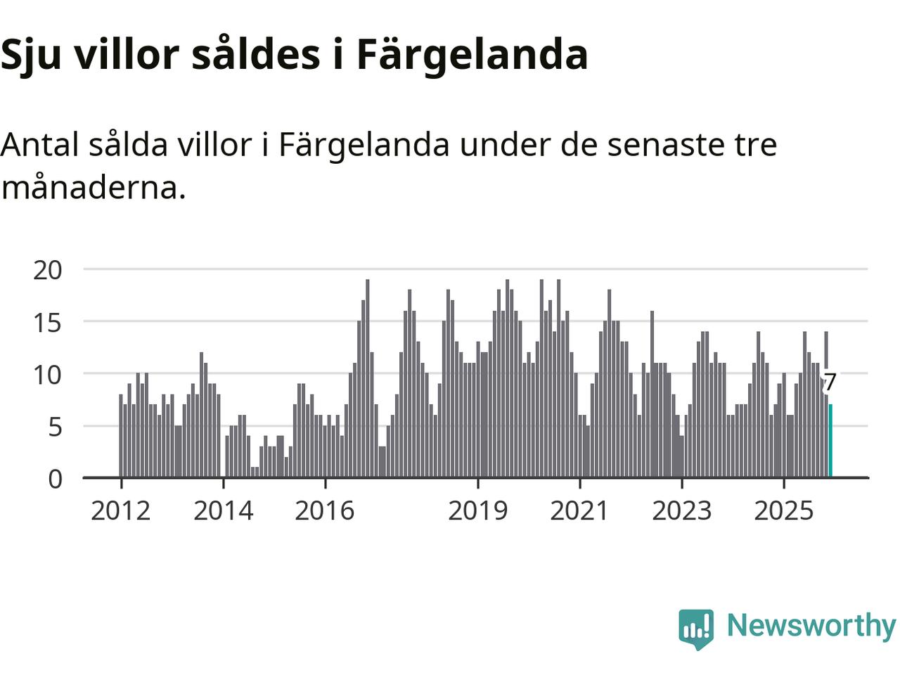 Mellan oktober och december gjordes sammanlagt sju affärer med villor i Färgelanda kommun. Det kan jämföras med nio vid motsvarande tid i fjol.