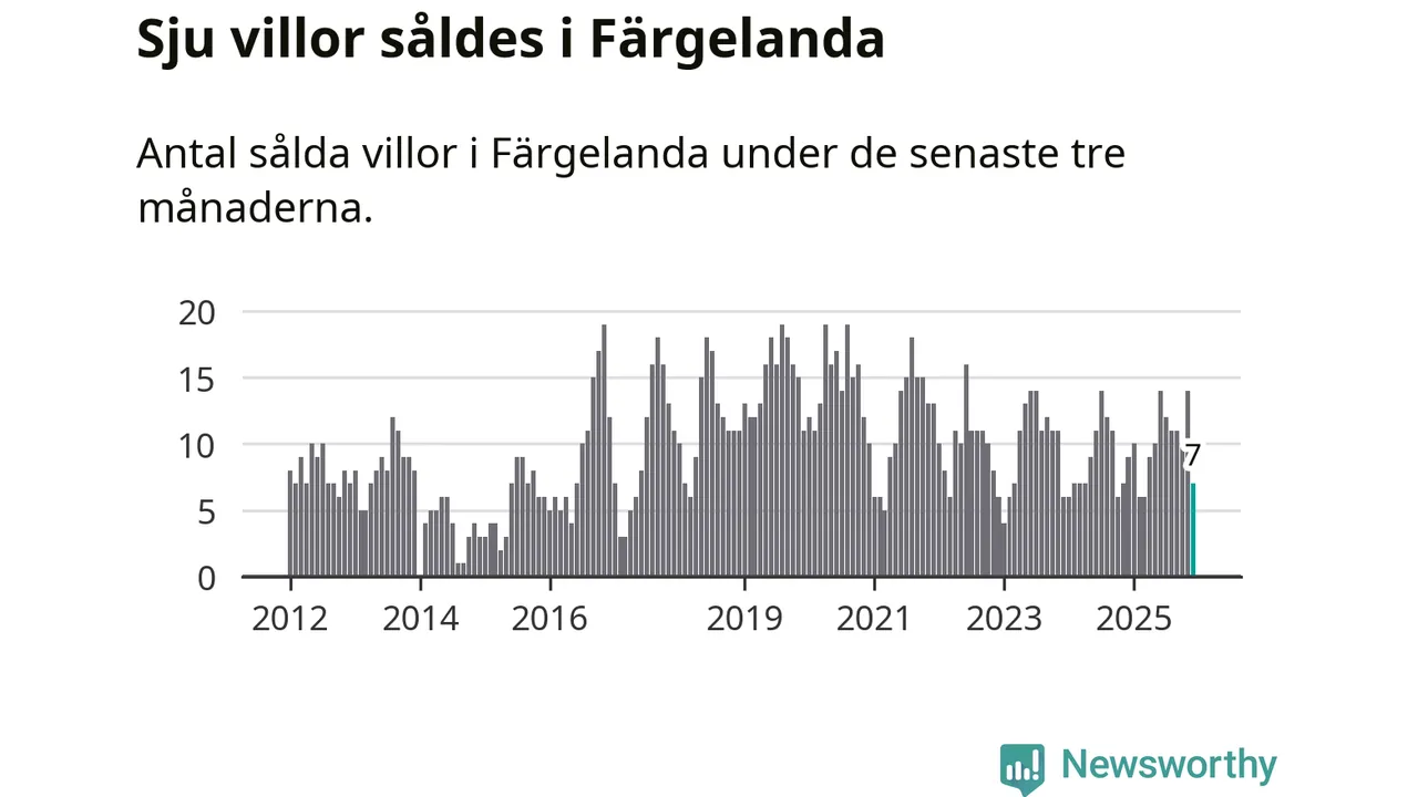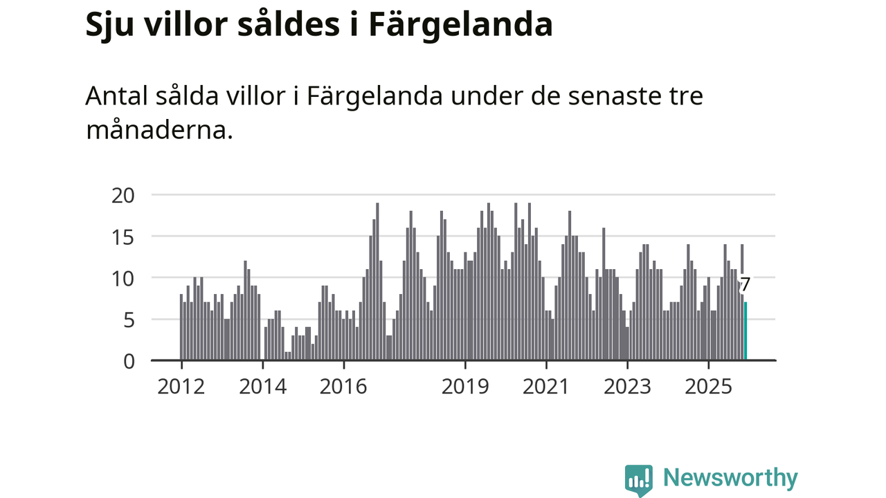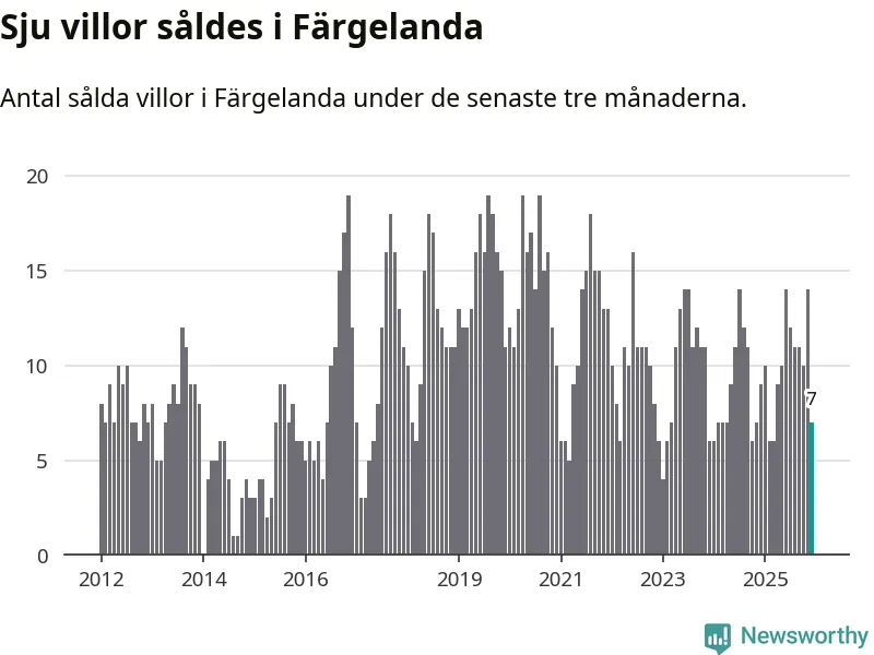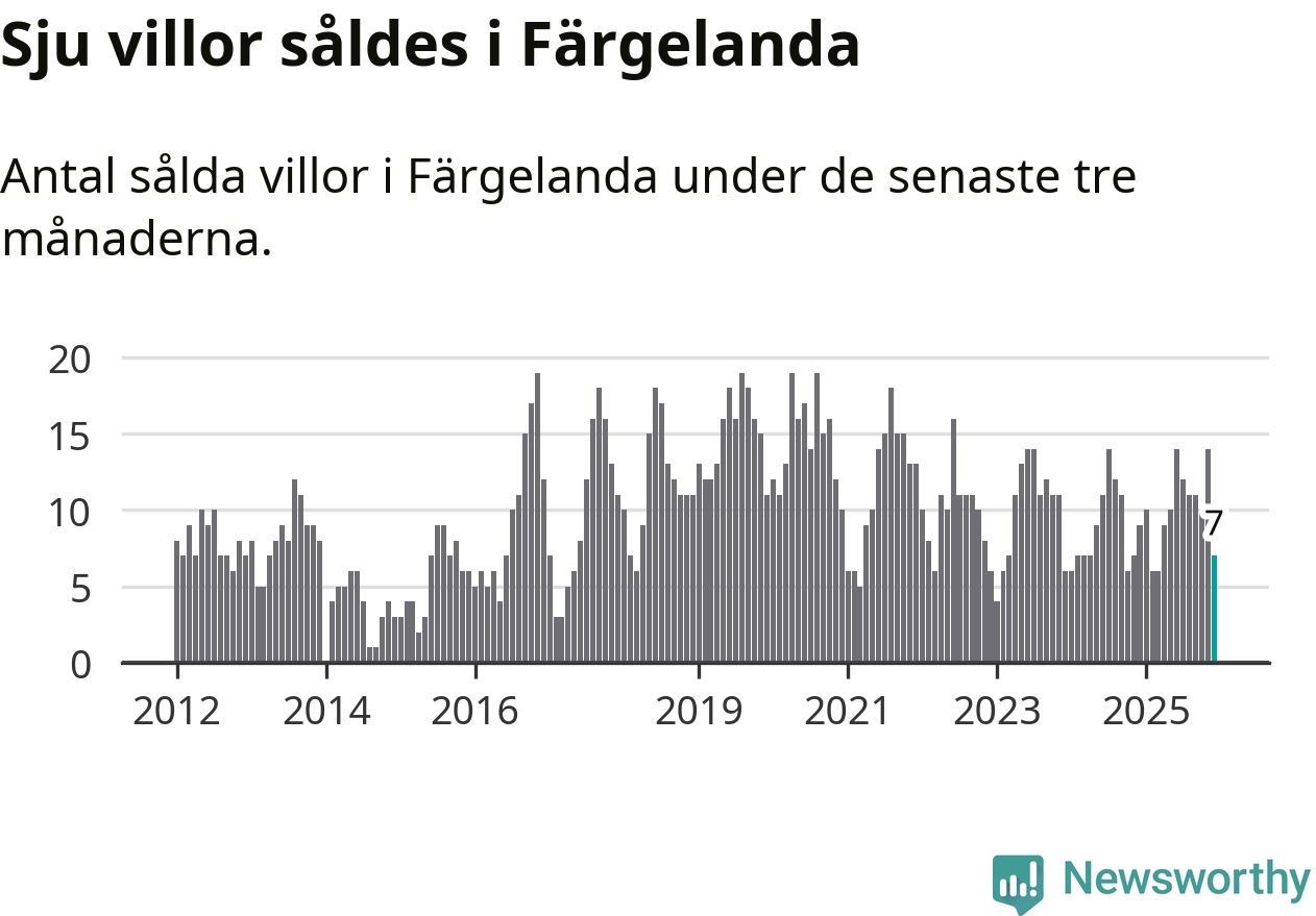 Mellan oktober och december gjordes sammanlagt sju affärer med villor i Färgelanda kommun. Det kan jämföras med nio vid motsvarande tid i fjol.