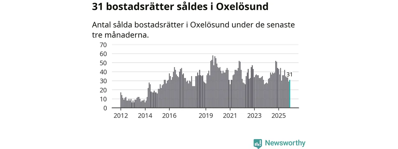 Sammanlagt såldes 31 bostadsrätter i Oxelösunds kommun mellan oktober och december till ett genomsnittligt pris på 0,5 miljoner kronor. I fjol gjordes 44 affärer vid den här tiden på året.