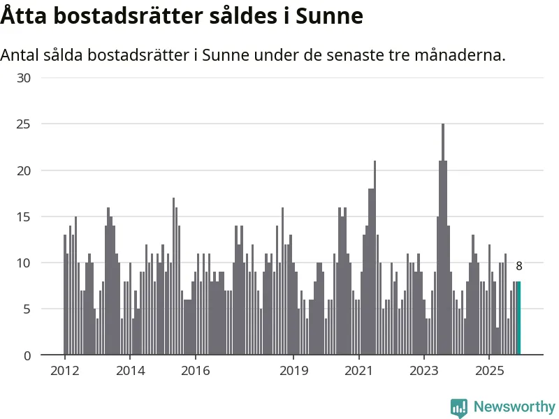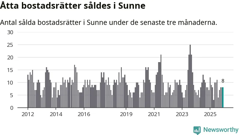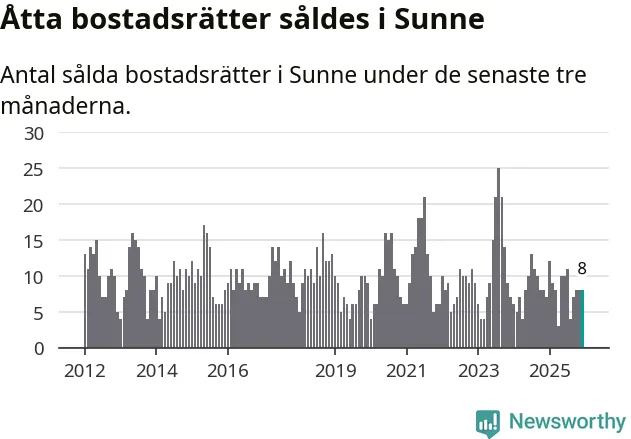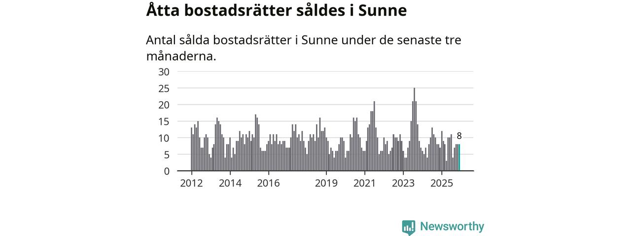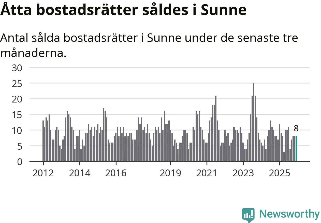 Mellan oktober och december gjordes sammanlagt åtta affärer med bostadsrätter i Sunne kommun. Det kan jämföras med sju vid motsvarande tid i fjol.