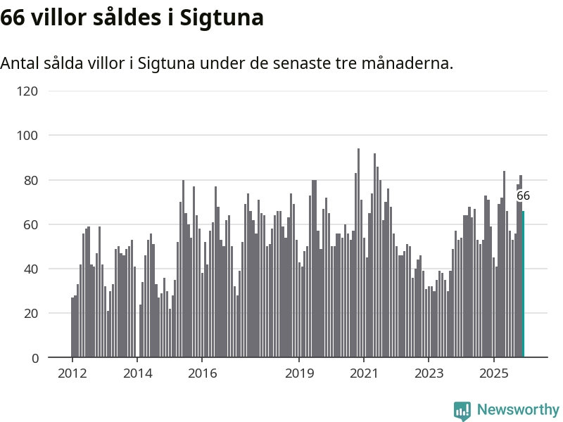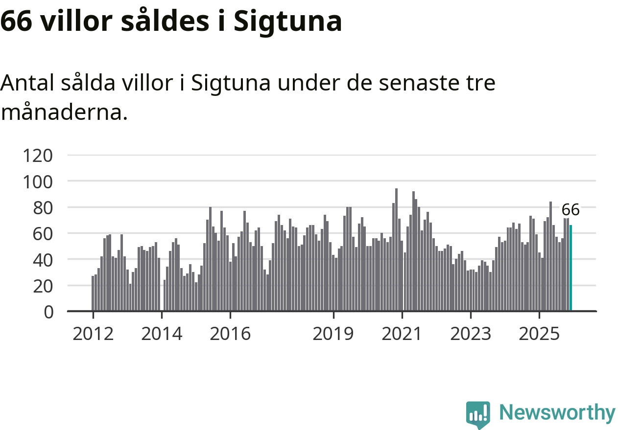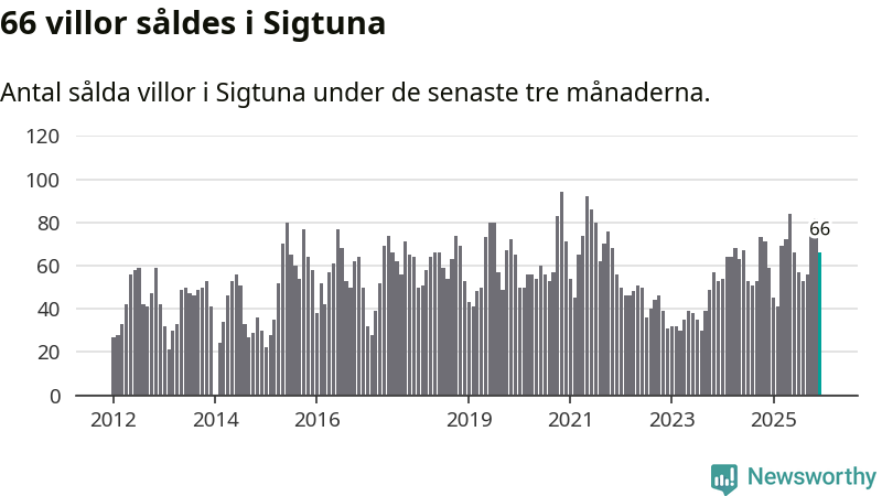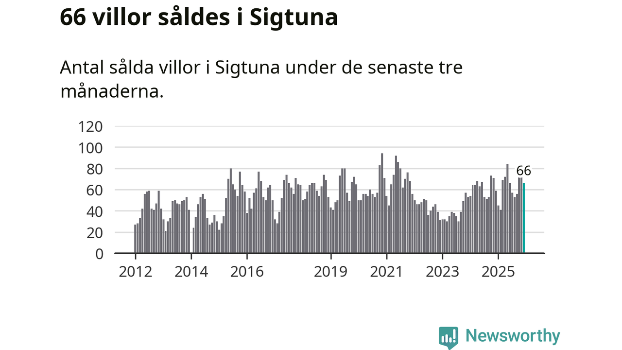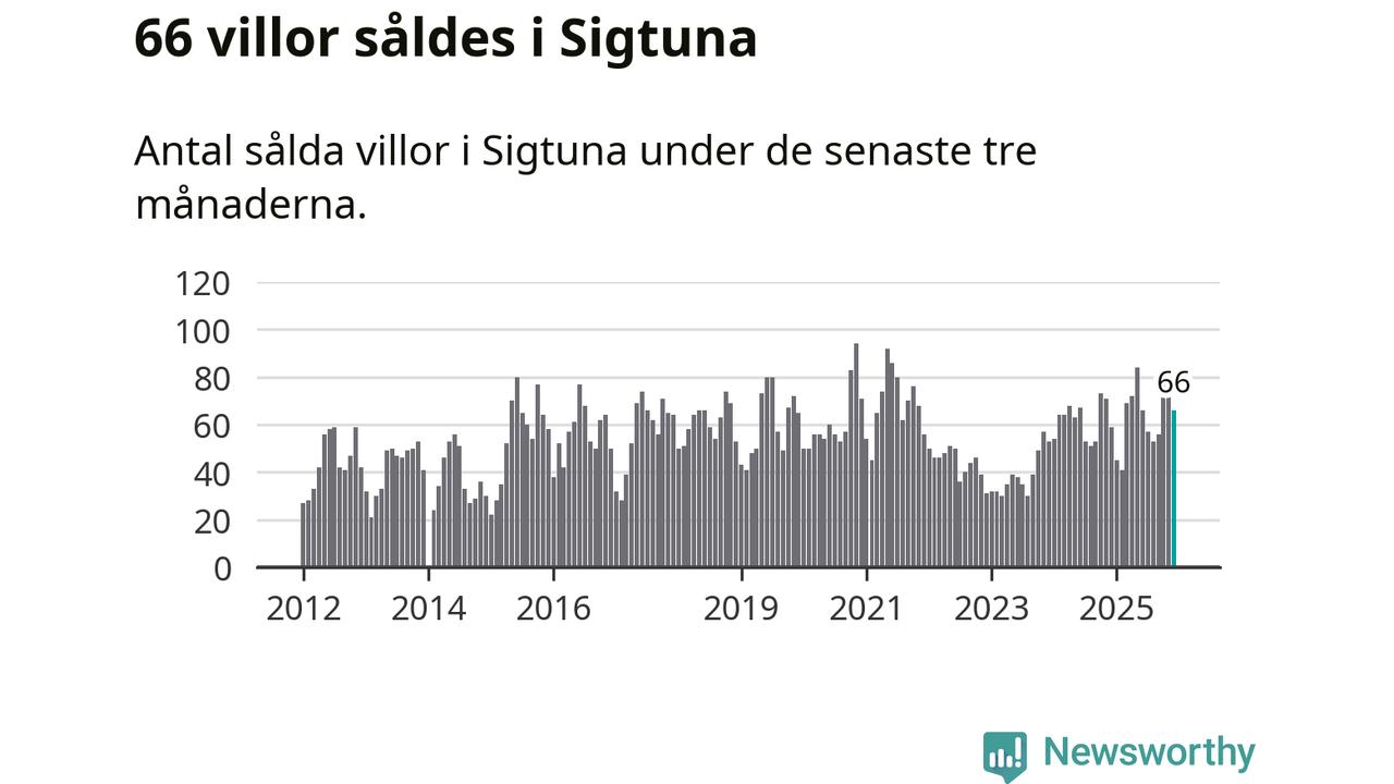Sammanlagt såldes 66 villor i Sigtuna kommun mellan oktober och december till ett genomsnittligt pris på 5,3 miljoner kronor. I fjol gjordes 59 affärer vid den här tiden på året.