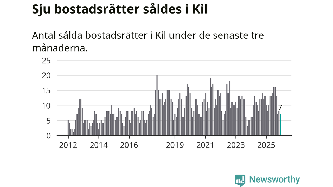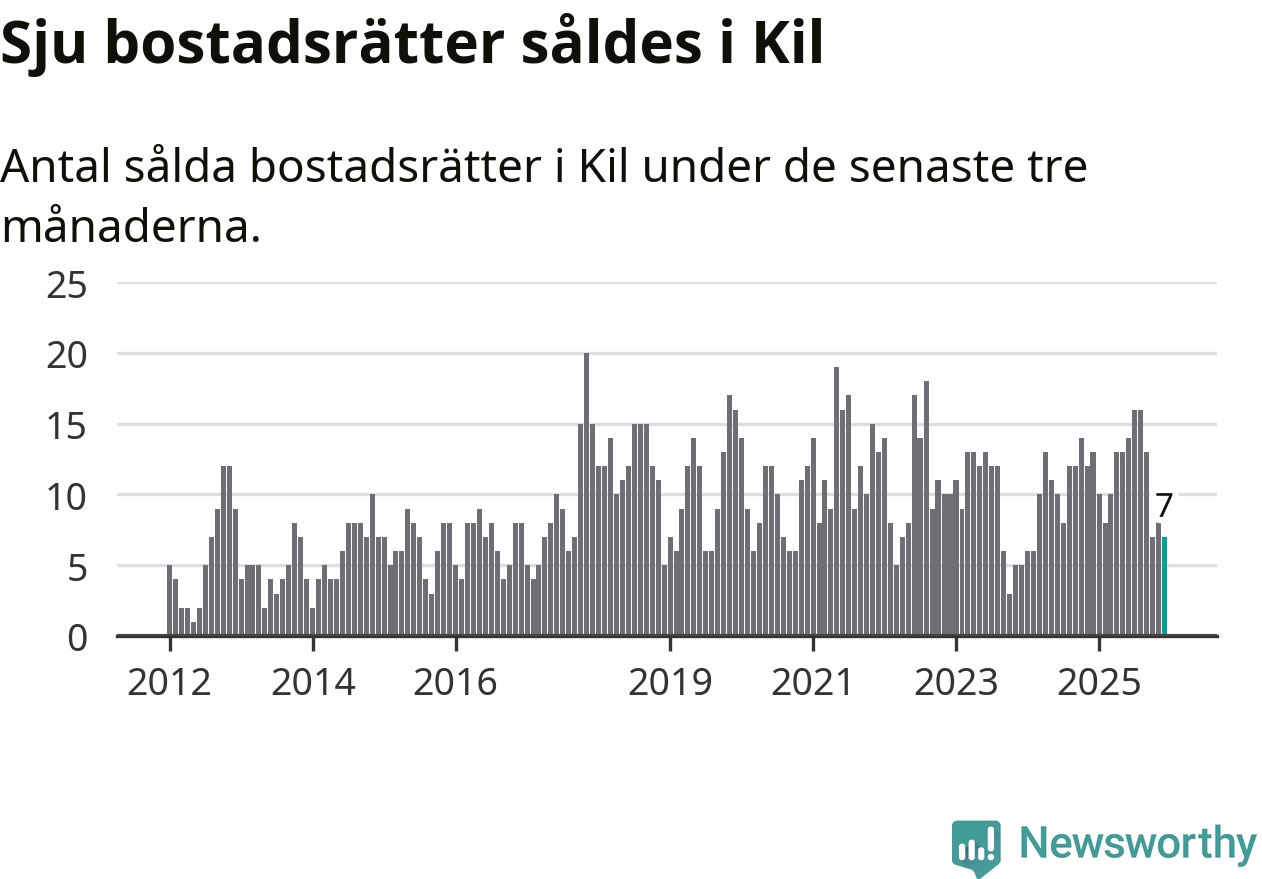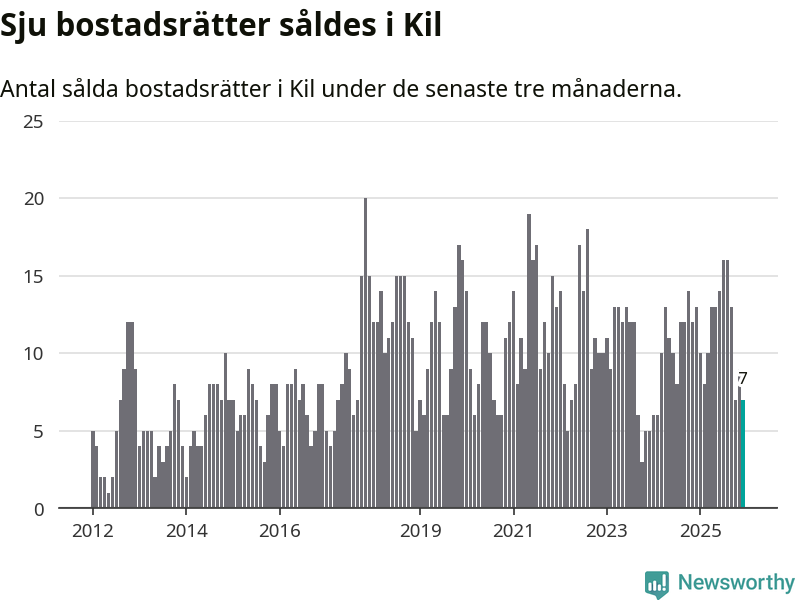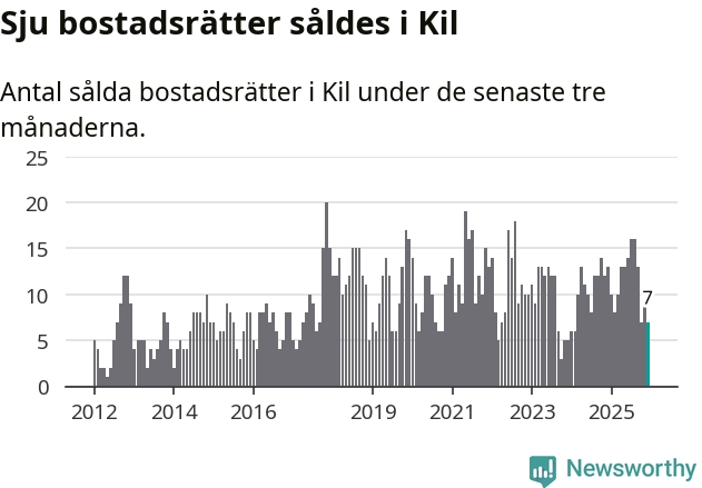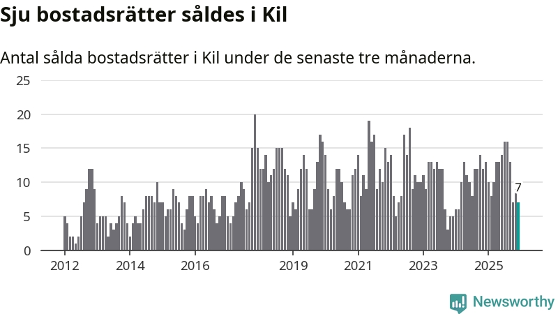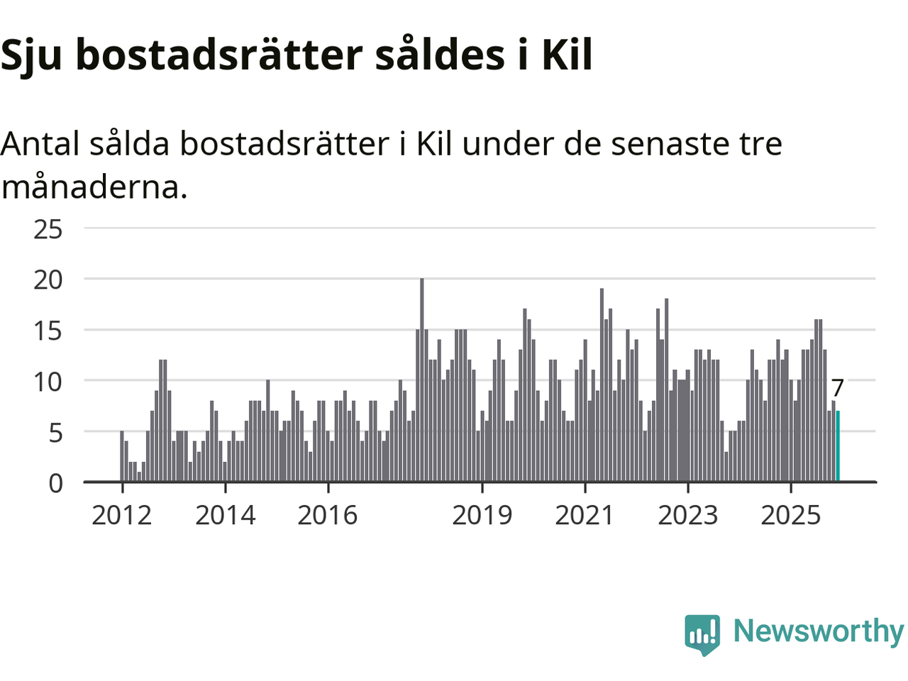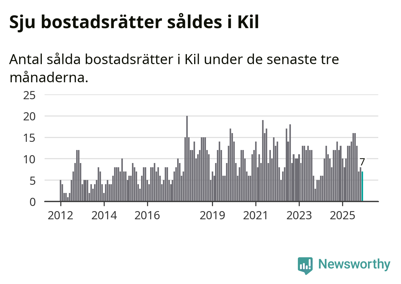 Mellan oktober och december gjordes sammanlagt sju affärer med bostadsrätter i Kils kommun. Det kan jämföras med 13 vid motsvarande tid i fjol.