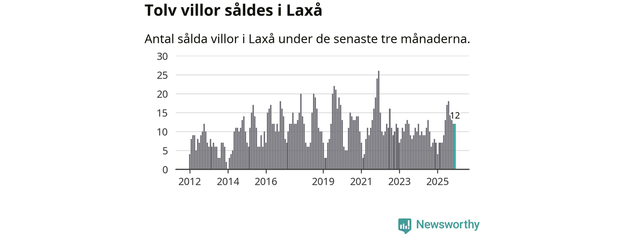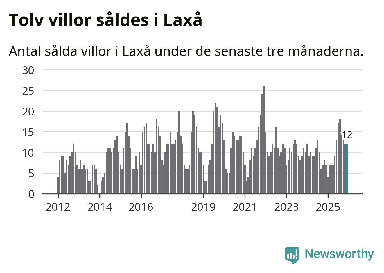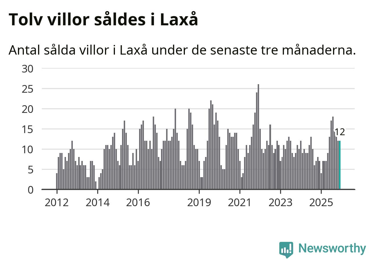 Mellan oktober och december gjordes sammanlagt tolv affärer med villor i Laxå kommun. Det kan jämföras med sju vid motsvarande tid i fjol.