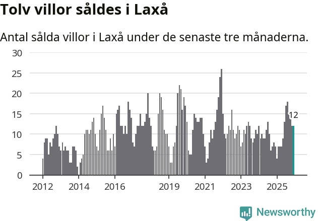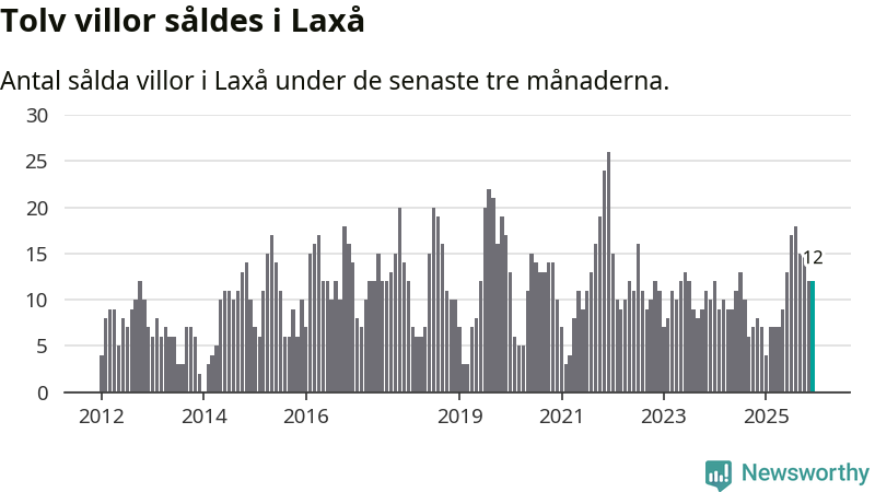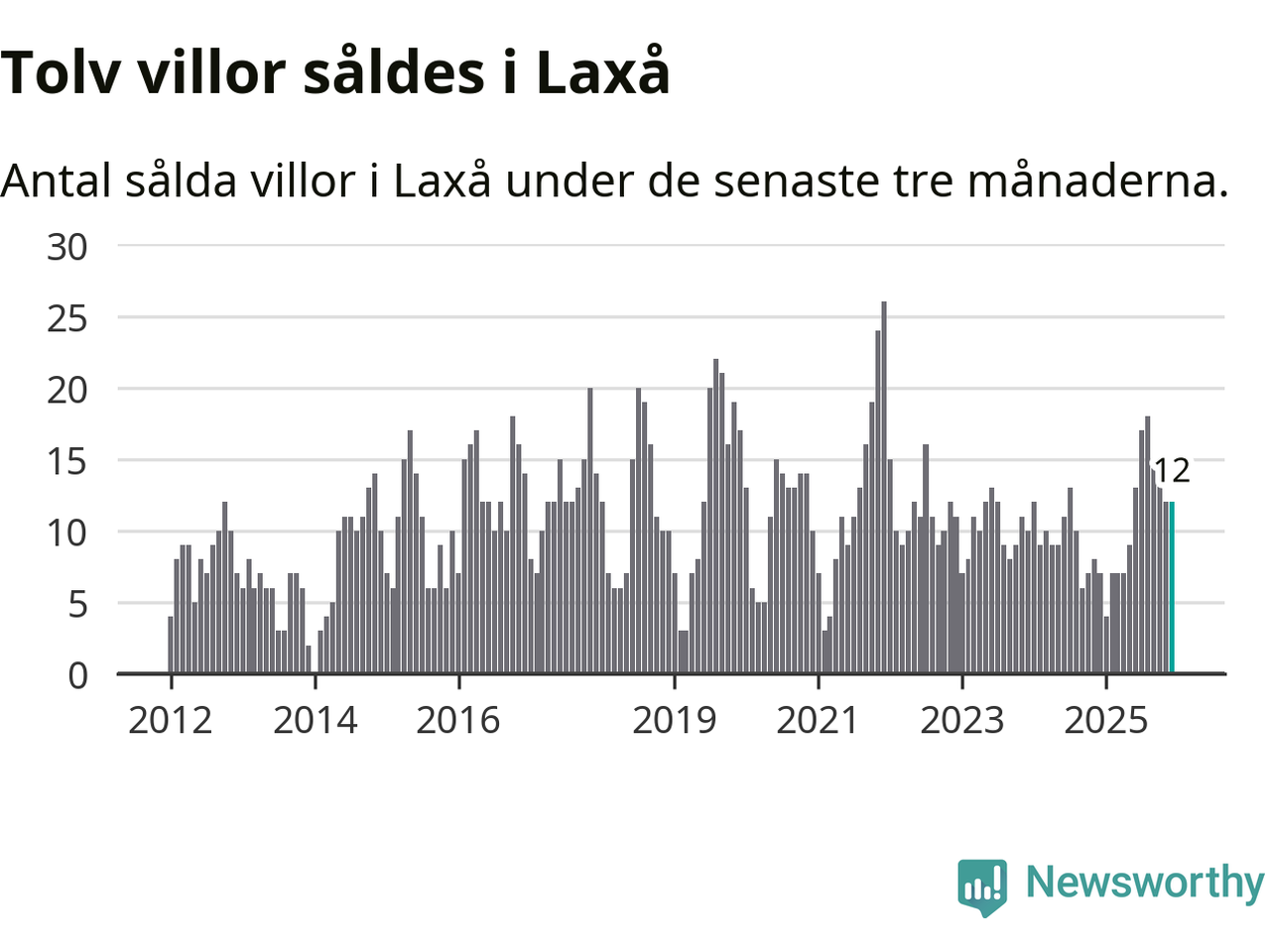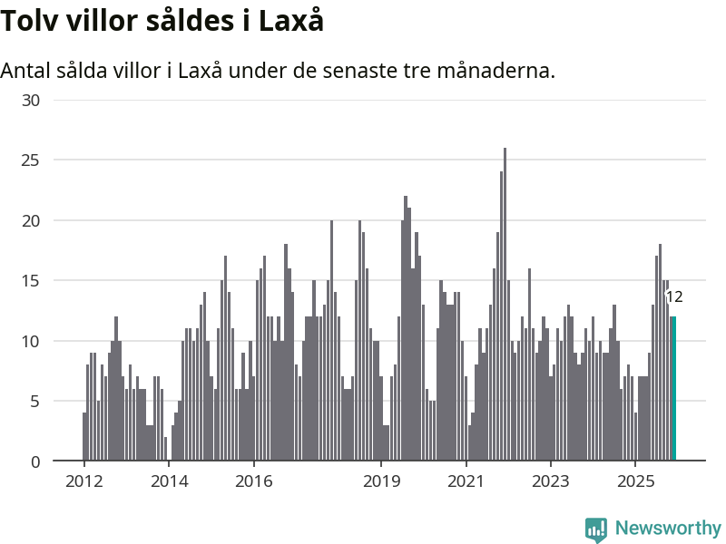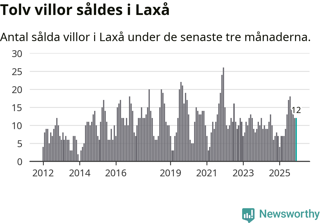Mellan oktober och december gjordes sammanlagt tolv affärer med villor i Laxå kommun. Det kan jämföras med sju vid motsvarande tid i fjol.