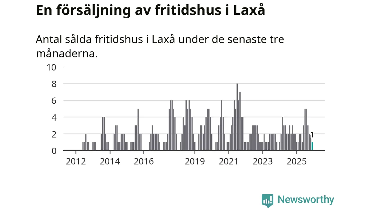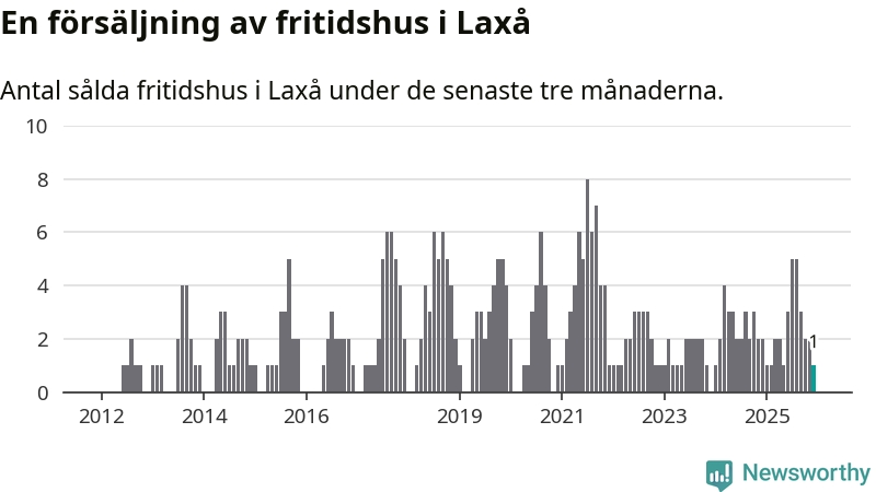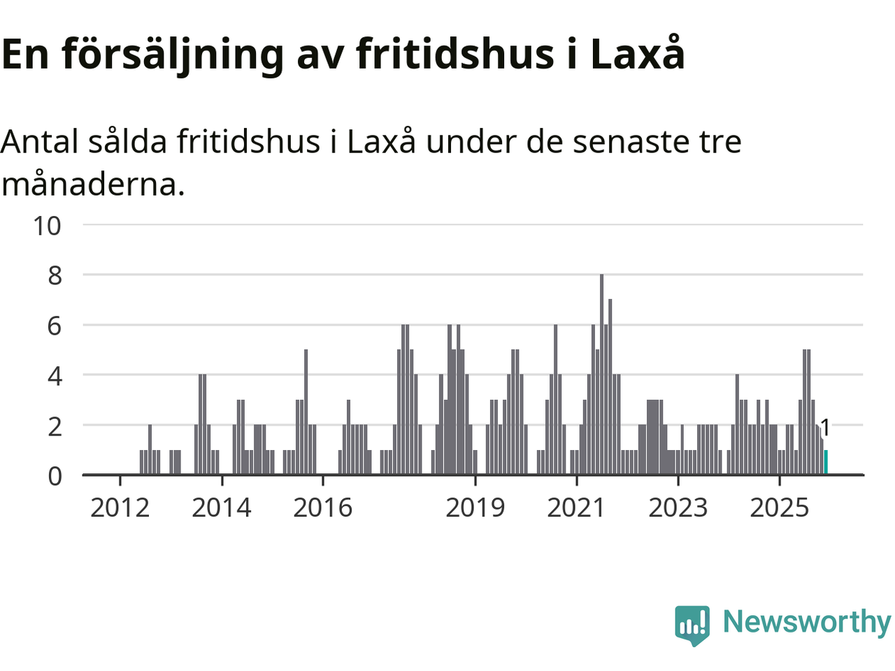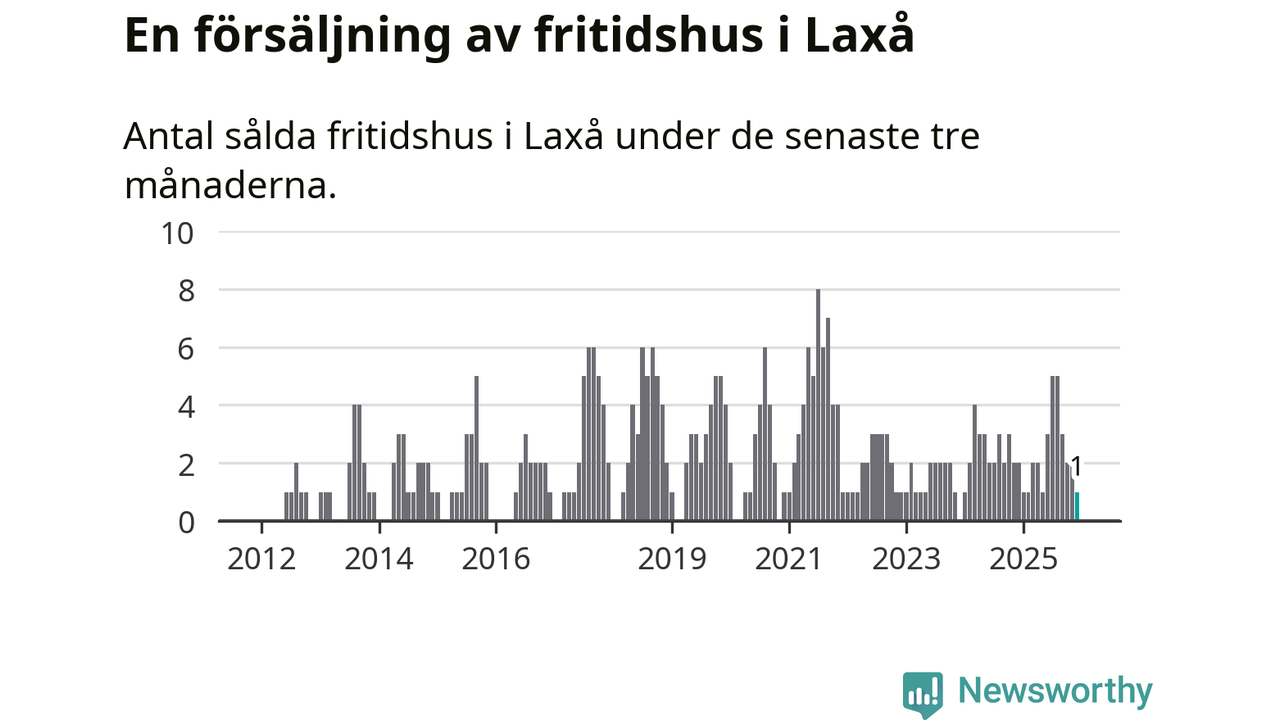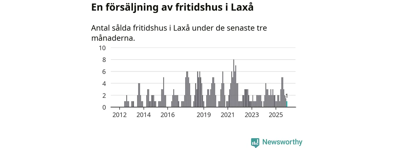 Mellan oktober och december gjordes sammanlagt en affär med fritidshus i Laxå kommun. Det kan jämföras med två vid motsvarande tid i fjol.
