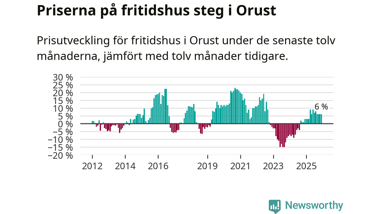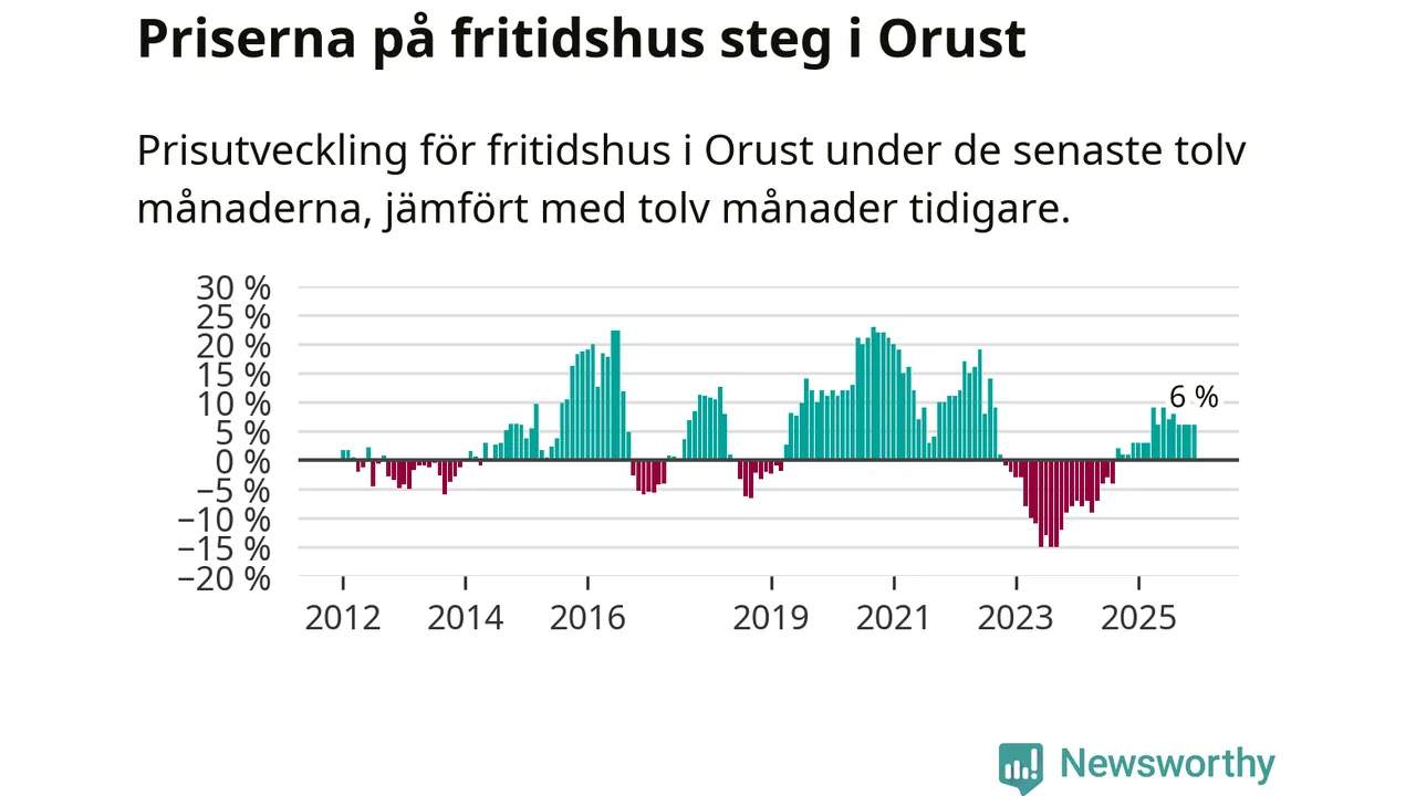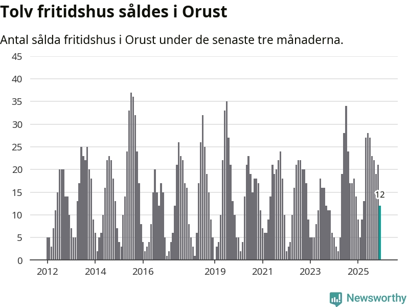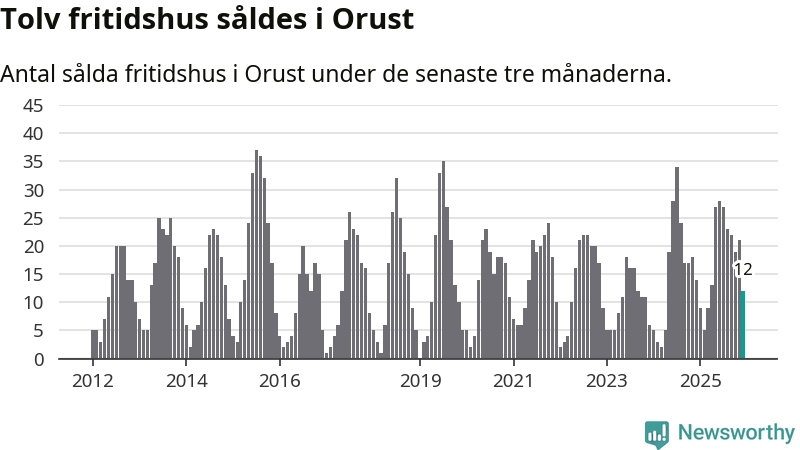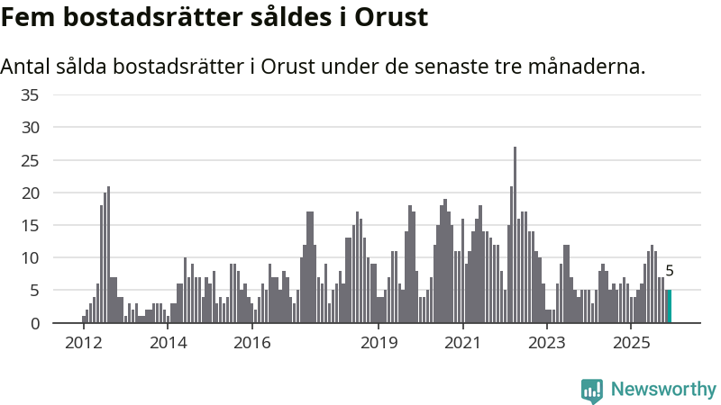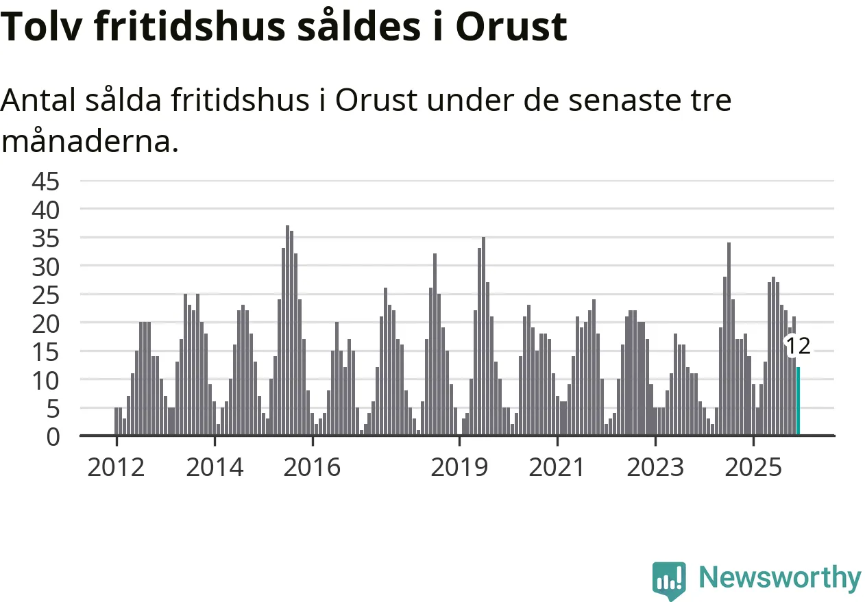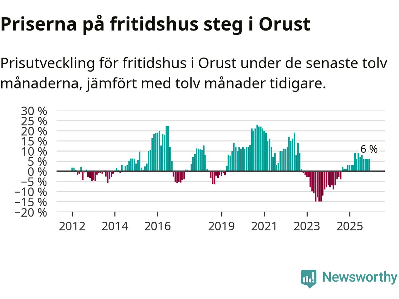 Sammanlagt såldes tolv fritidshus i Orusts kommun mellan oktober 2025 och december 2025 till ett genomsnittligt pris på 5,1 miljoner kronor. I fjol gjordes 14 affärer vid den här tiden på året.