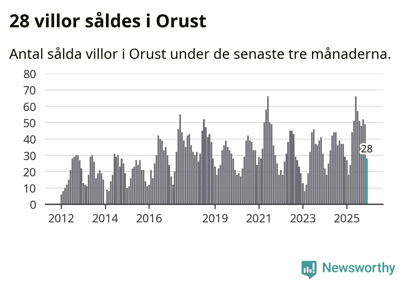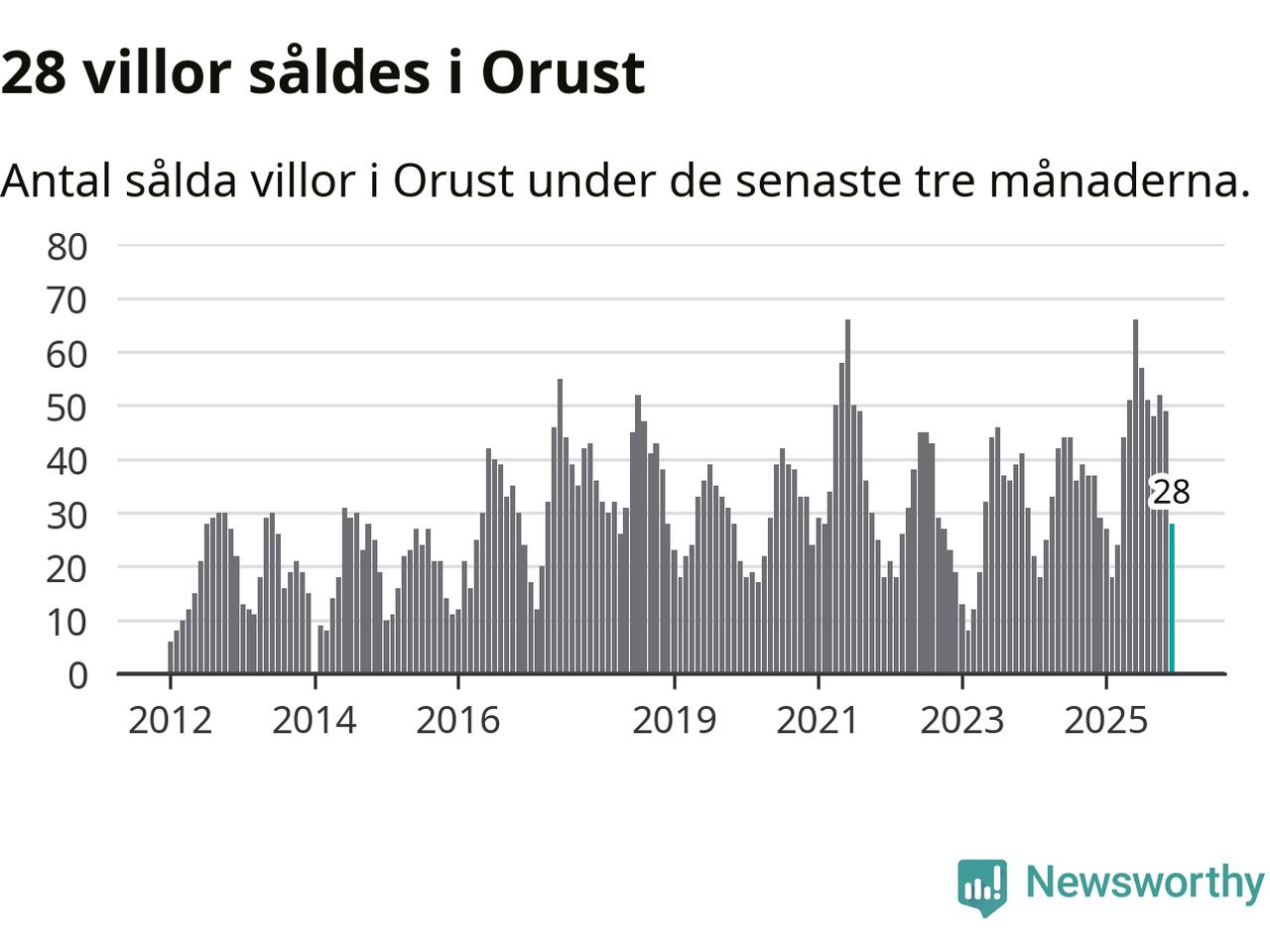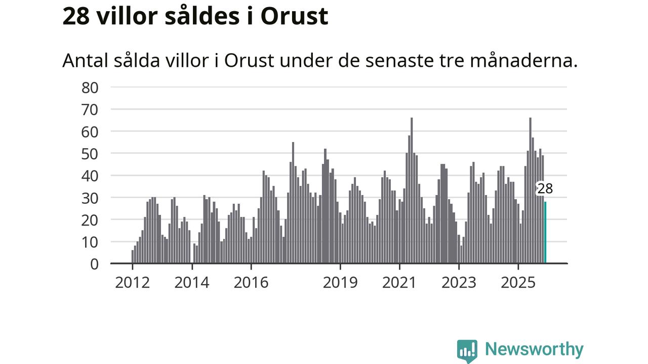Mellan oktober och december gjordes sammanlagt 28 affärer med villor i Orusts kommun. Det kan jämföras med 29 vid motsvarande tid i fjol.