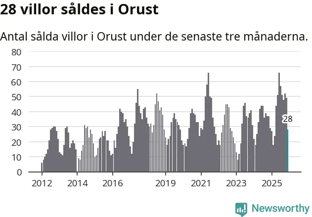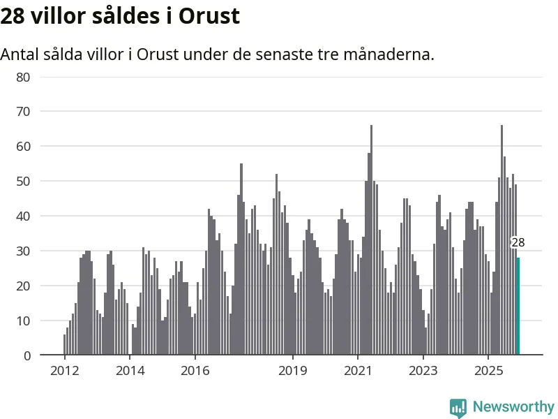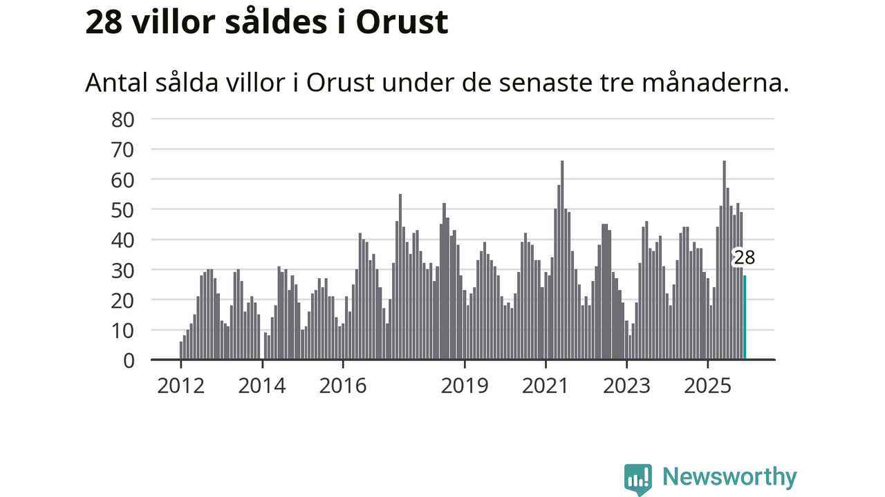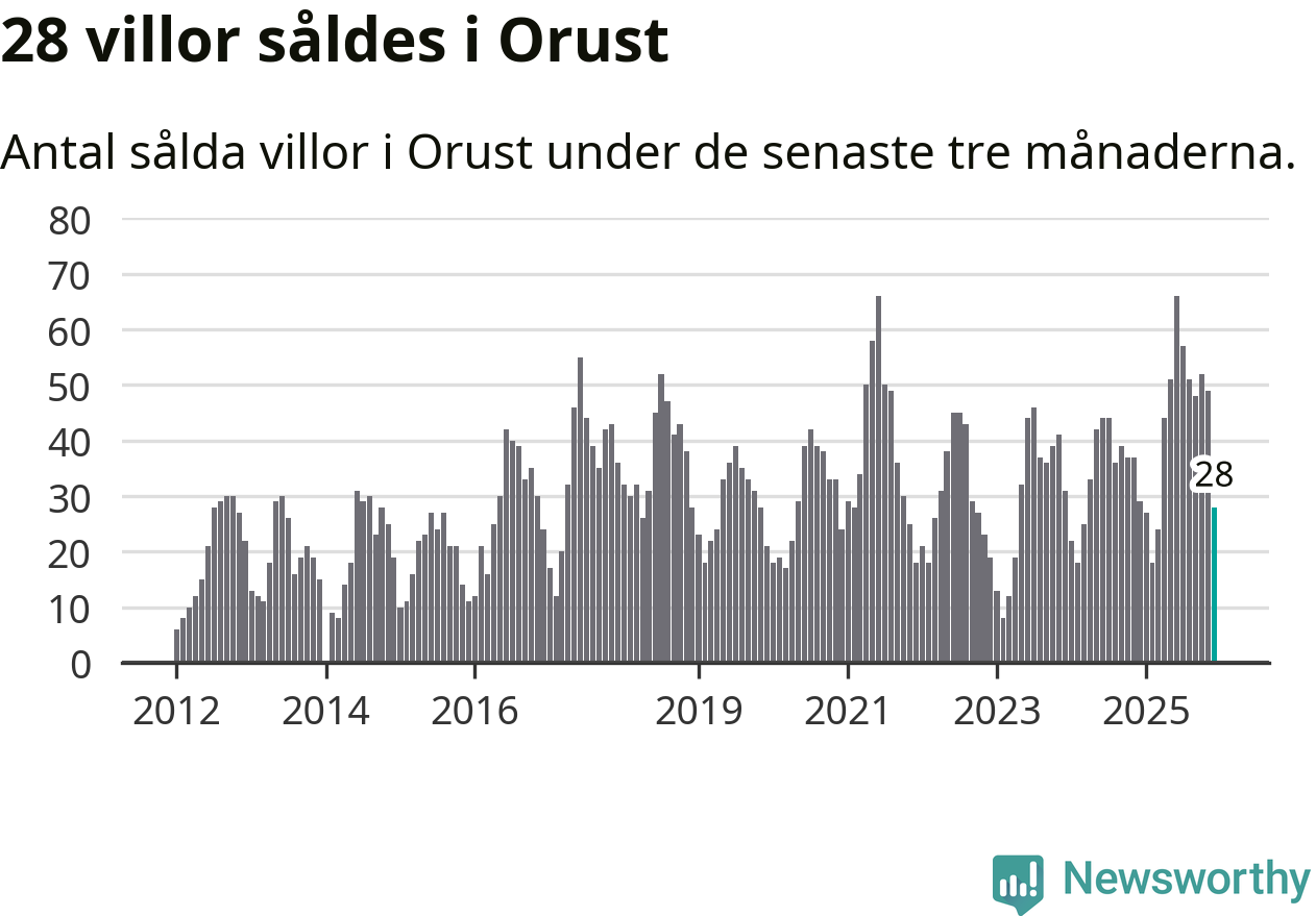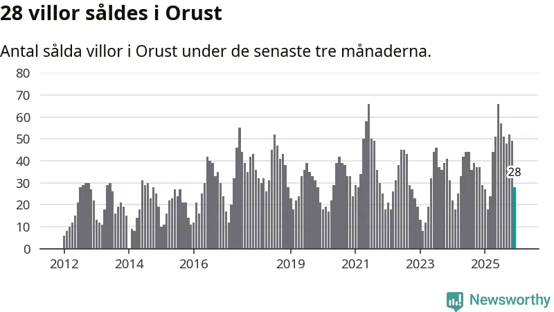 Mellan oktober och december gjordes sammanlagt 28 affärer med villor i Orusts kommun. Det kan jämföras med 29 vid motsvarande tid i fjol.