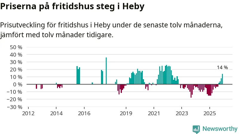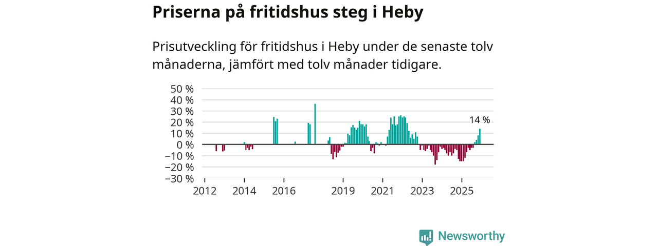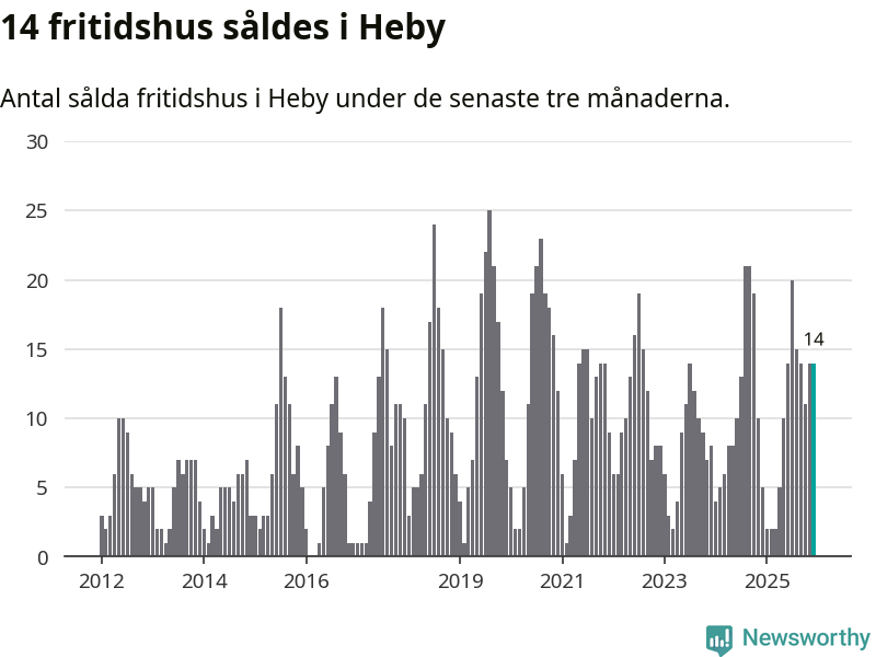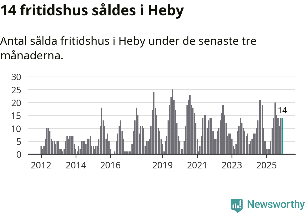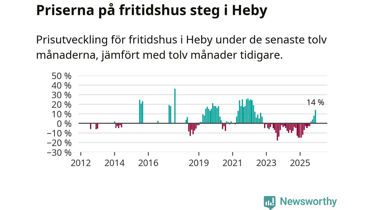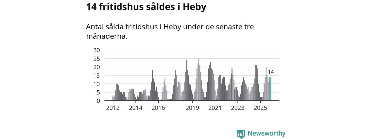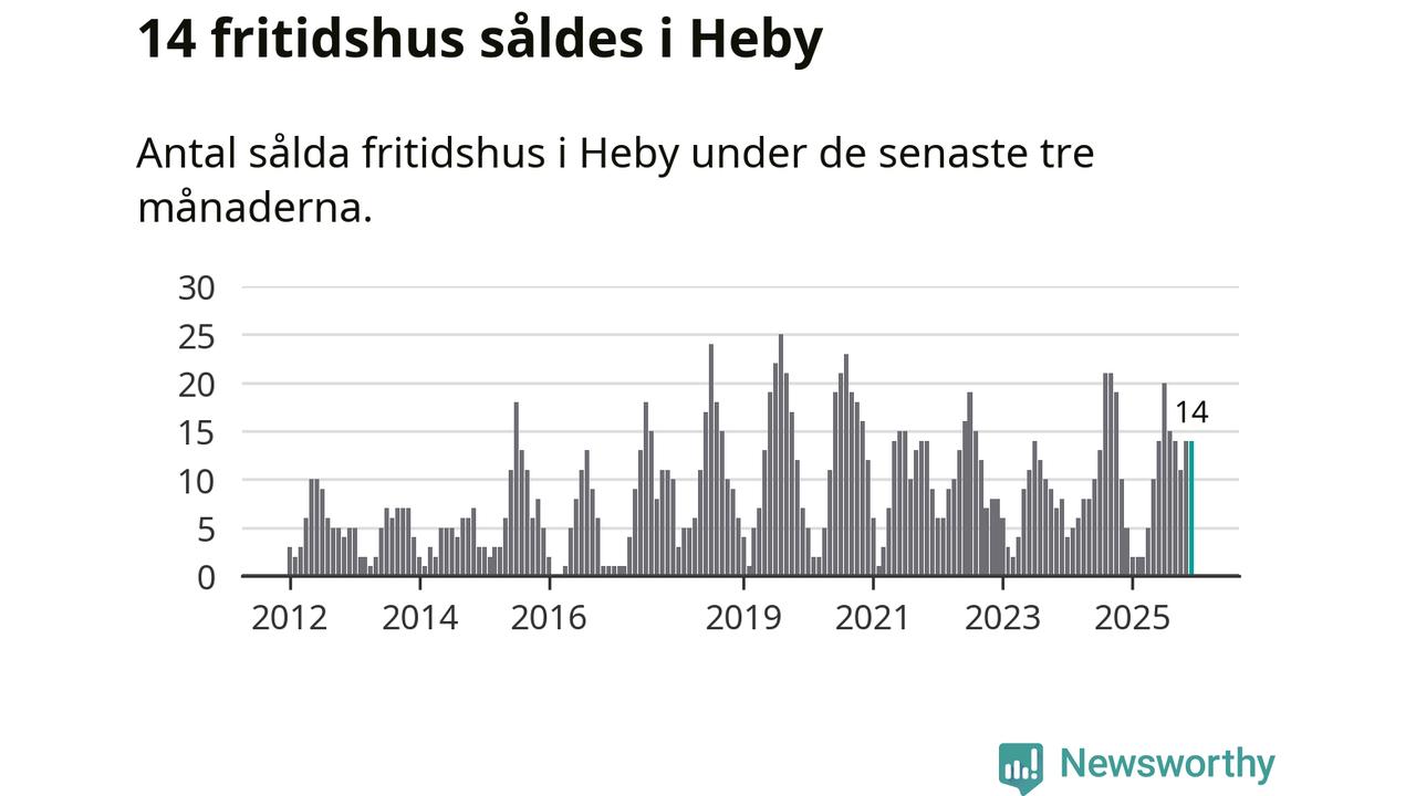 Sammanlagt såldes 14 fritidshus i Heby kommun mellan oktober 2025 och december 2025 till ett genomsnittligt pris på 1,4 miljoner kronor. I fjol gjordes fem affärer vid den här tiden på året.
