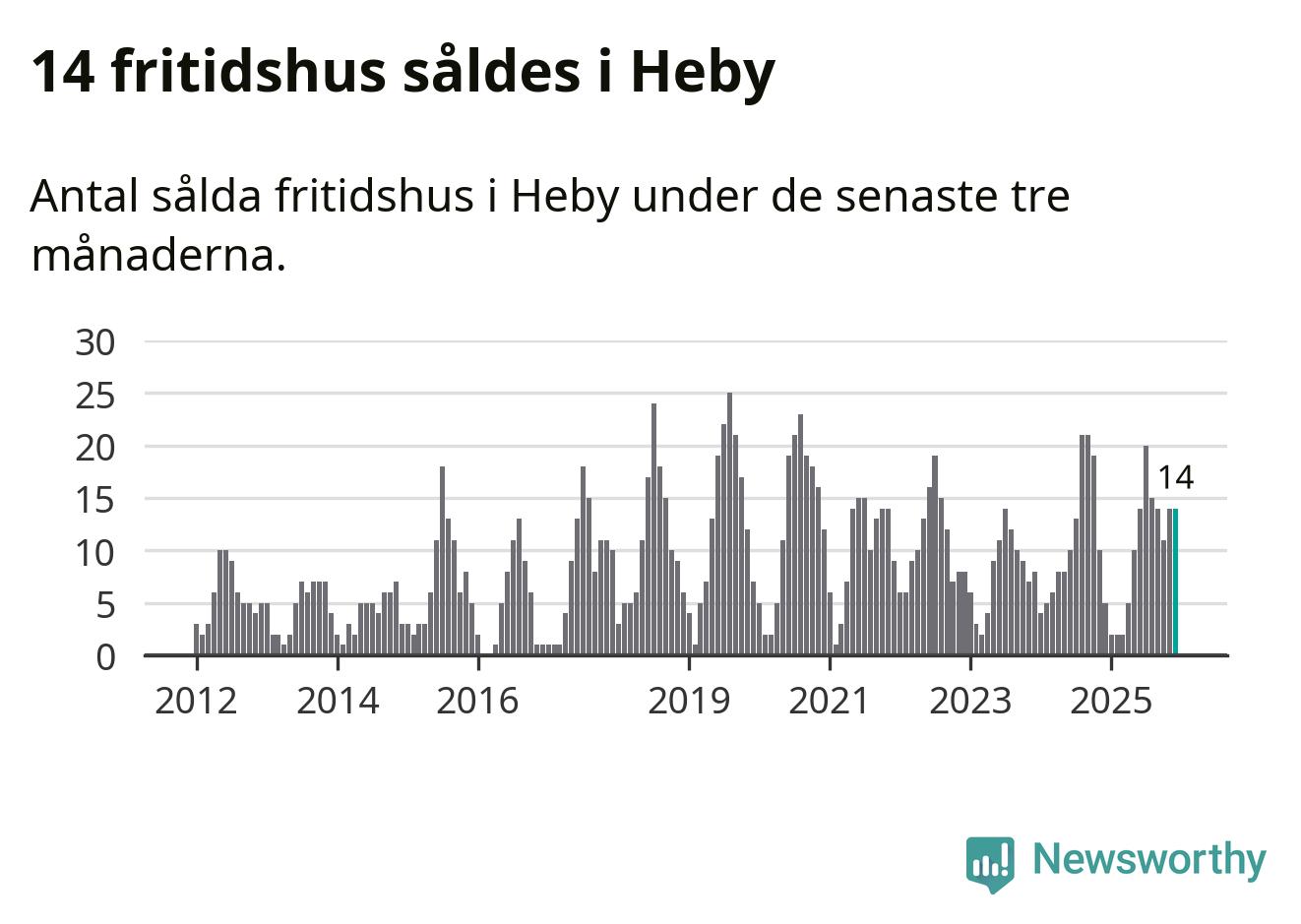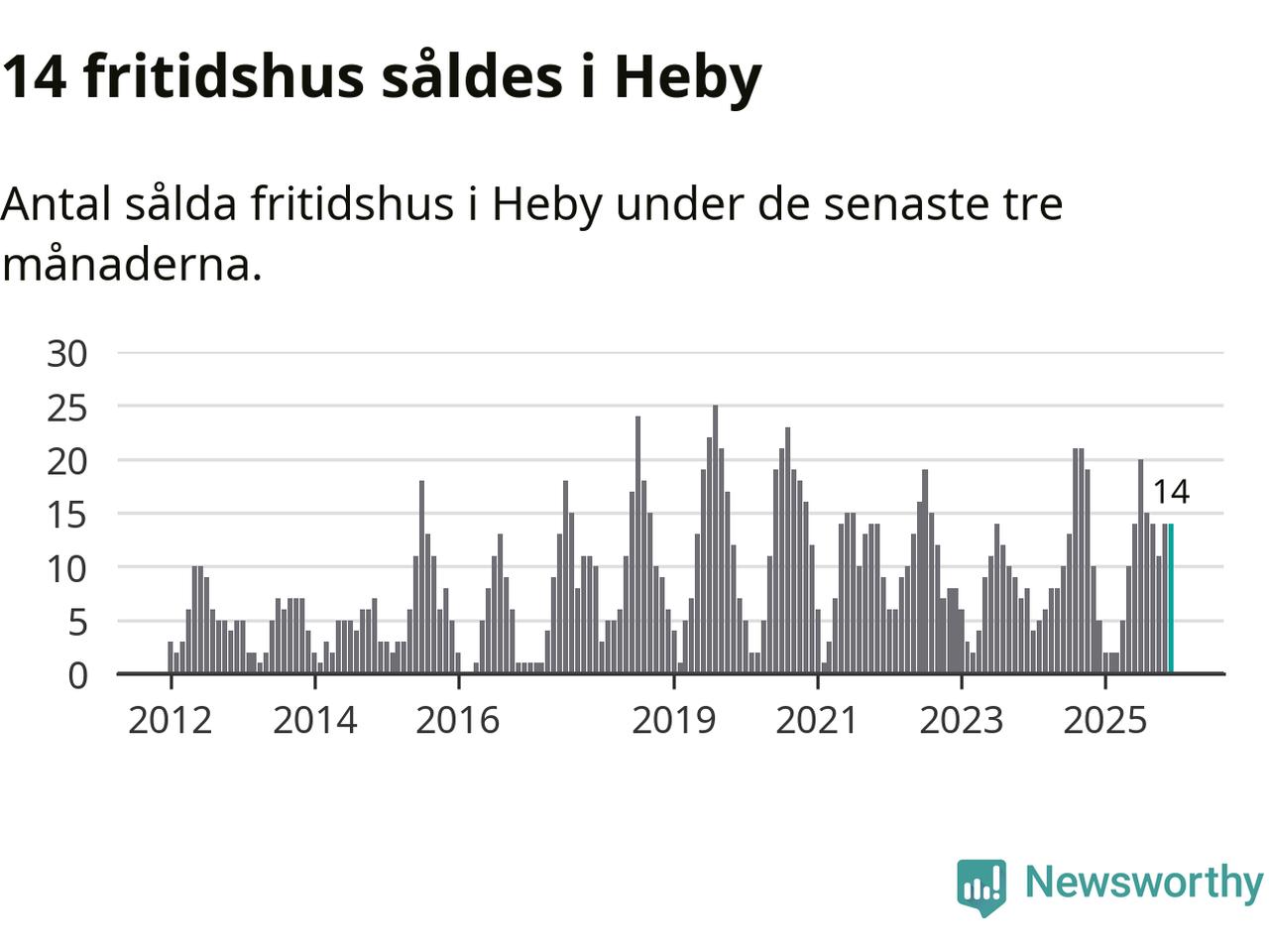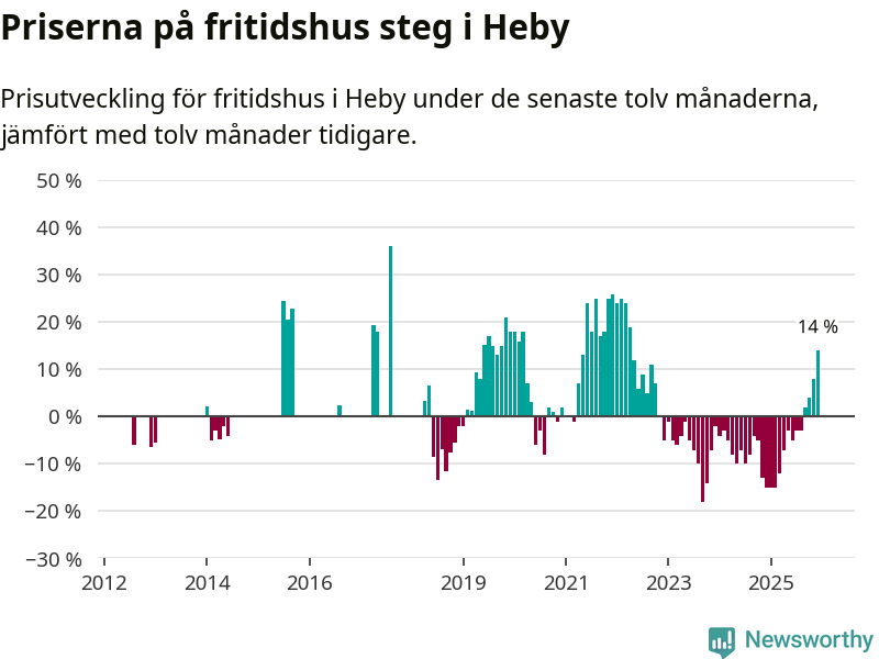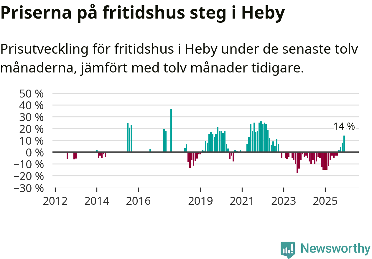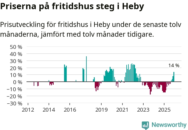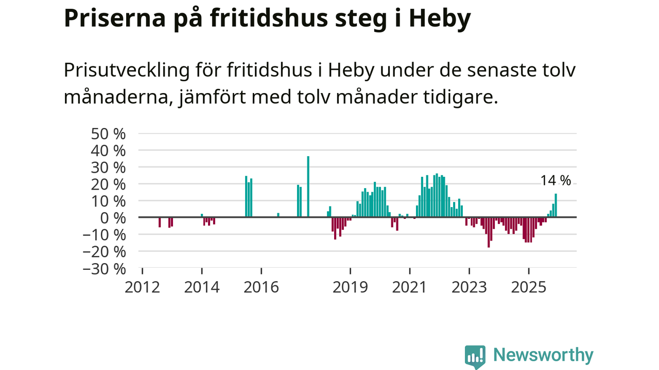 Sammanlagt såldes 14 fritidshus i Heby kommun mellan oktober 2025 och december 2025 till ett genomsnittligt pris på 1,4 miljoner kronor. I fjol gjordes fem affärer vid den här tiden på året.