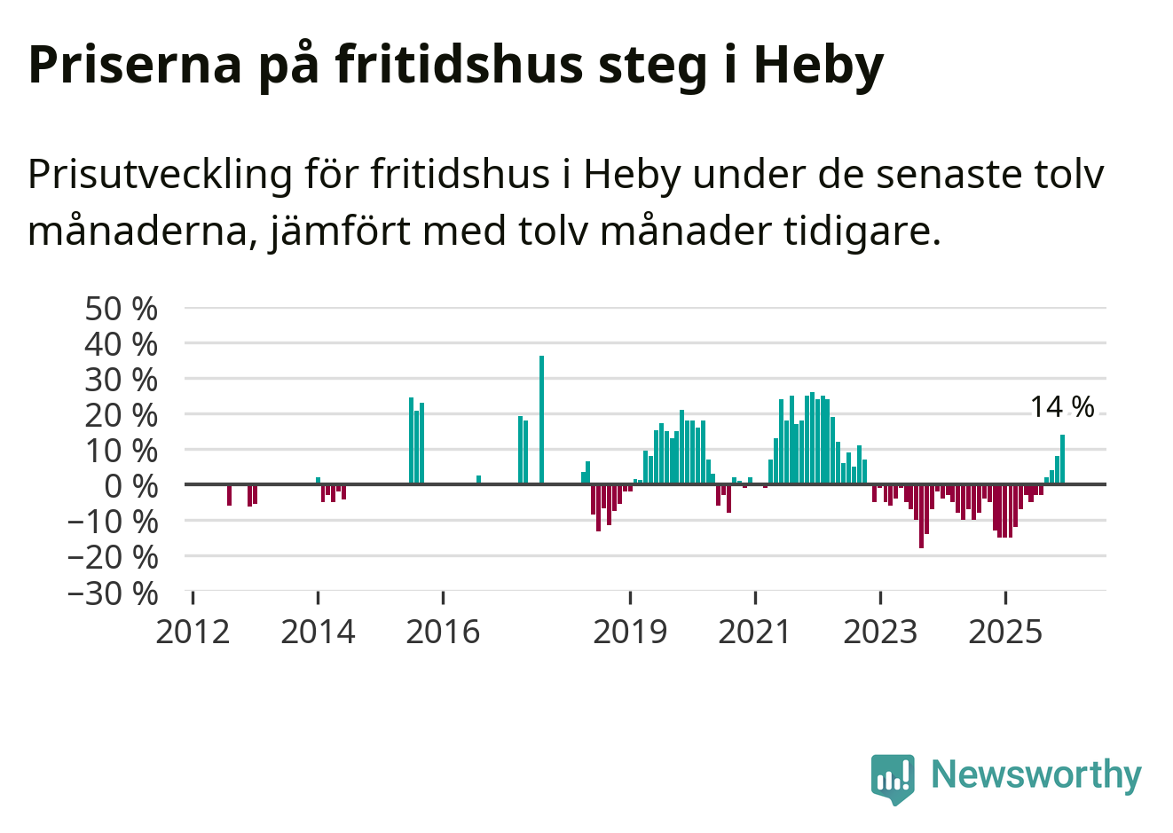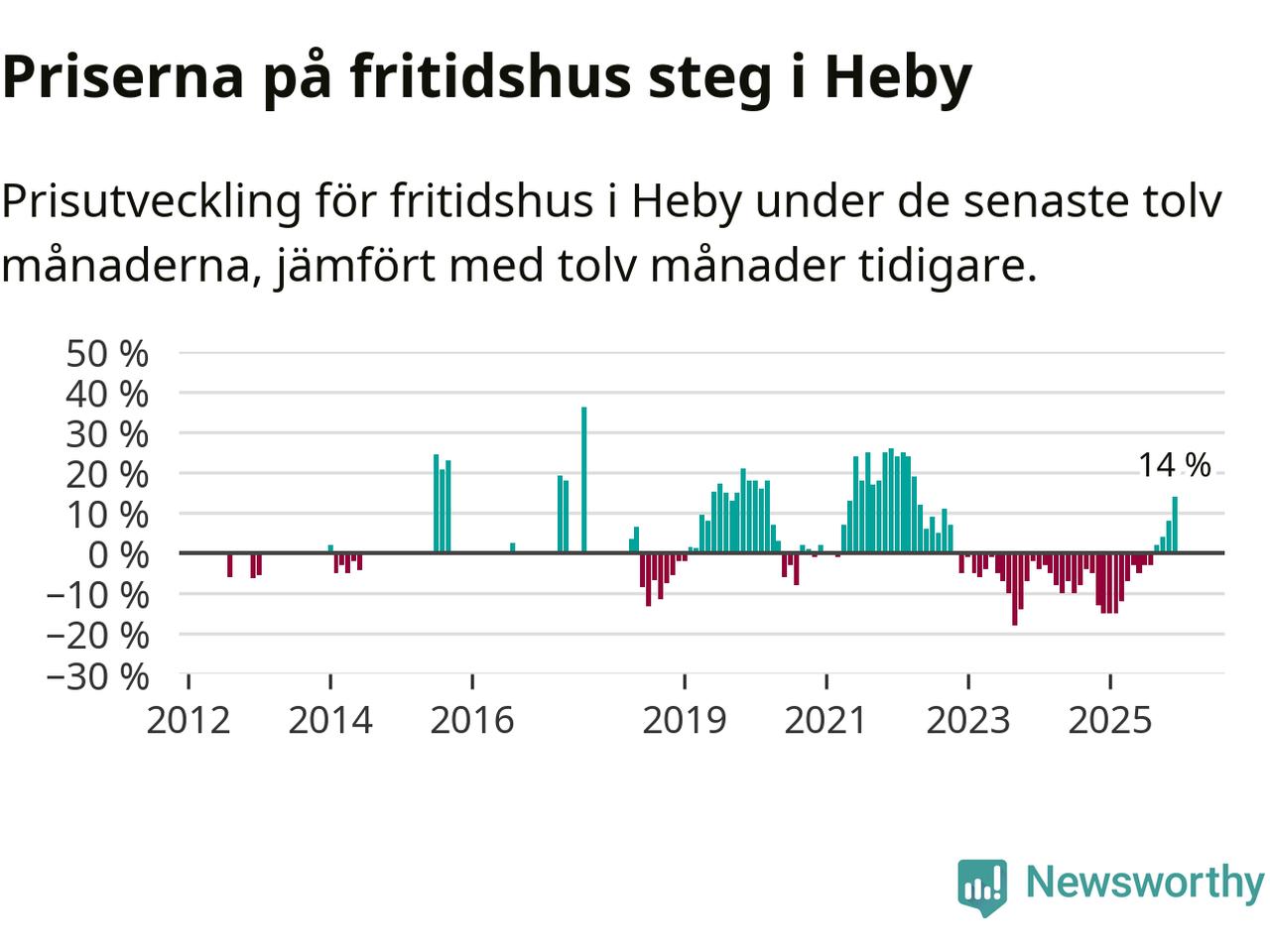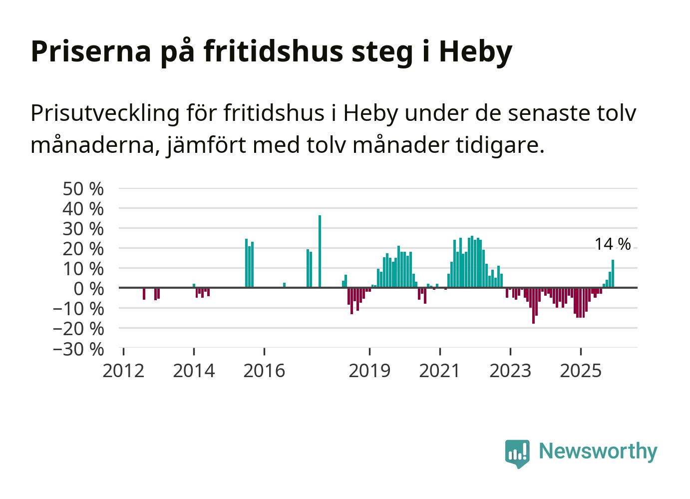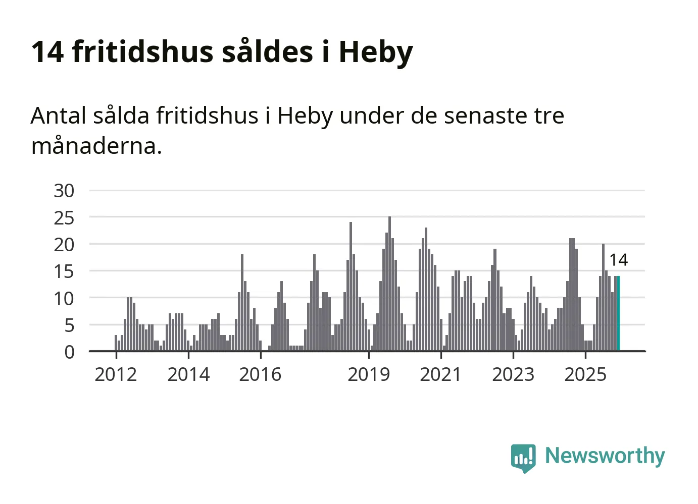 Sammanlagt såldes 14 fritidshus i Heby kommun mellan oktober 2025 och december 2025 till ett genomsnittligt pris på 1,4 miljoner kronor. I fjol gjordes fem affärer vid den här tiden på året.