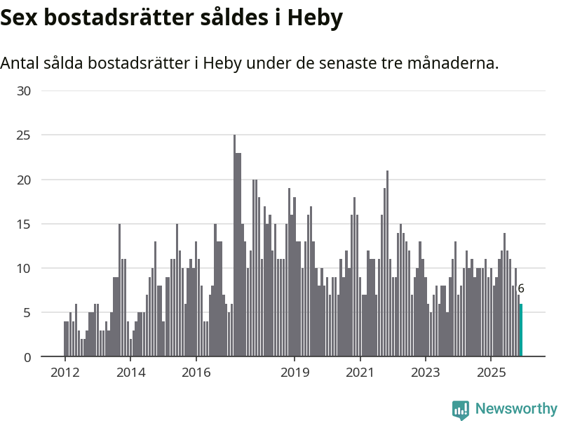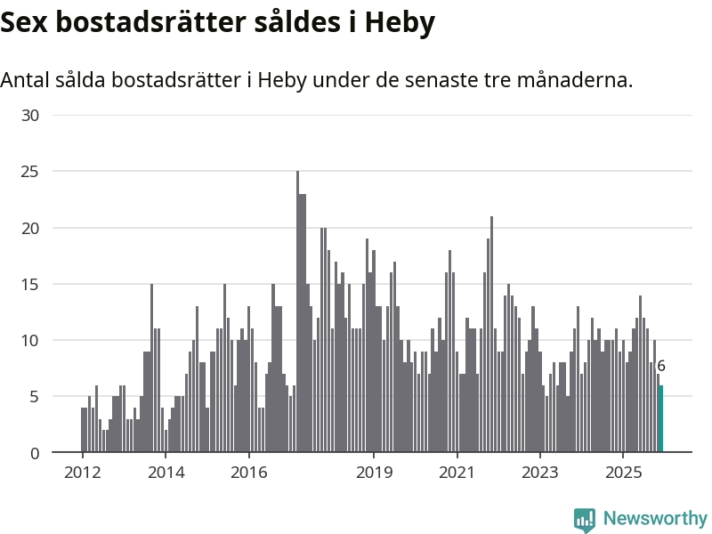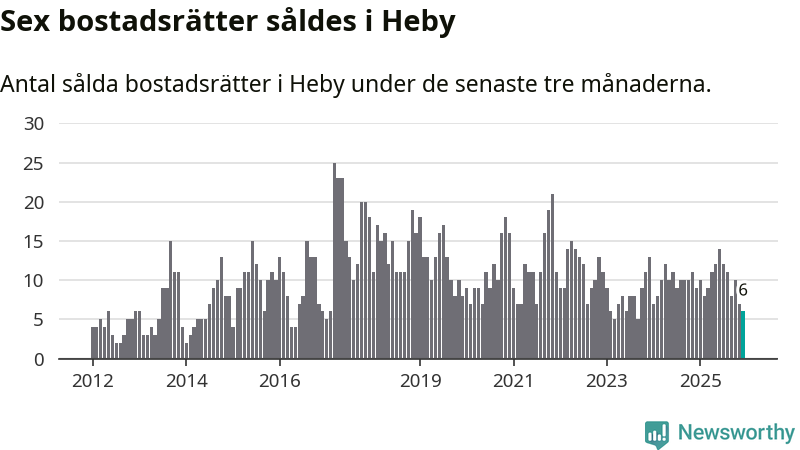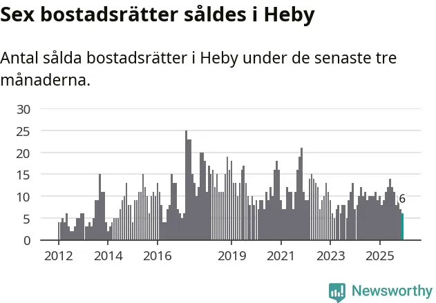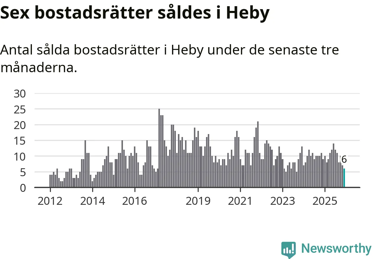 Mellan oktober och december gjordes sammanlagt sex affärer med bostadsrätter i Heby kommun. Det kan jämföras med nio vid motsvarande tid i fjol.
