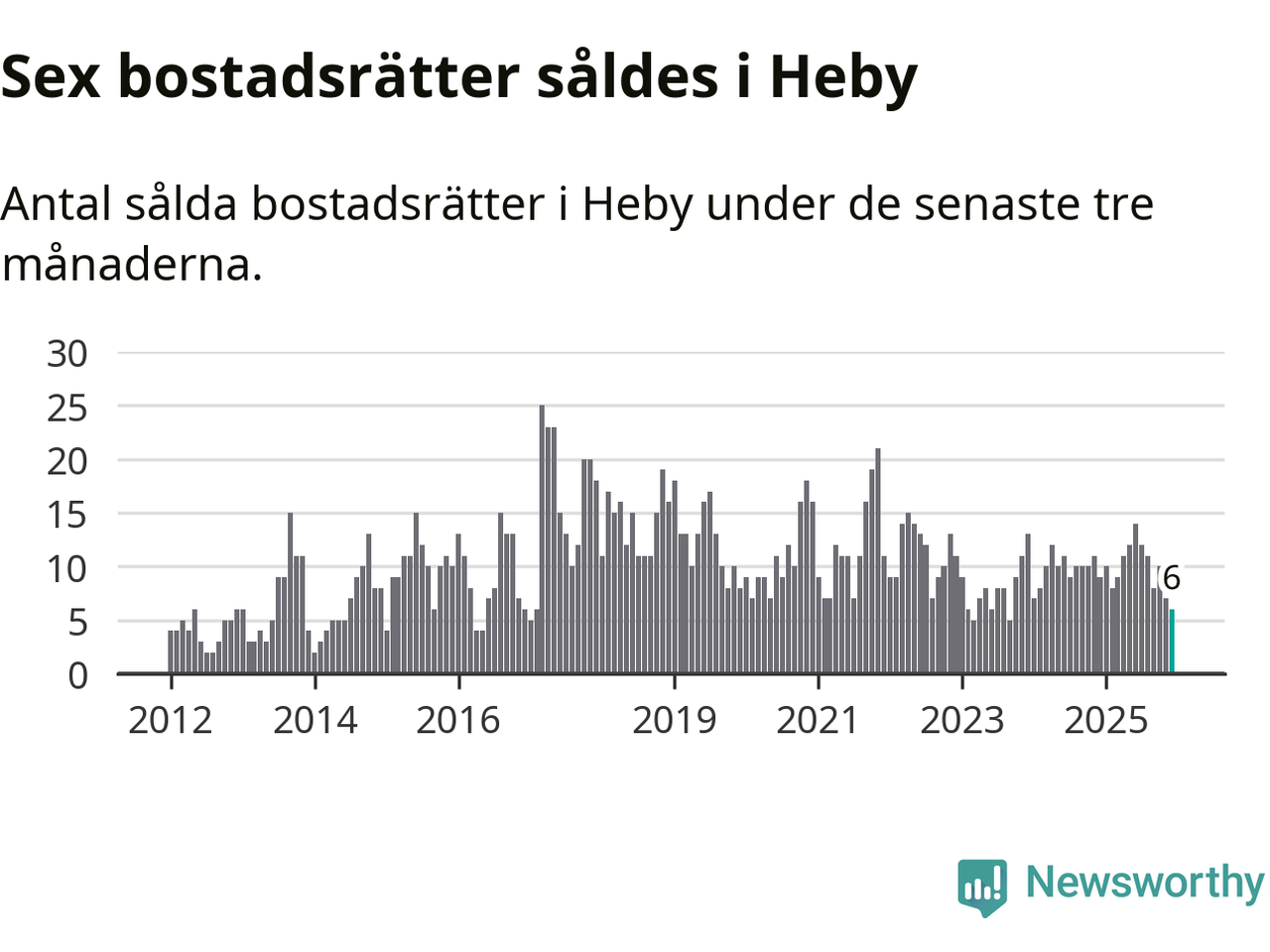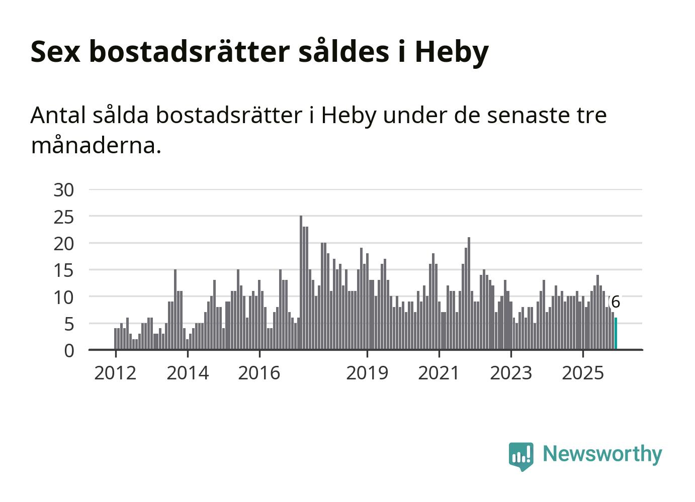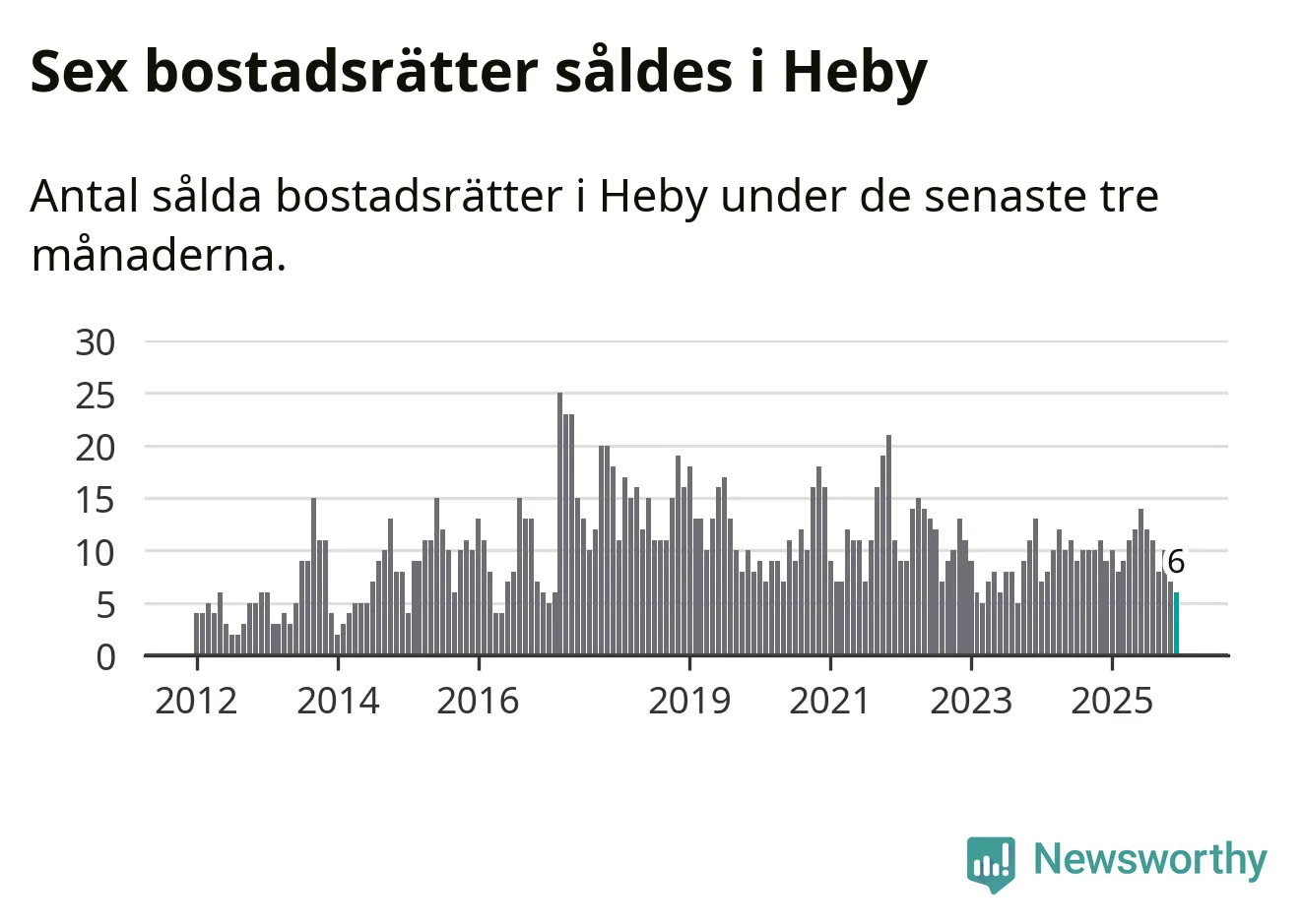 Mellan oktober och december gjordes sammanlagt sex affärer med bostadsrätter i Heby kommun. Det kan jämföras med nio vid motsvarande tid i fjol.