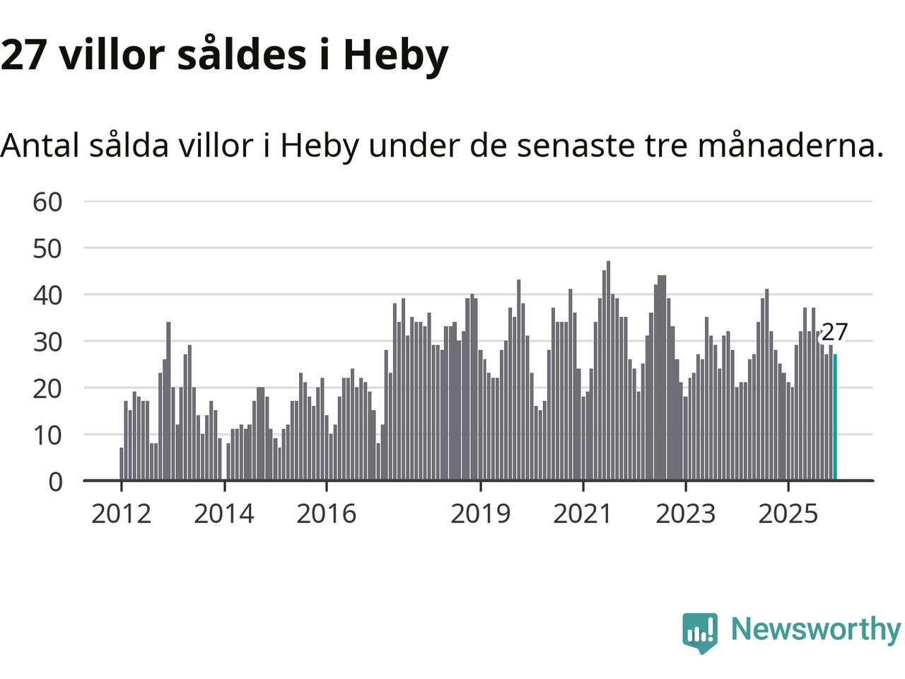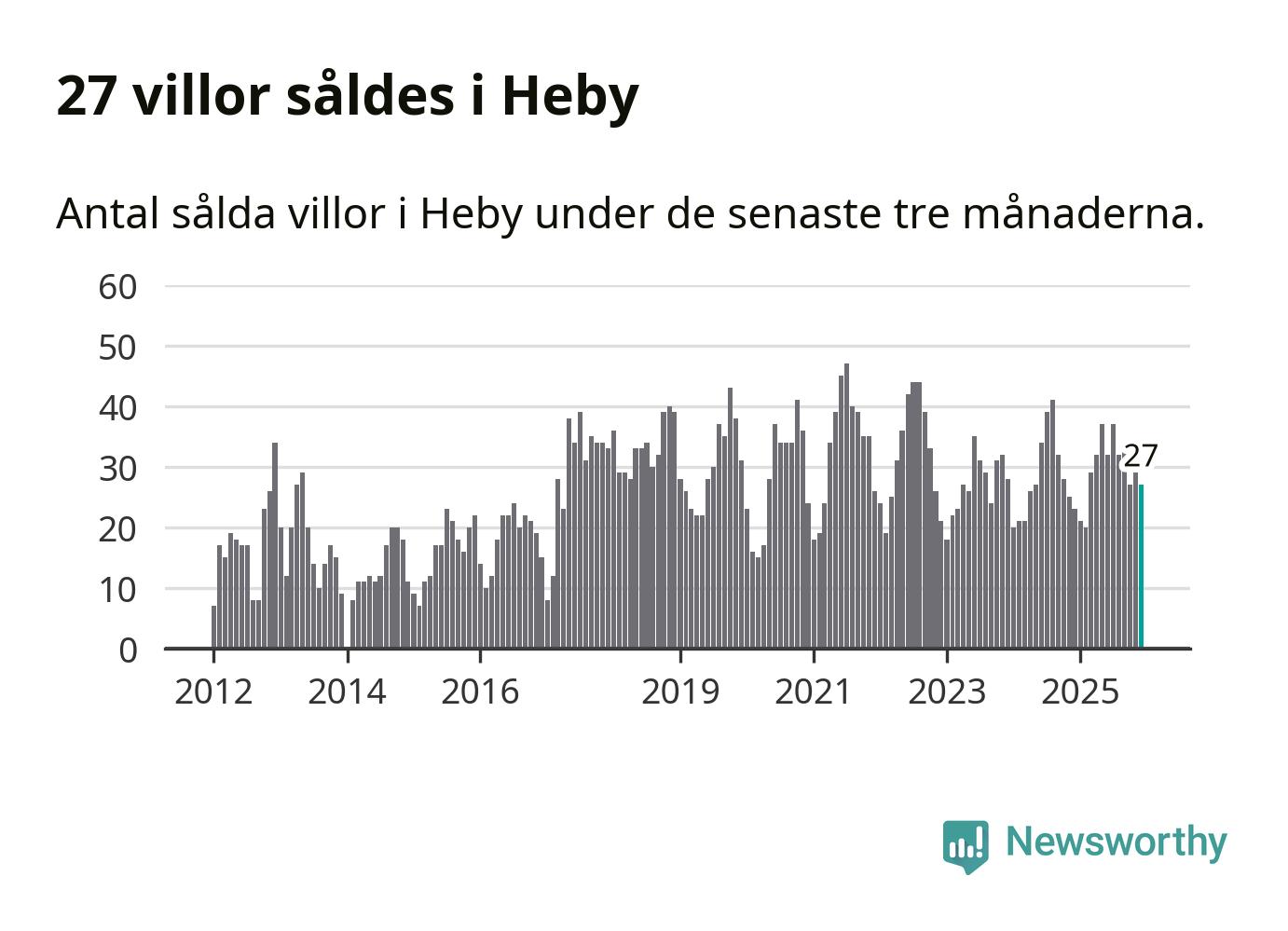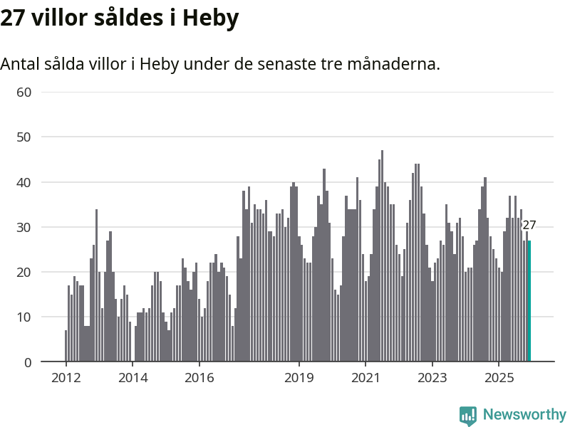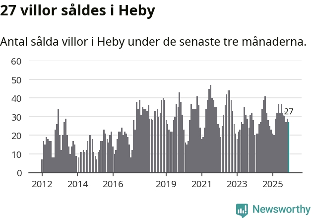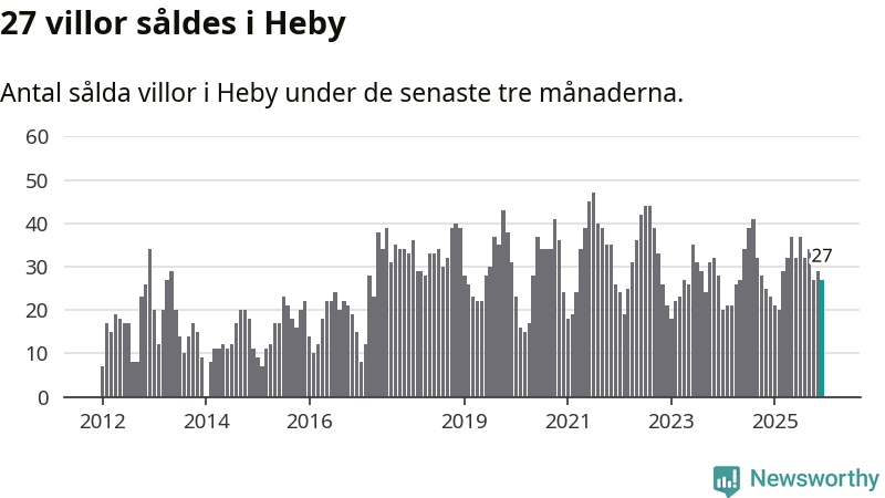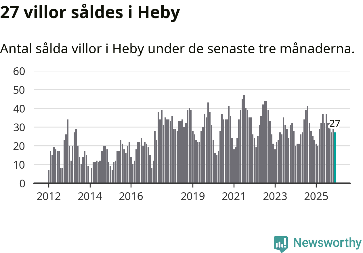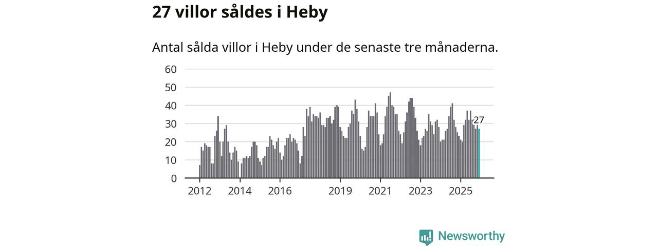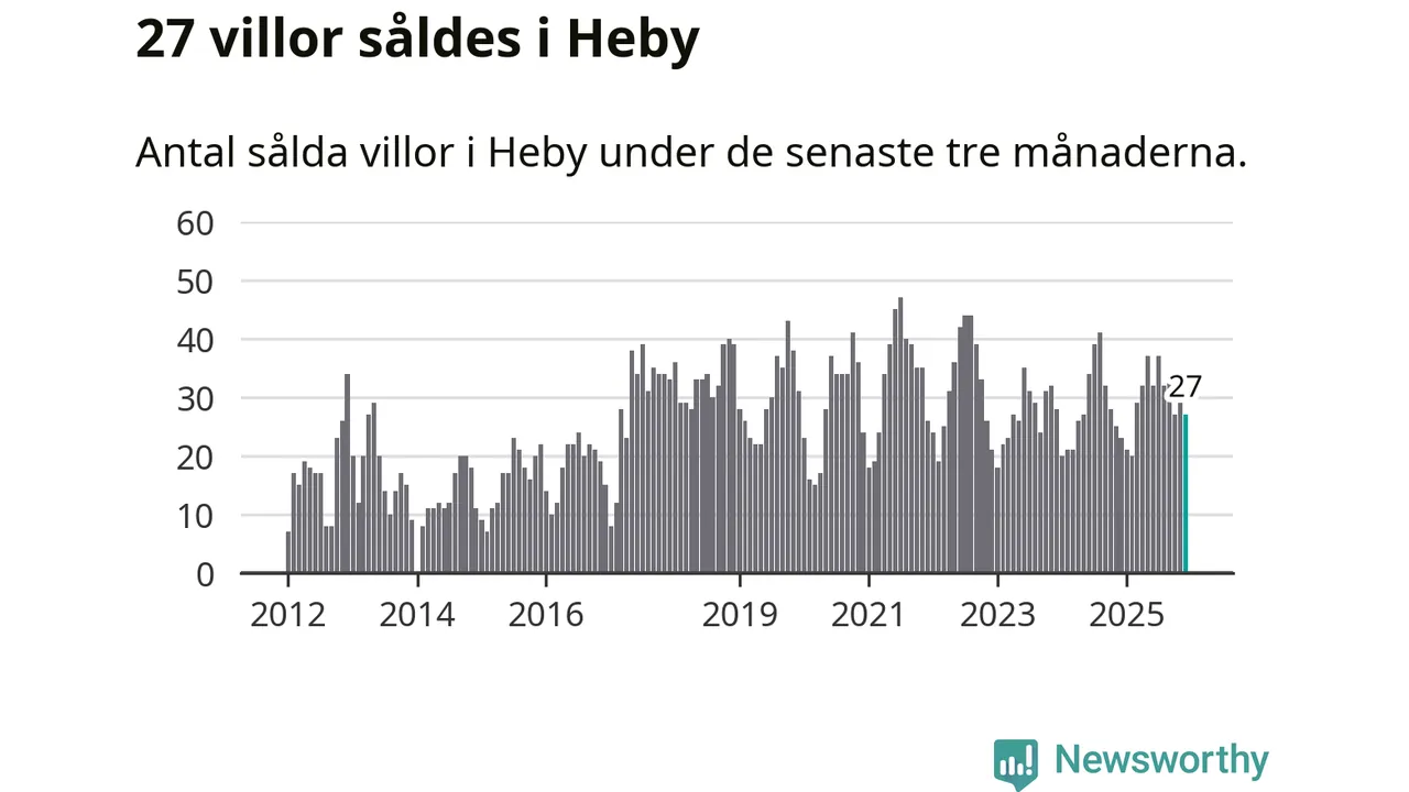 Mellan oktober och december gjordes sammanlagt 27 affärer med villor i Heby kommun. Det kan jämföras med 23 vid motsvarande tid i fjol.