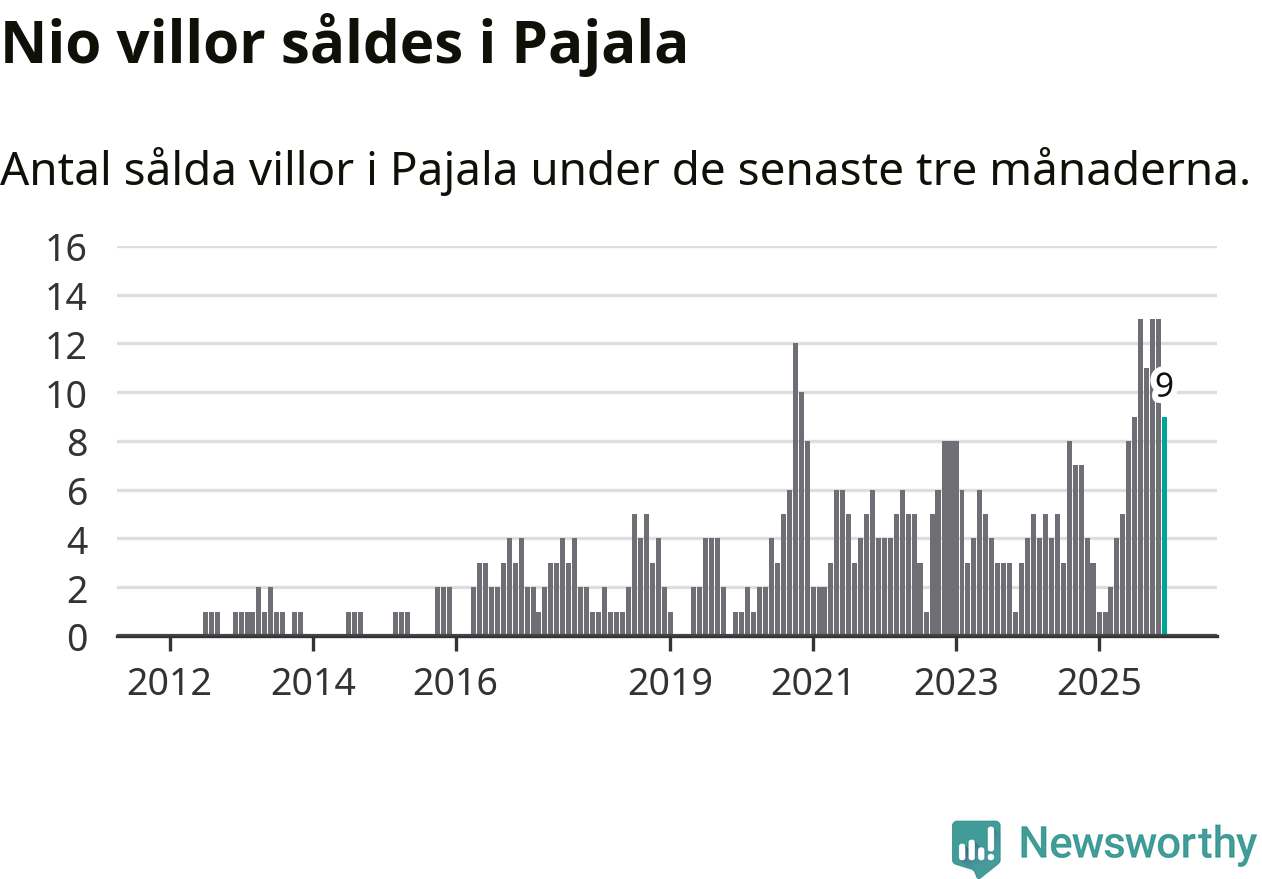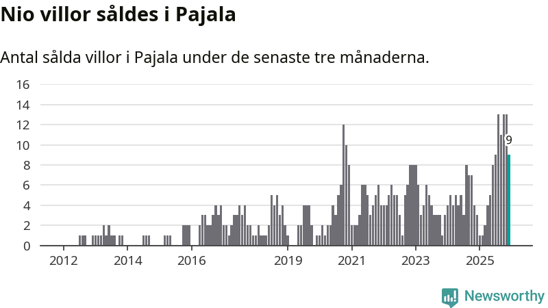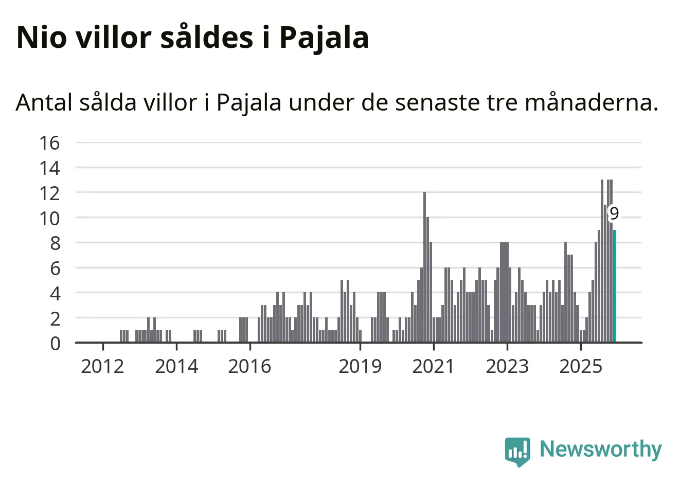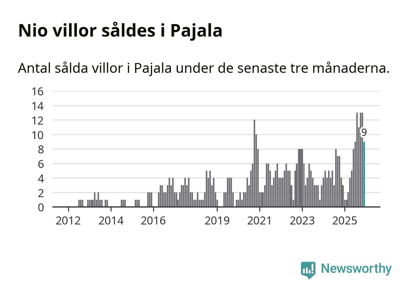 Mellan oktober och december gjordes sammanlagt nio affärer med villor i Pajala kommun. Det kan jämföras med tre vid motsvarande tid i fjol.