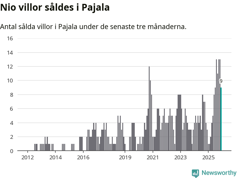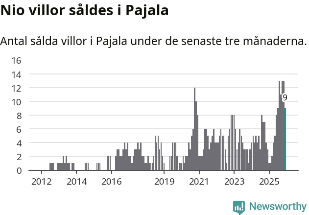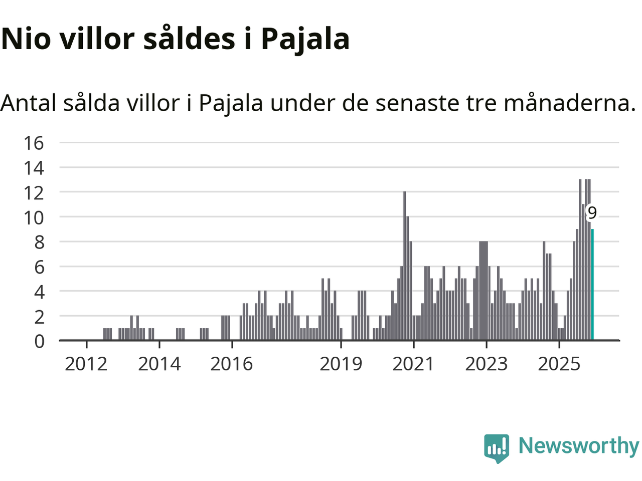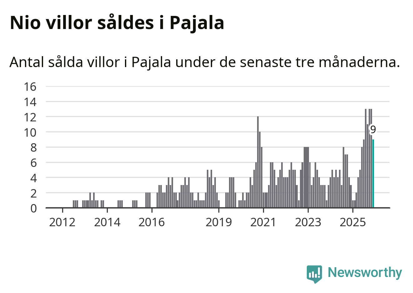 Mellan oktober och december gjordes sammanlagt nio affärer med villor i Pajala kommun. Det kan jämföras med tre vid motsvarande tid i fjol.